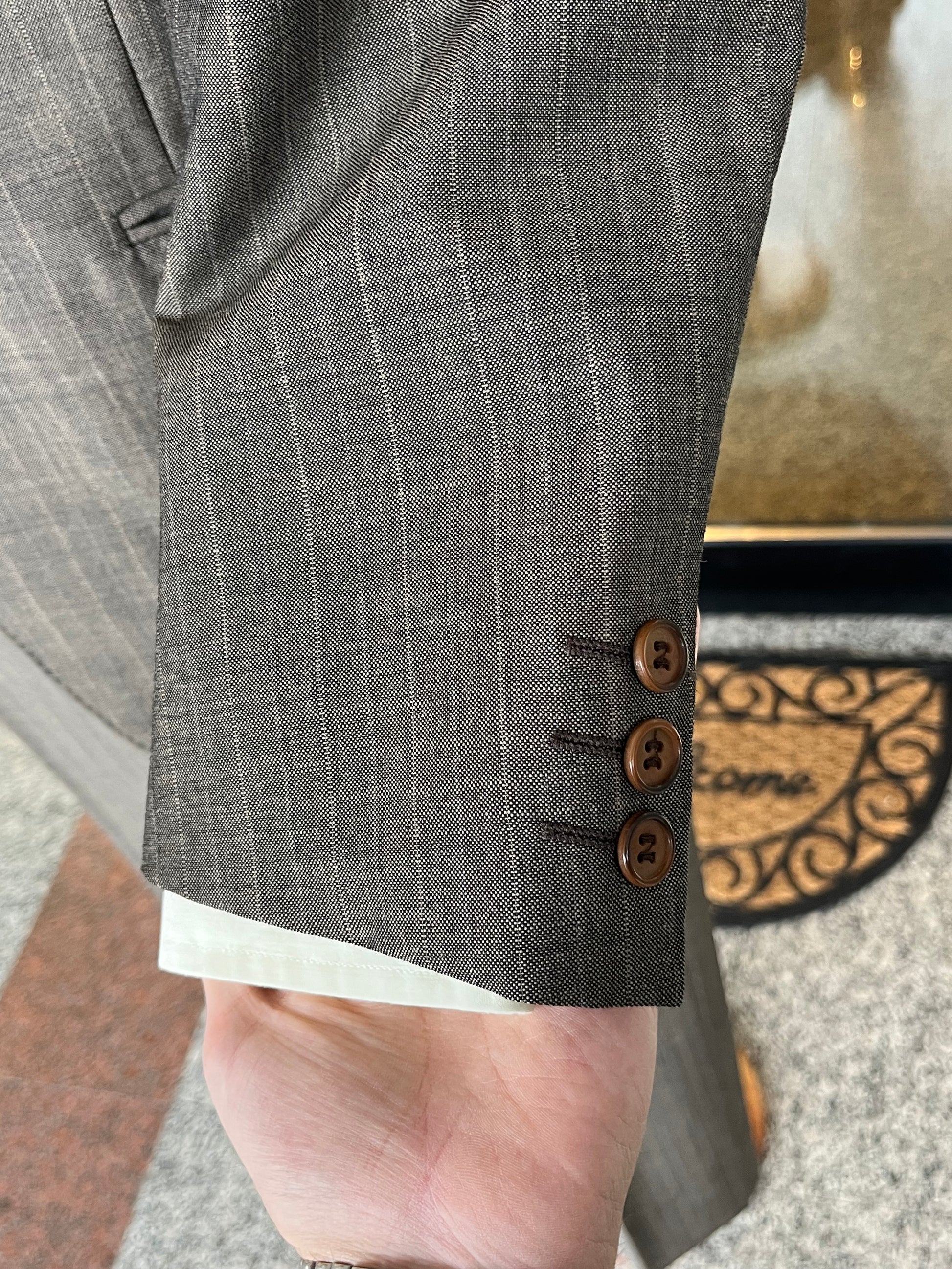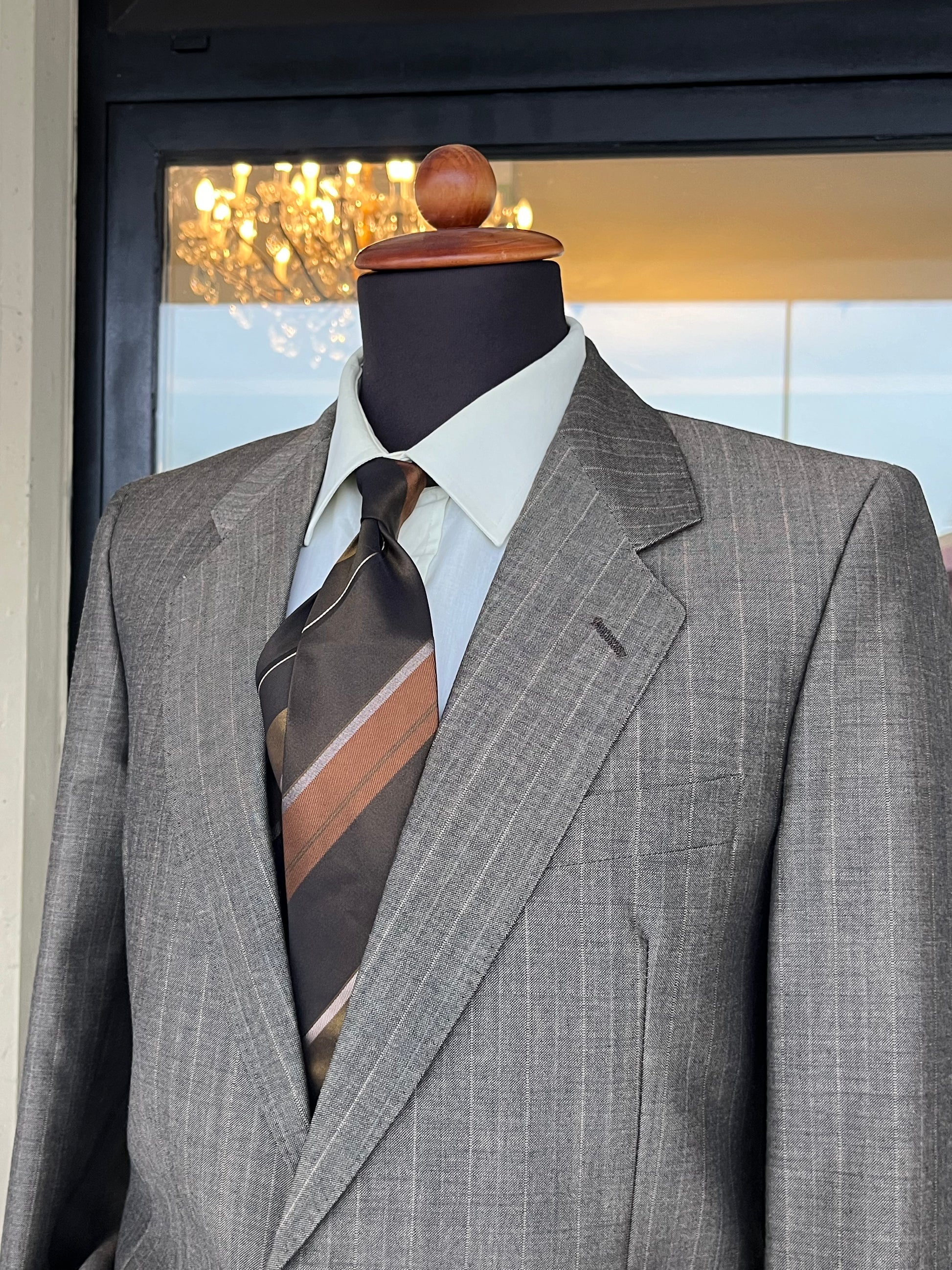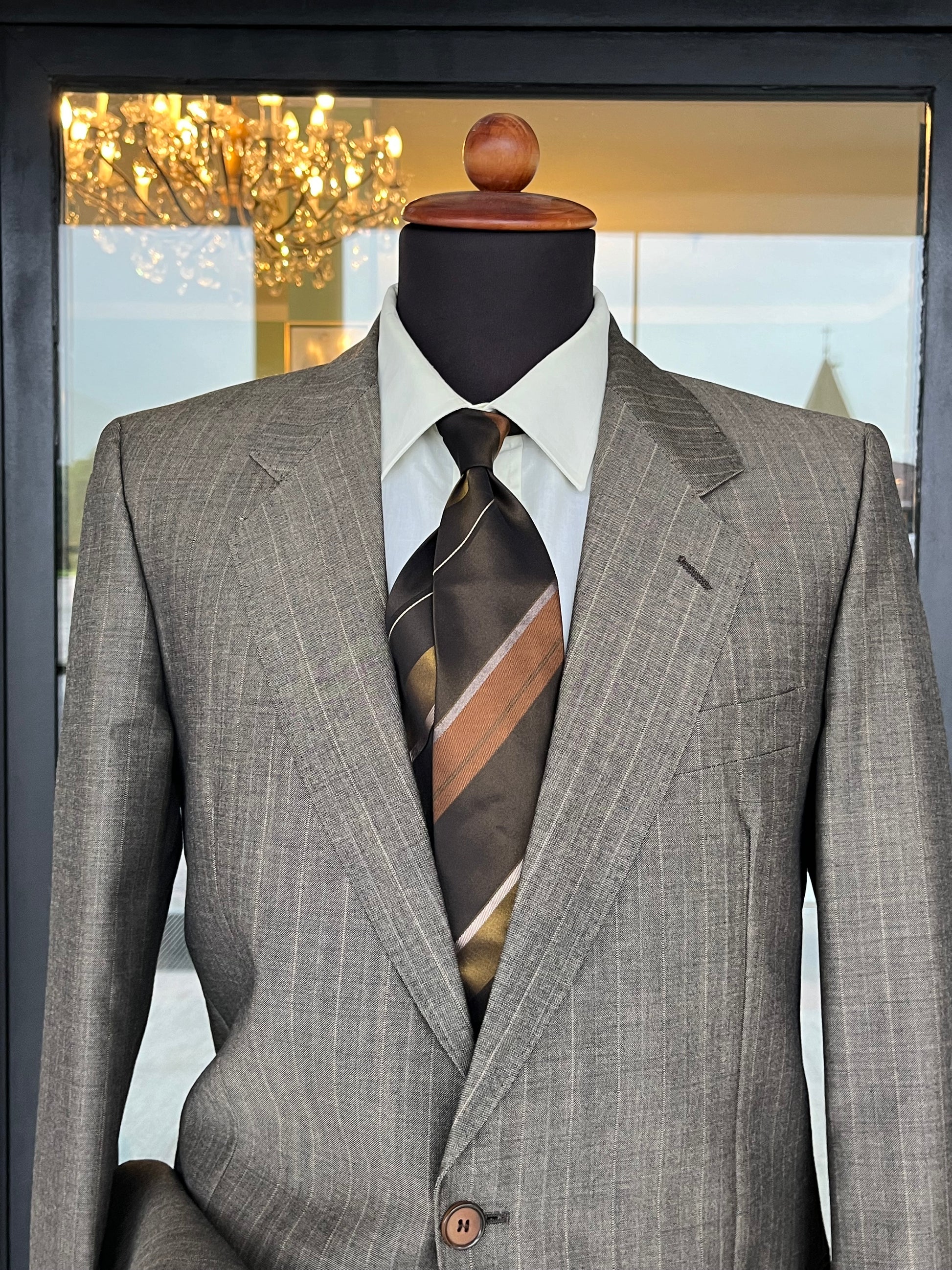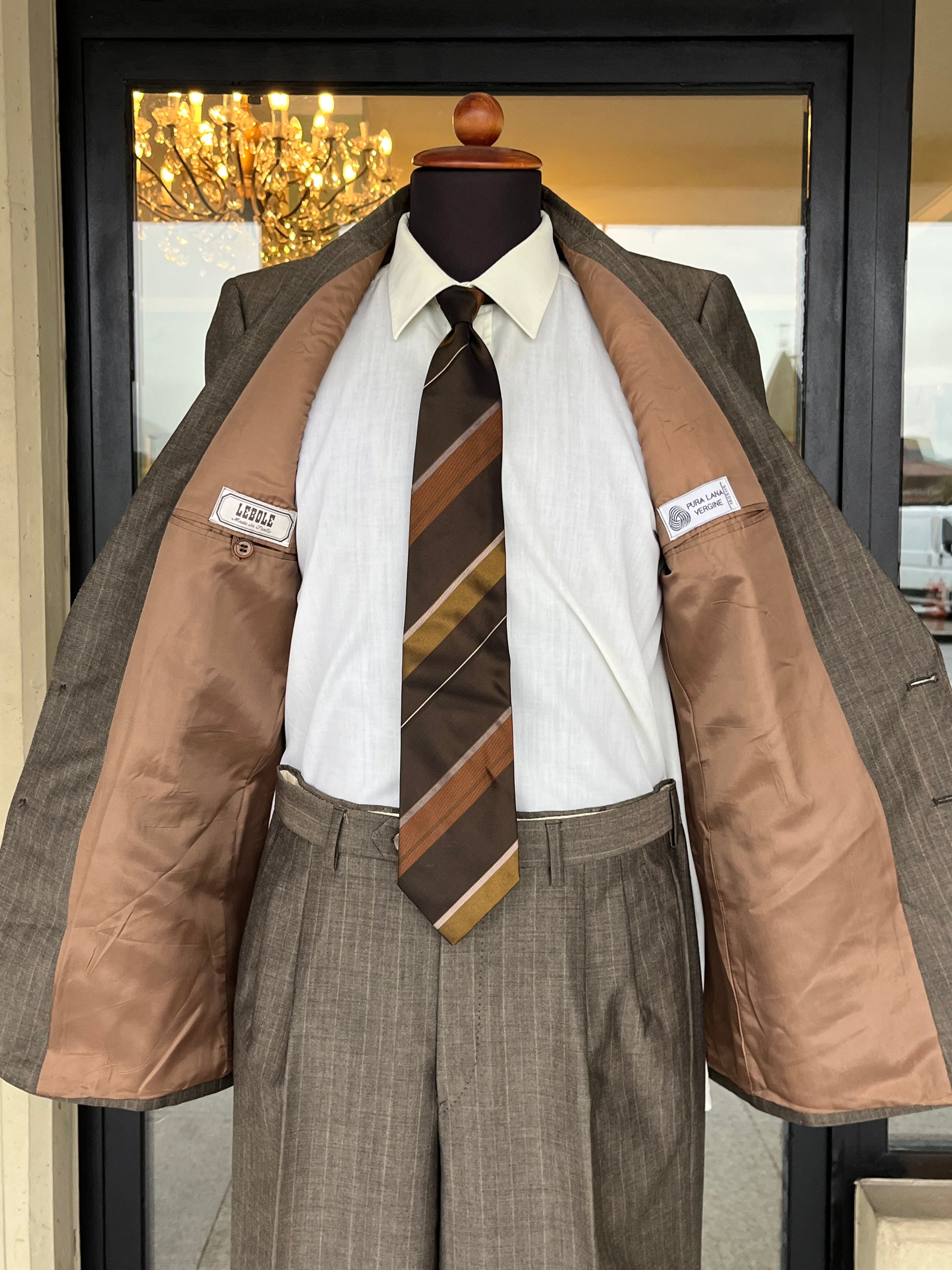 Completo primo anni ‘80 in 100% pura lana, color tortora gessato.