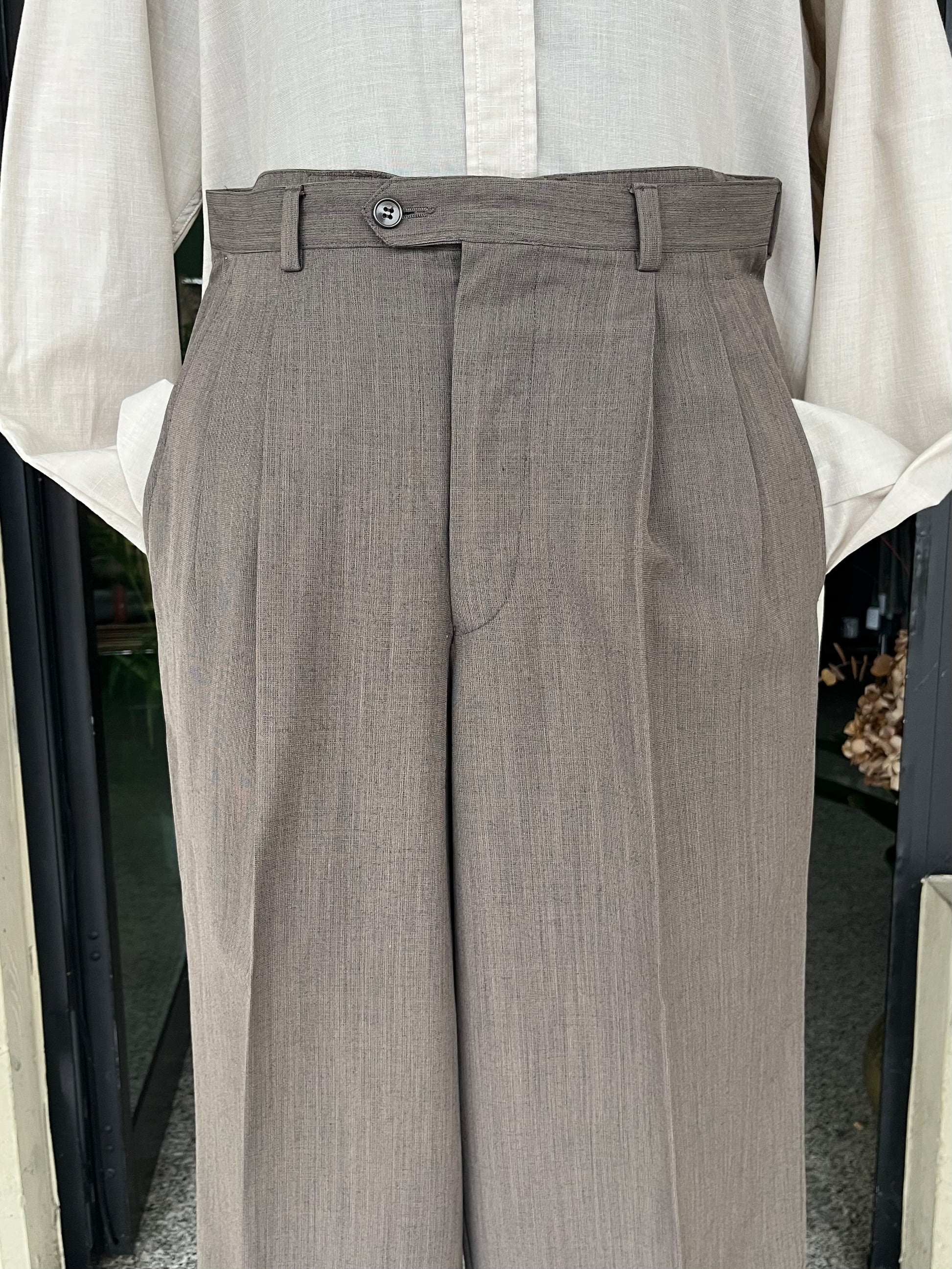 I calzoni hanno un taglio classico, a vita alta, doppia piega in vita e gamba dritta.