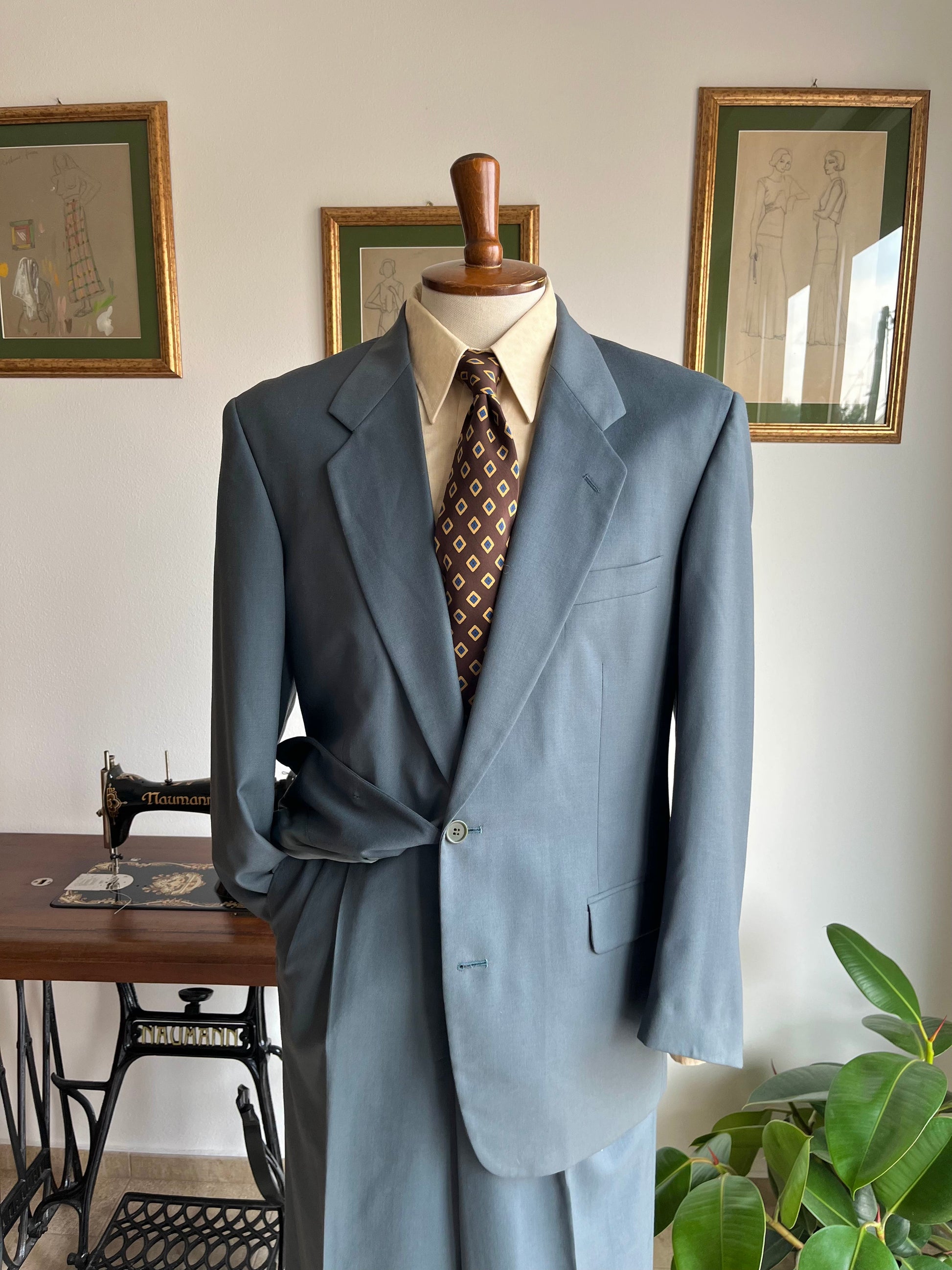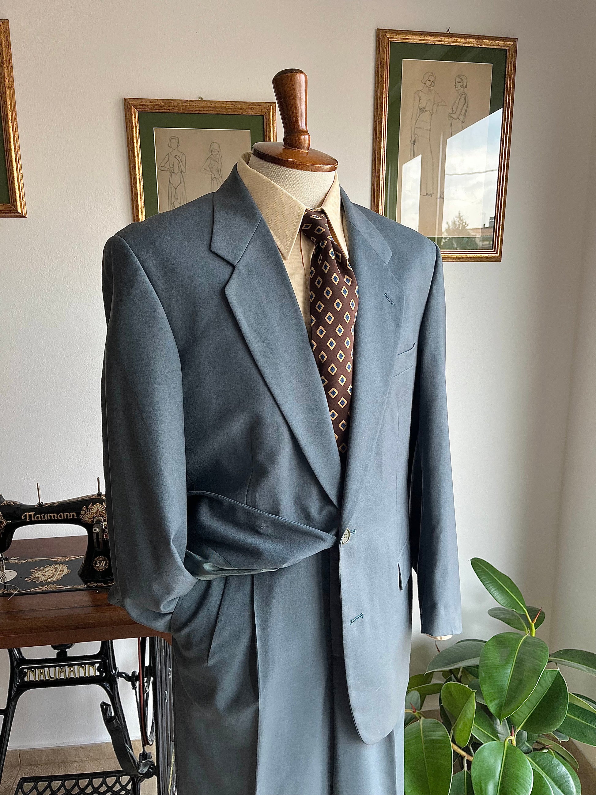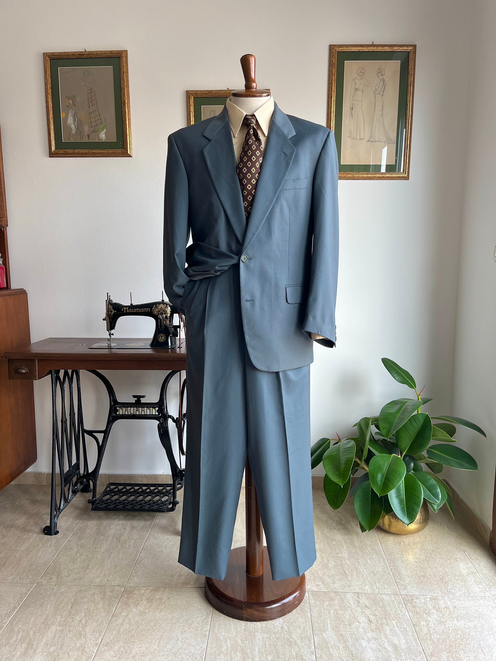 Completo anni ‘80 in pura lana super 100's, color verde acqua.