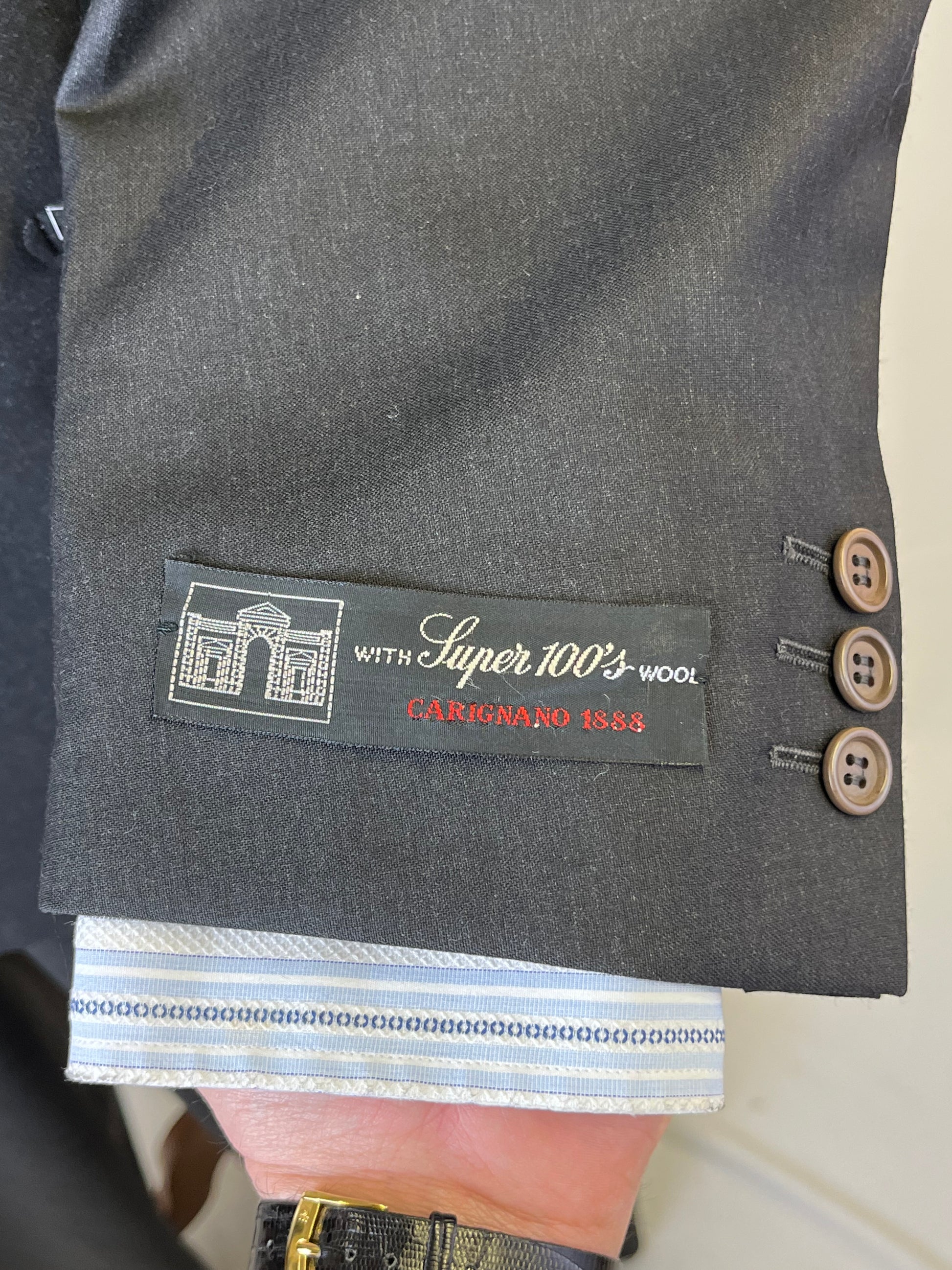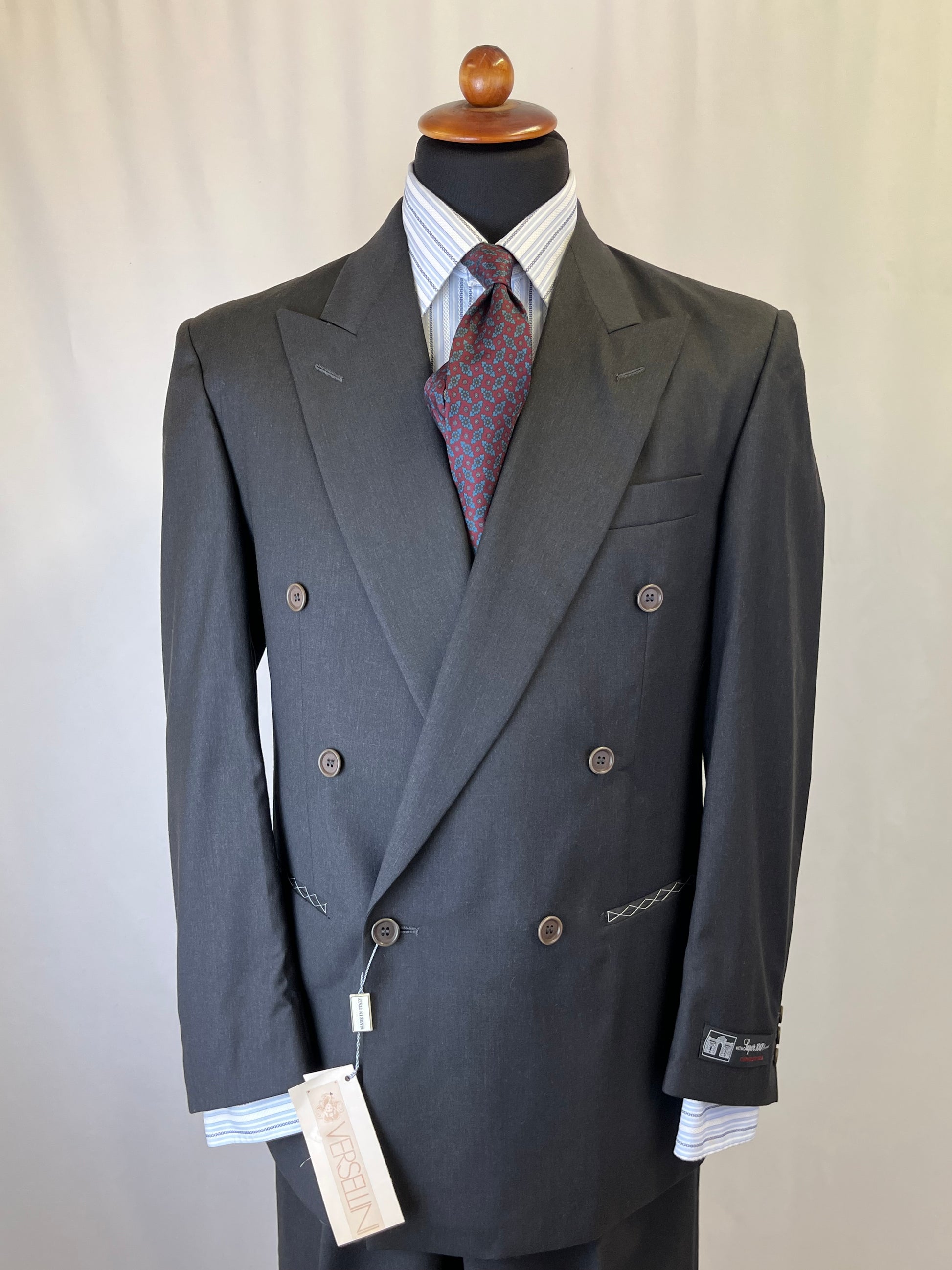 Completo anni ‘90, in pura lana vergine Super 100’s, color grigio medio.