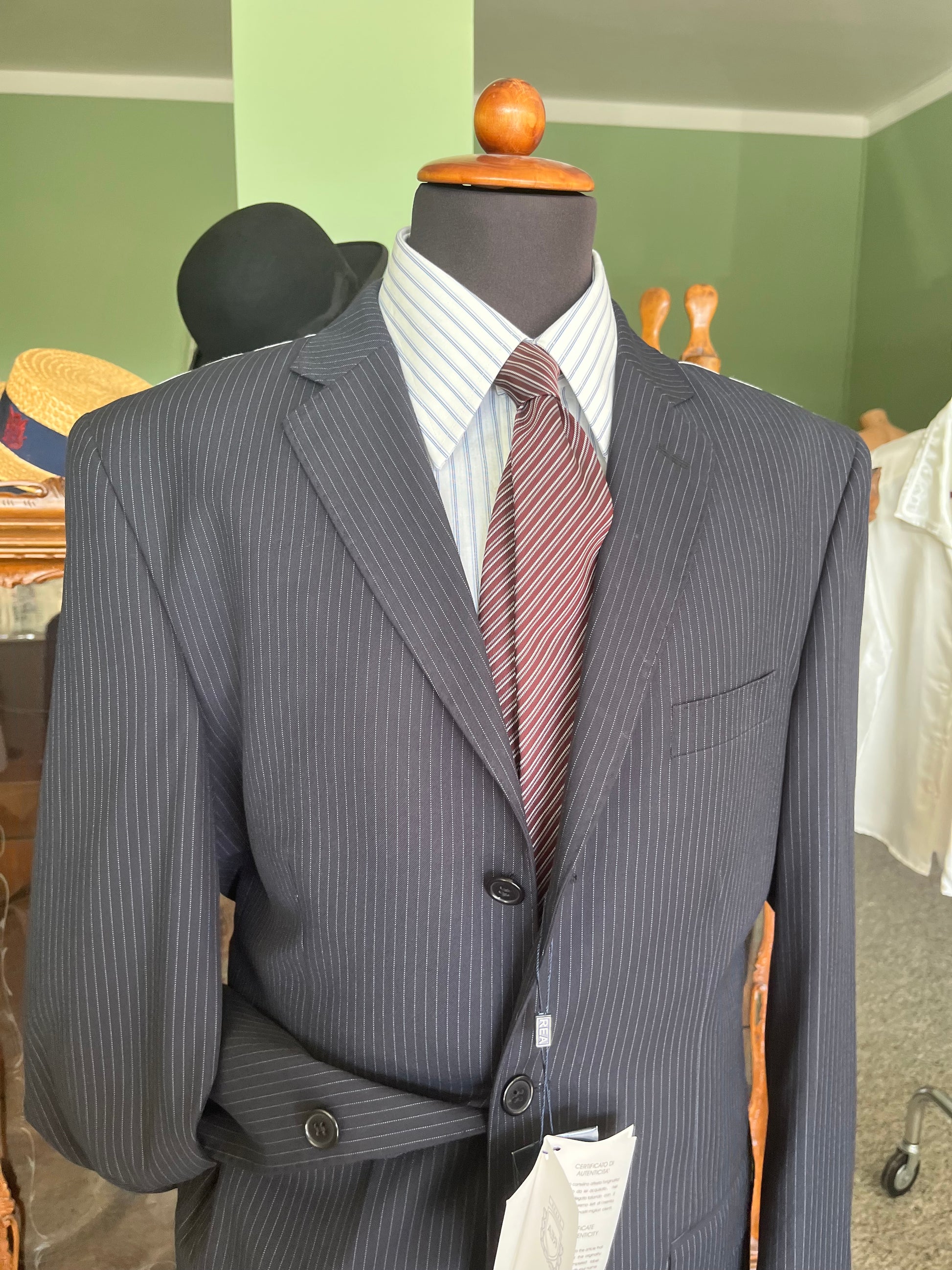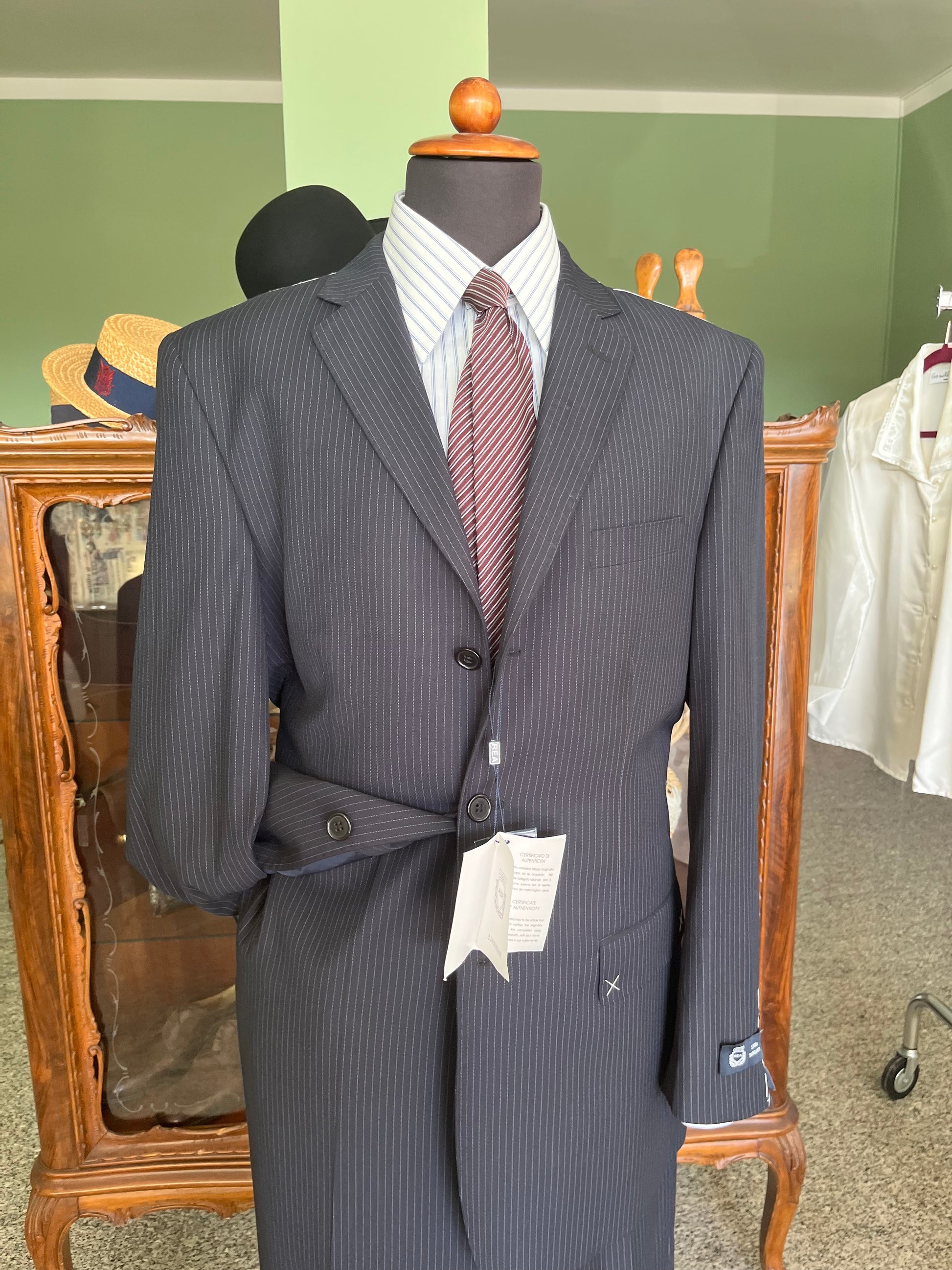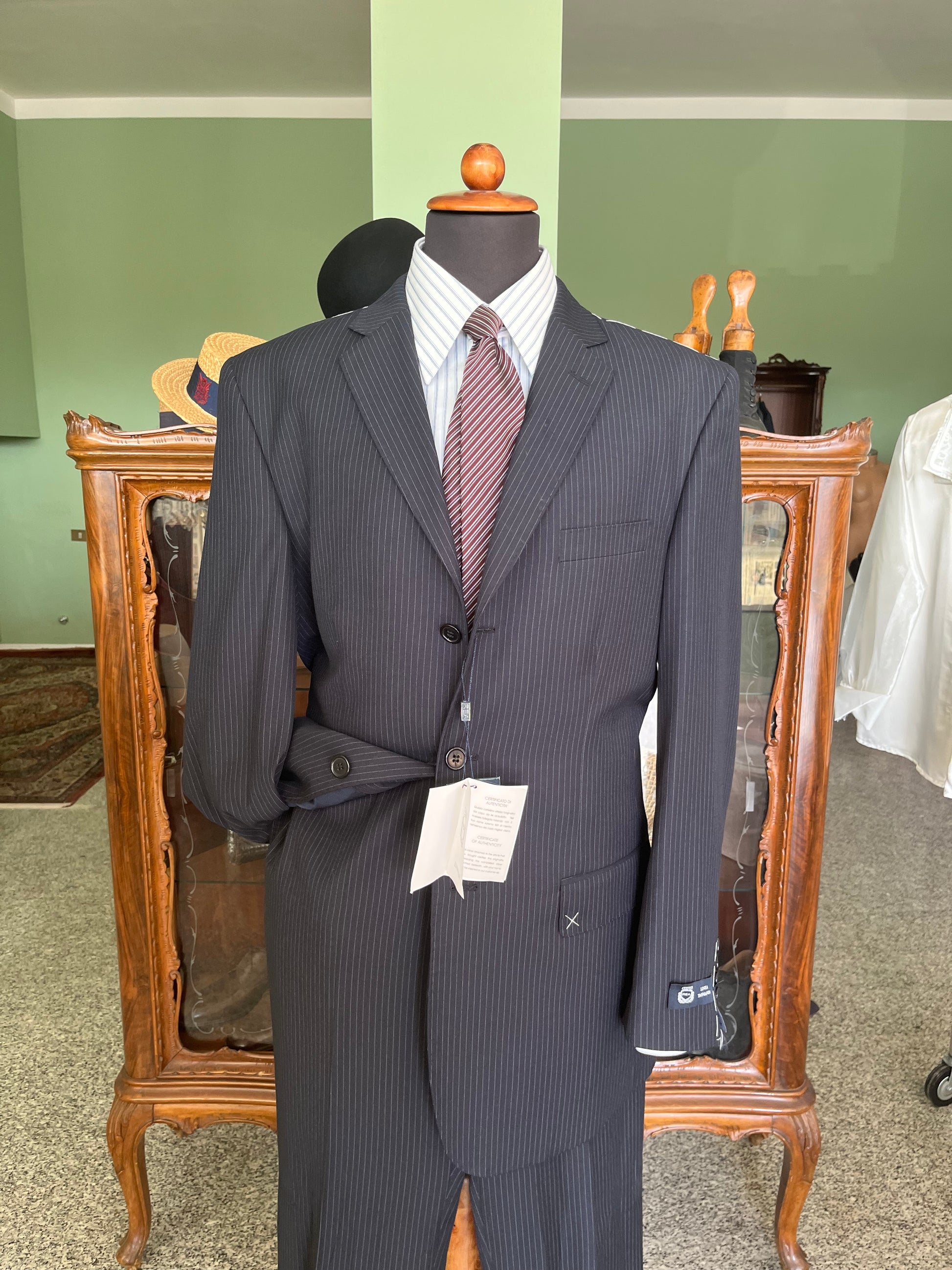 Completo in 100% puro fresco di lana, color blu notte gessato.