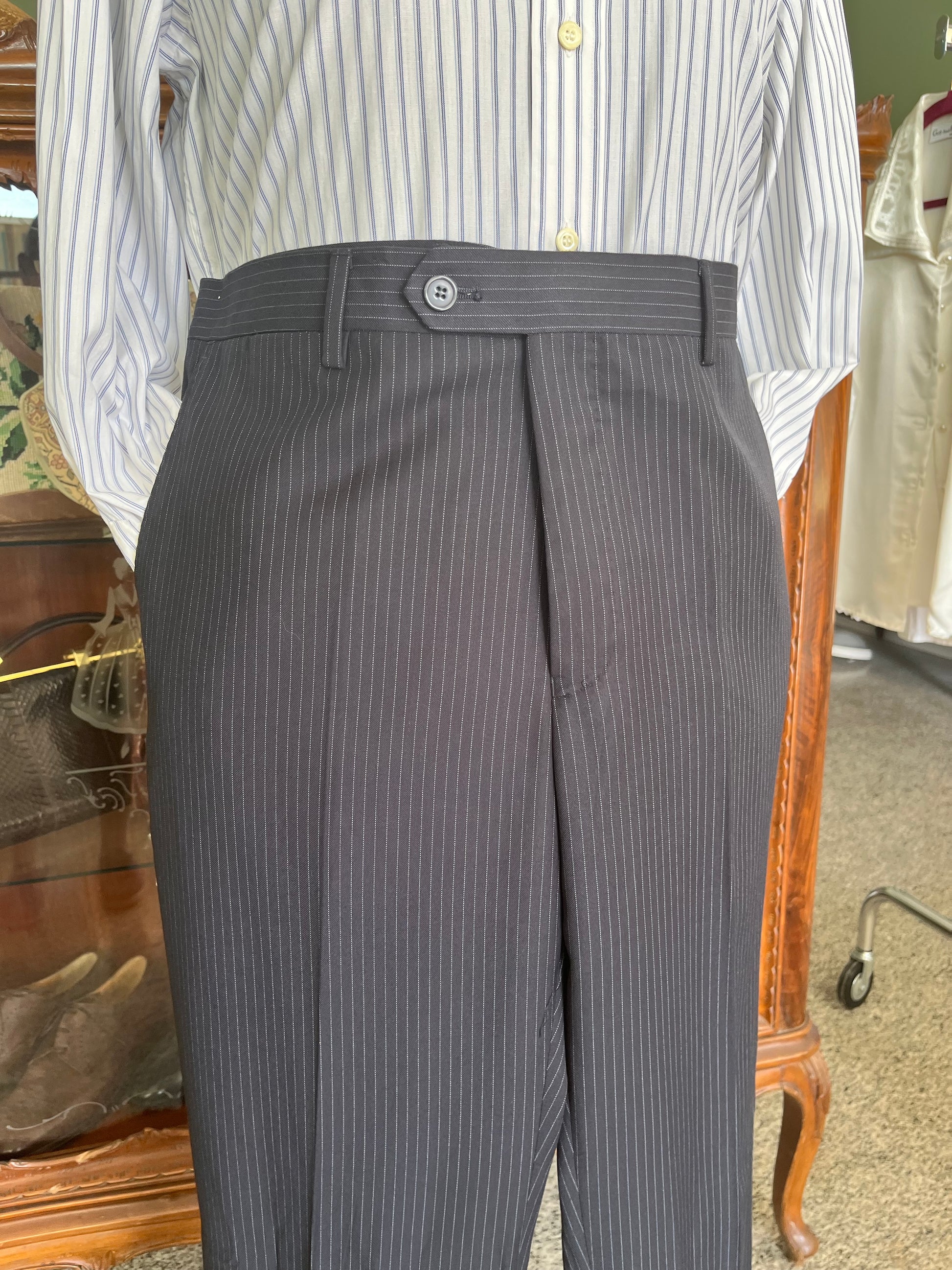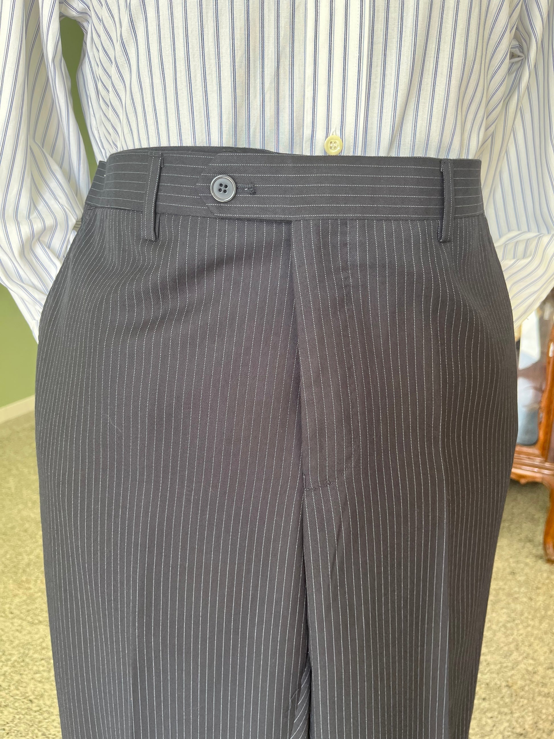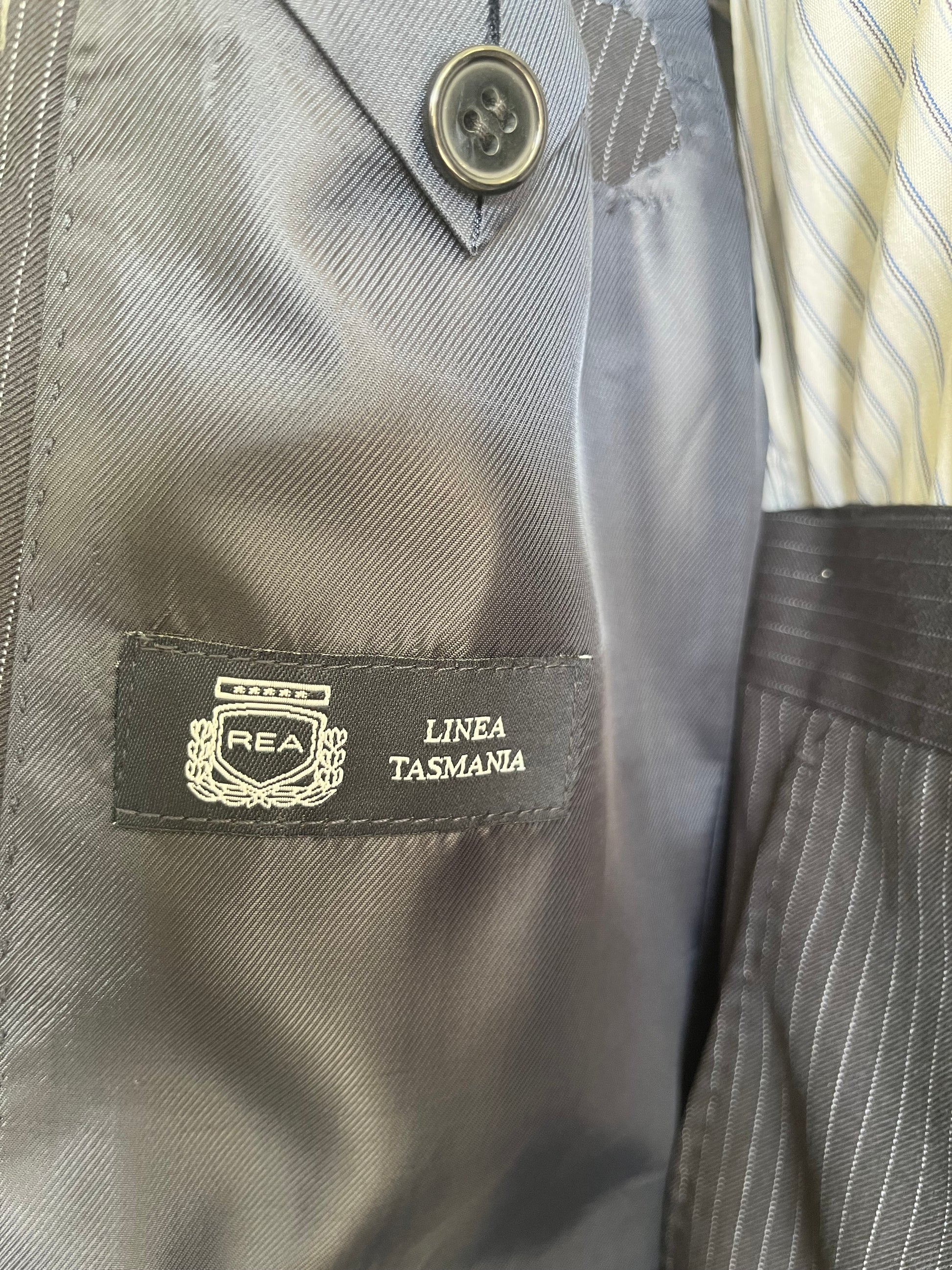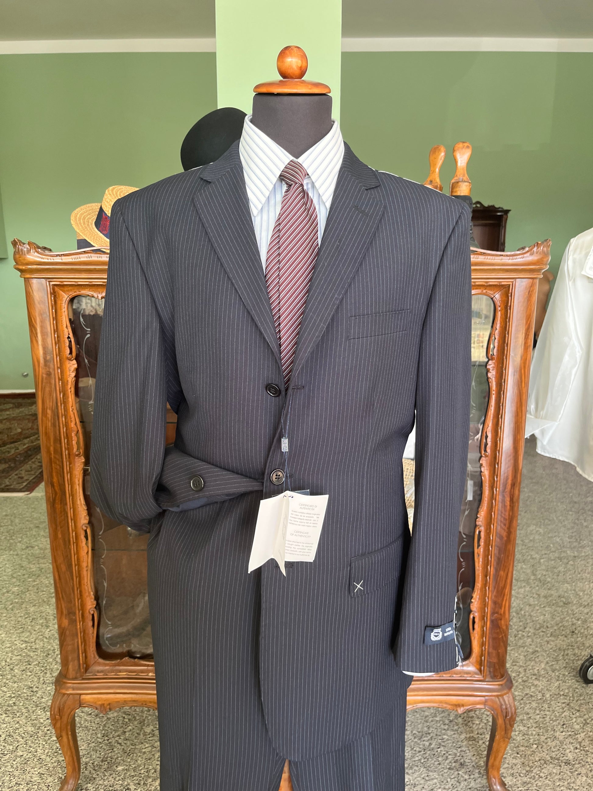 Completo in 100% puro fresco di lana, color blu notte gessato.