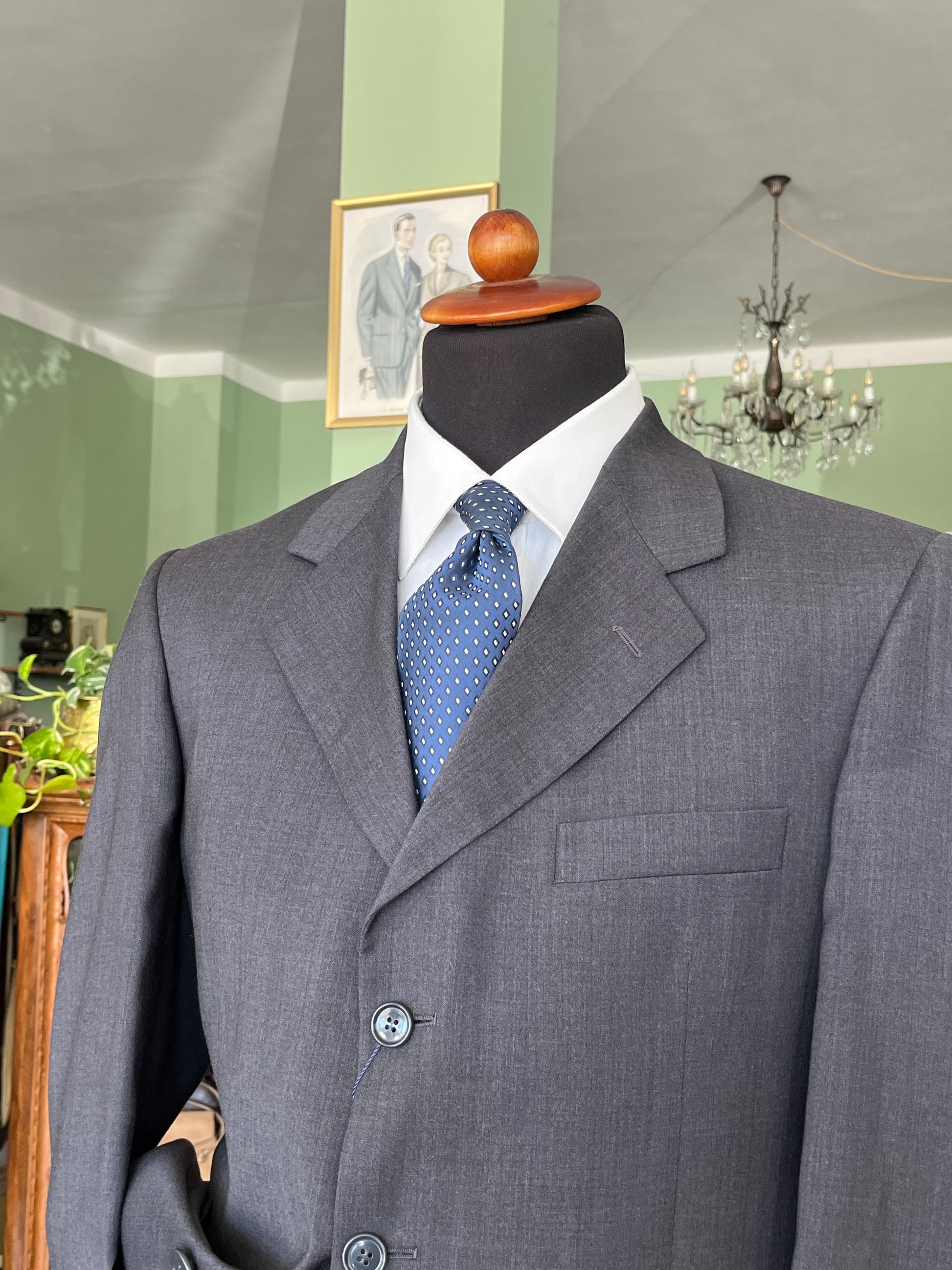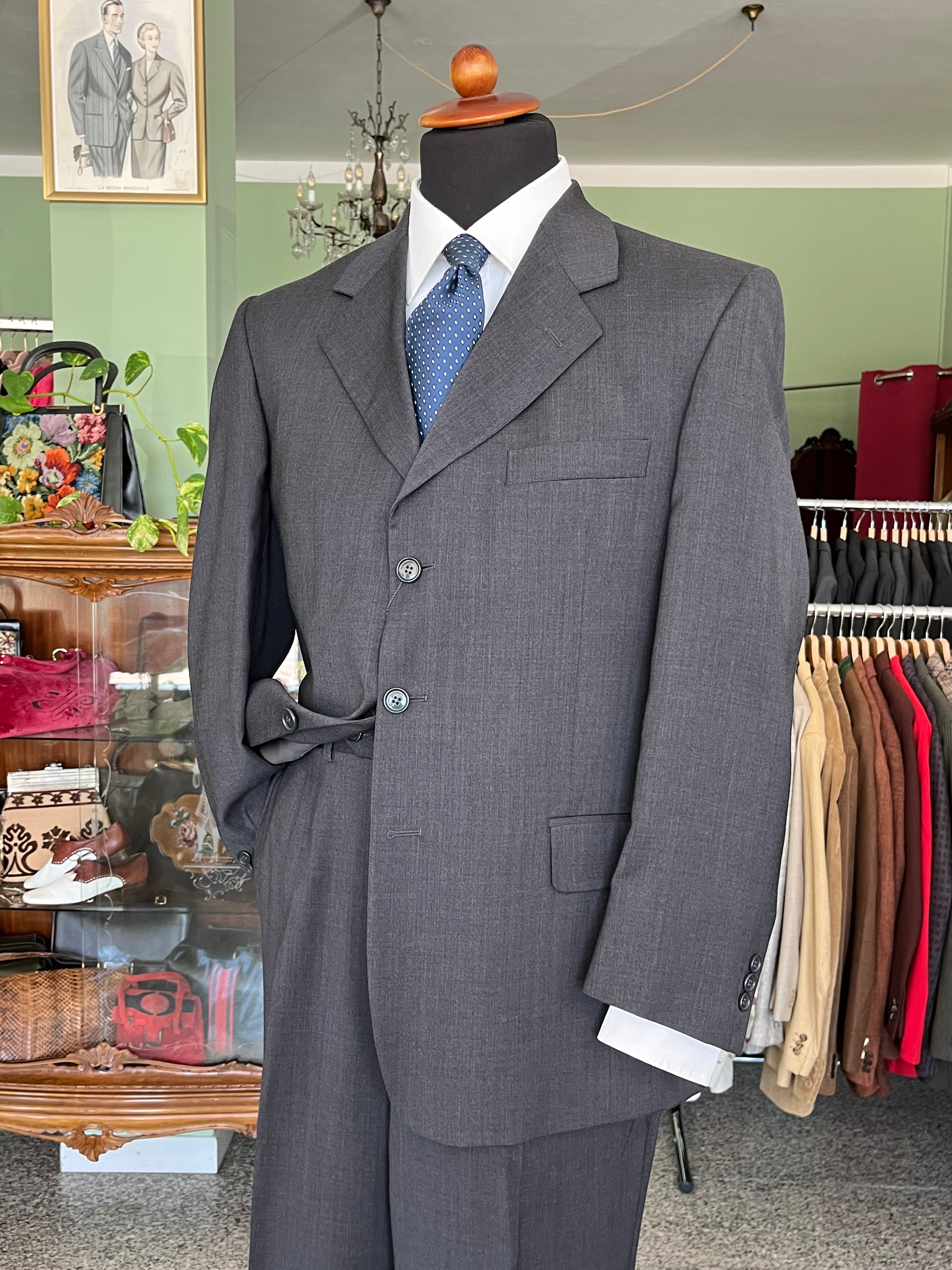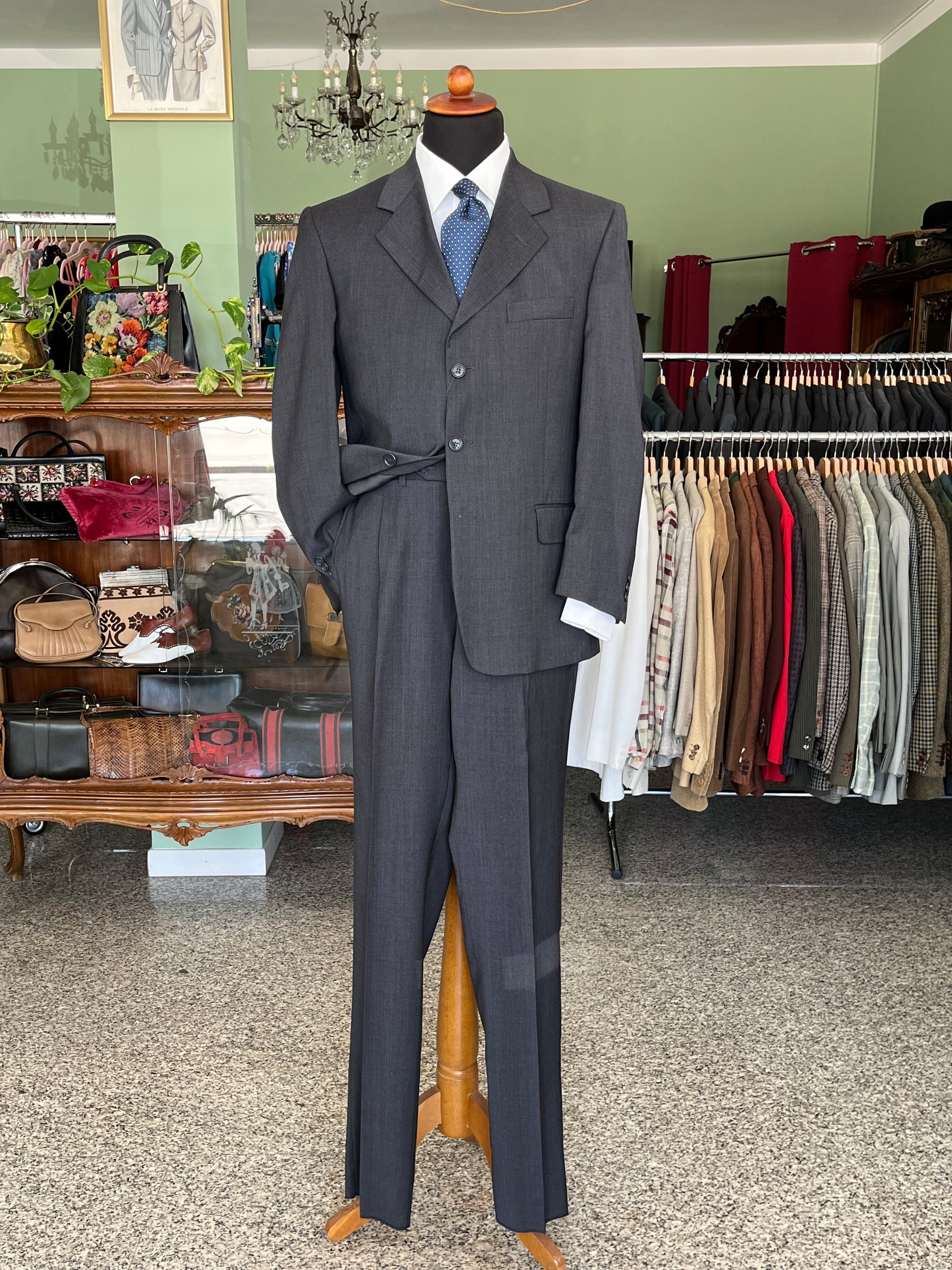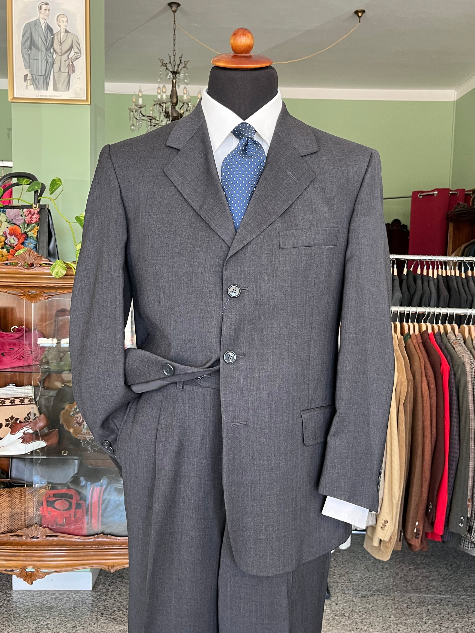 Completo anni ‘90, in 100% pura lana vergine, color grigio antracite.