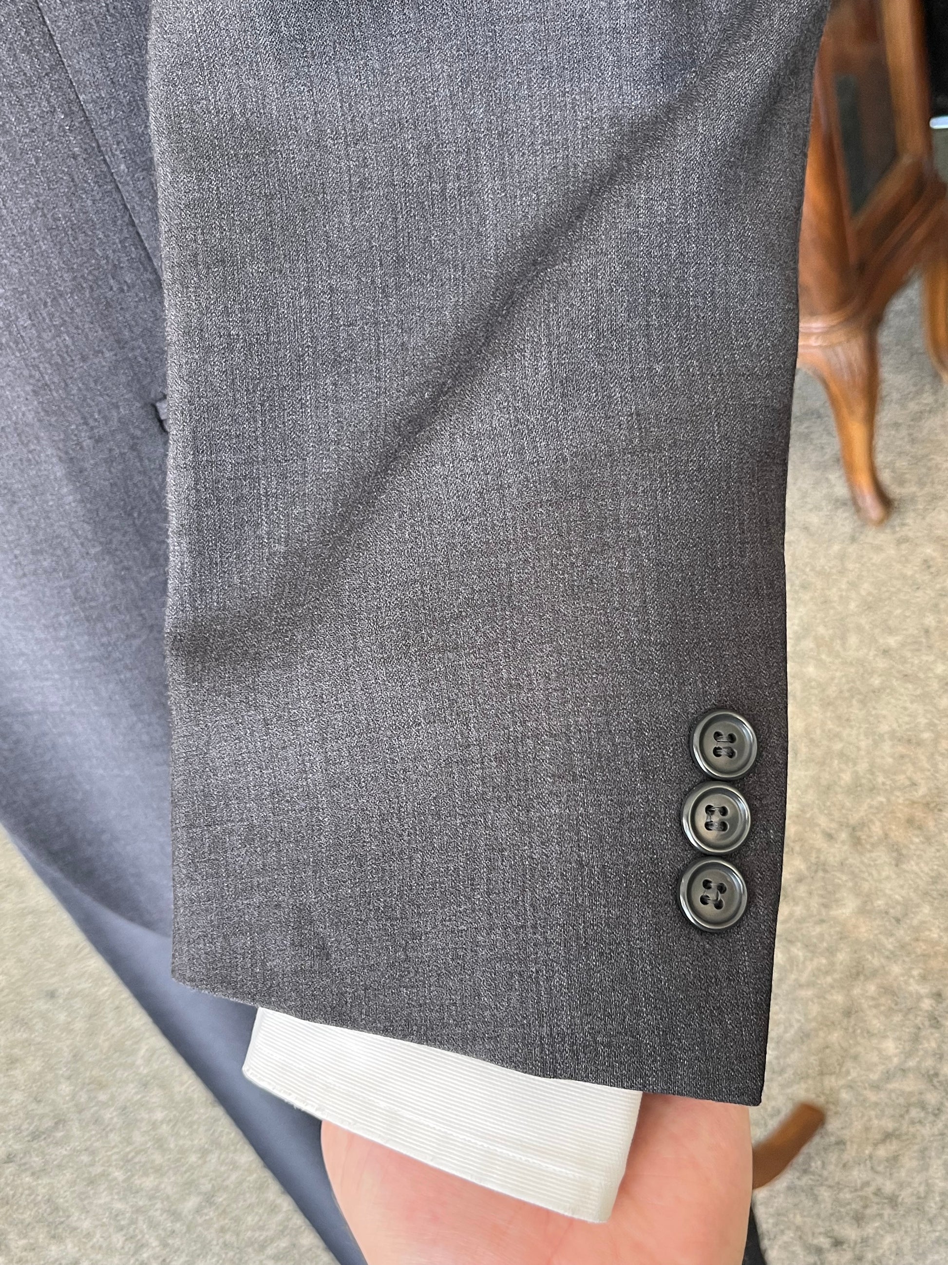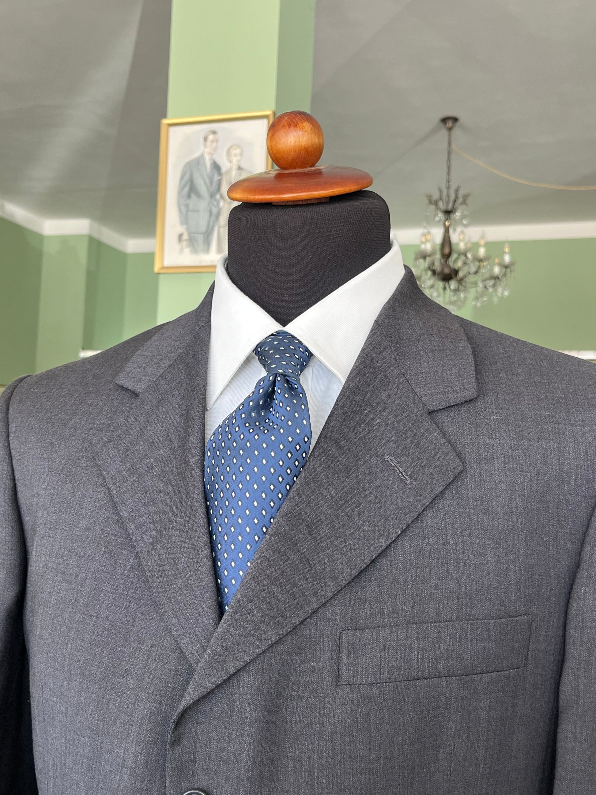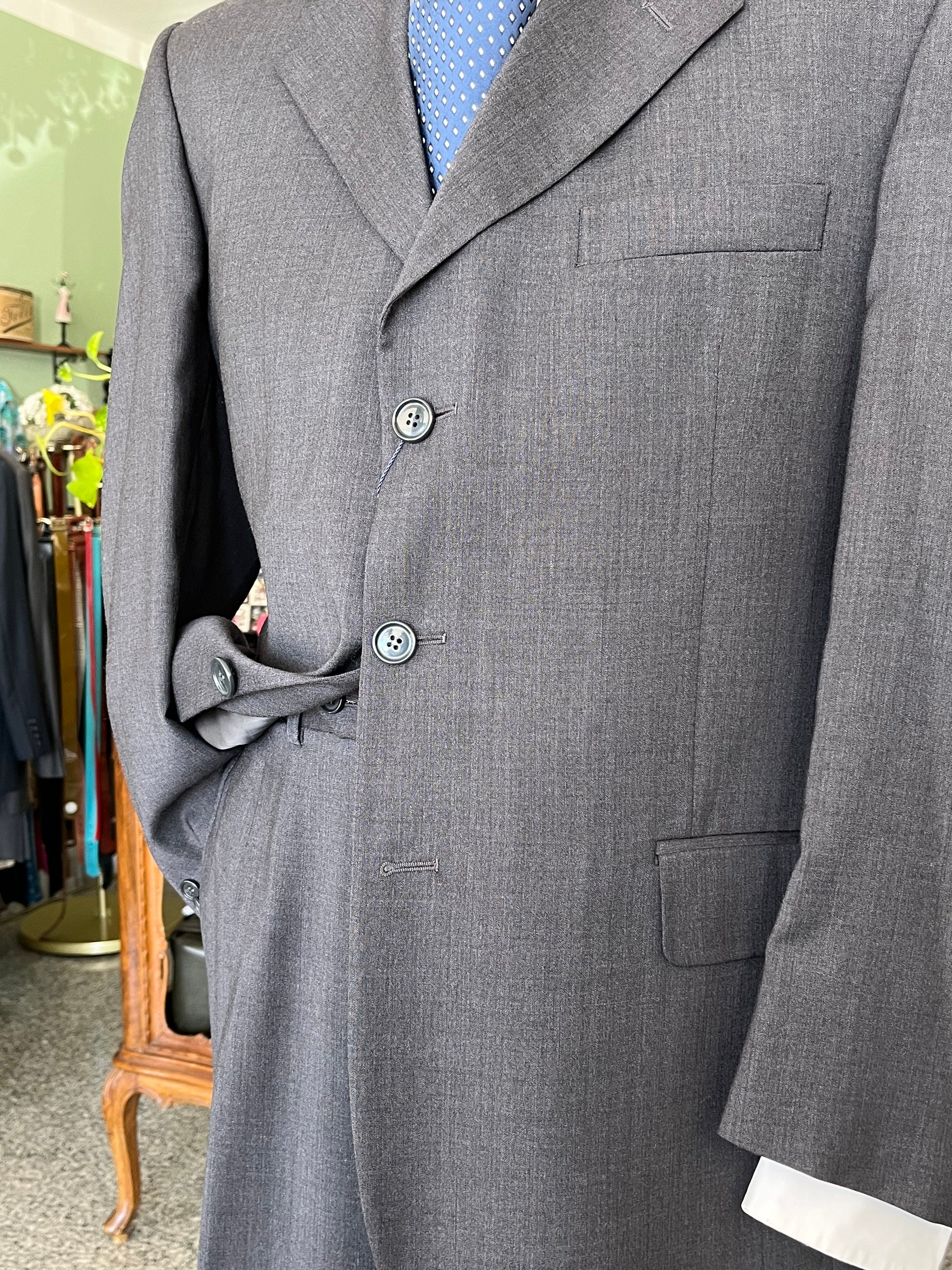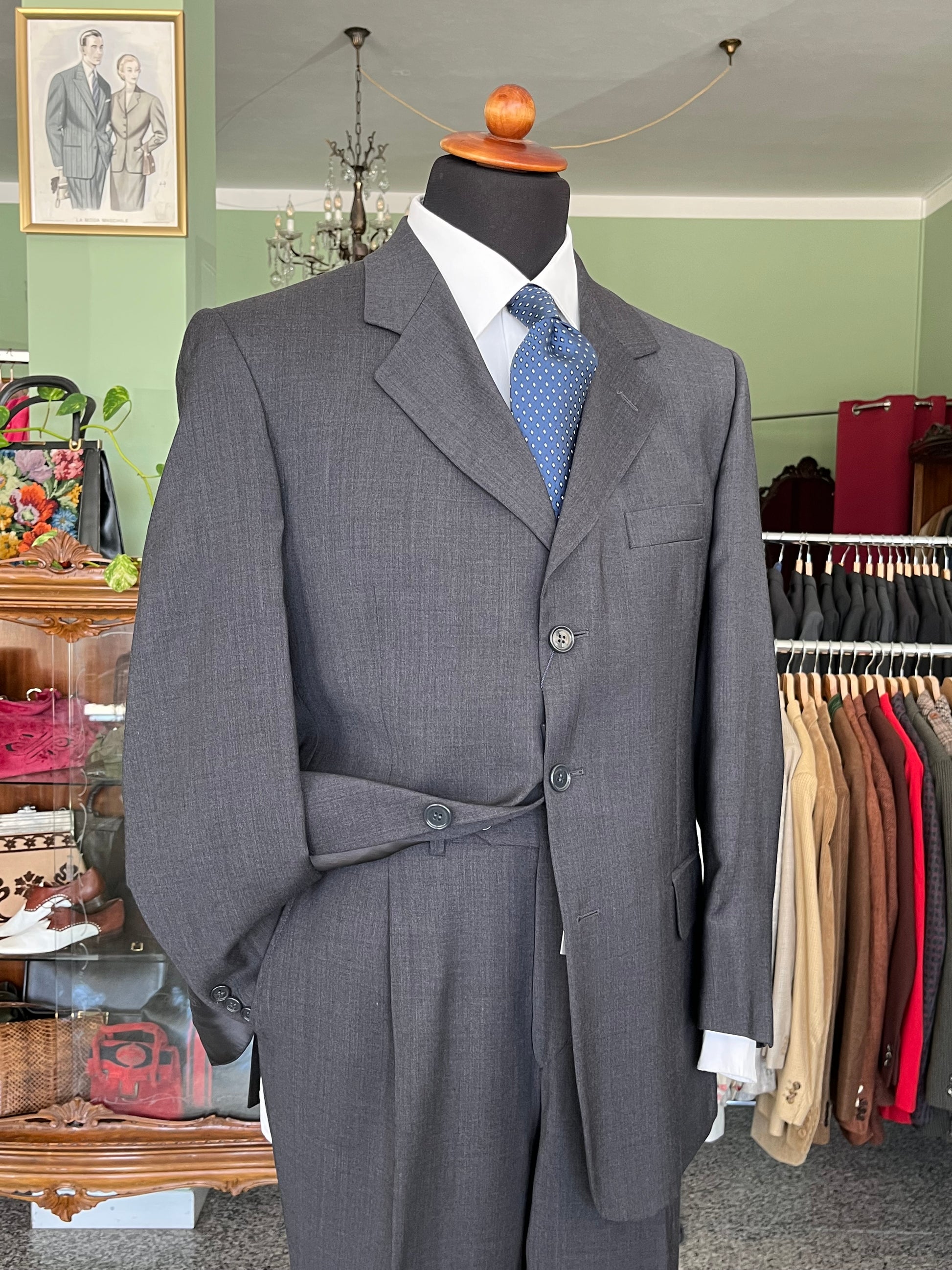 Completo anni ‘90, in 100% pura lana vergine, color grigio antracite.