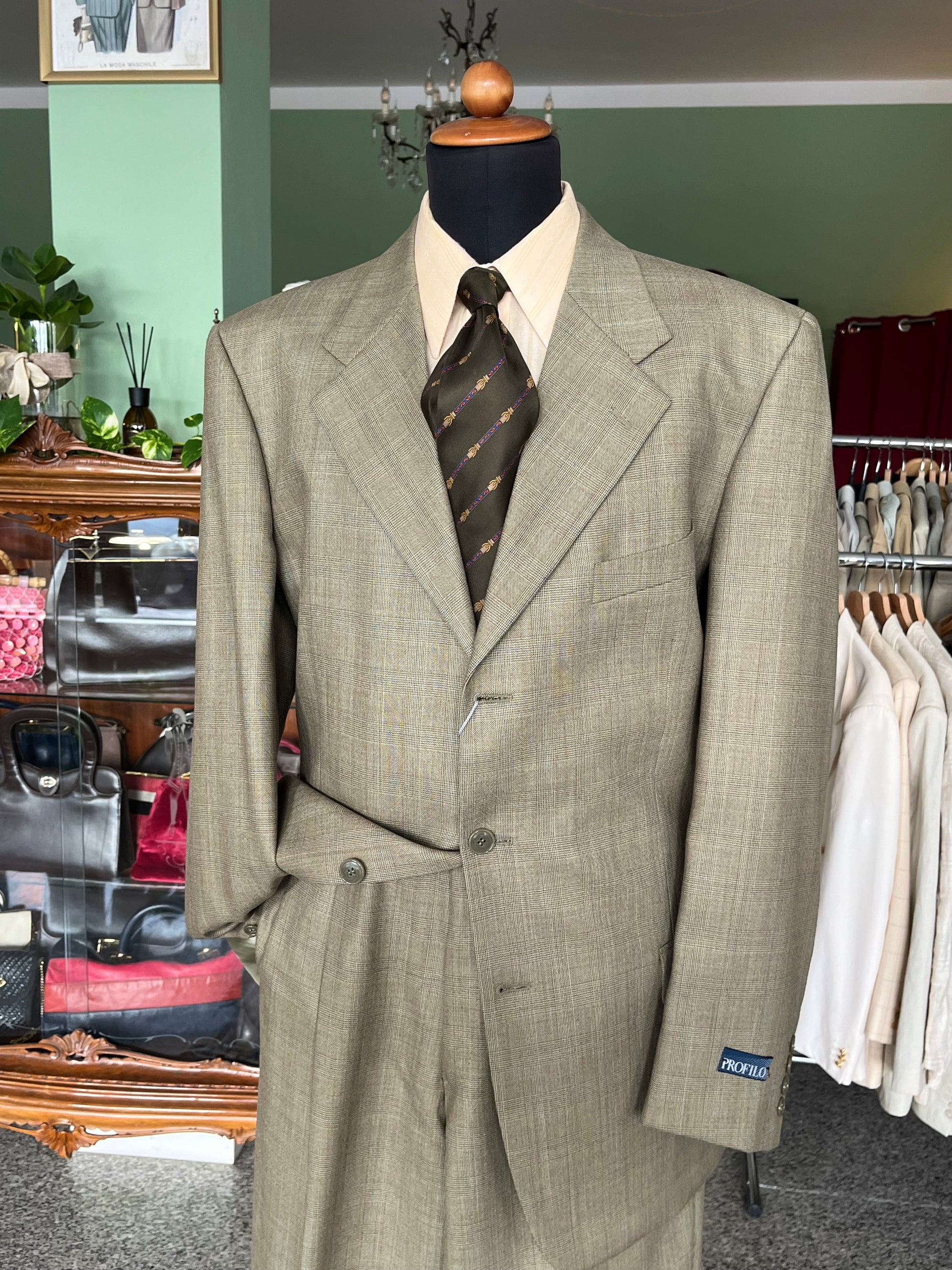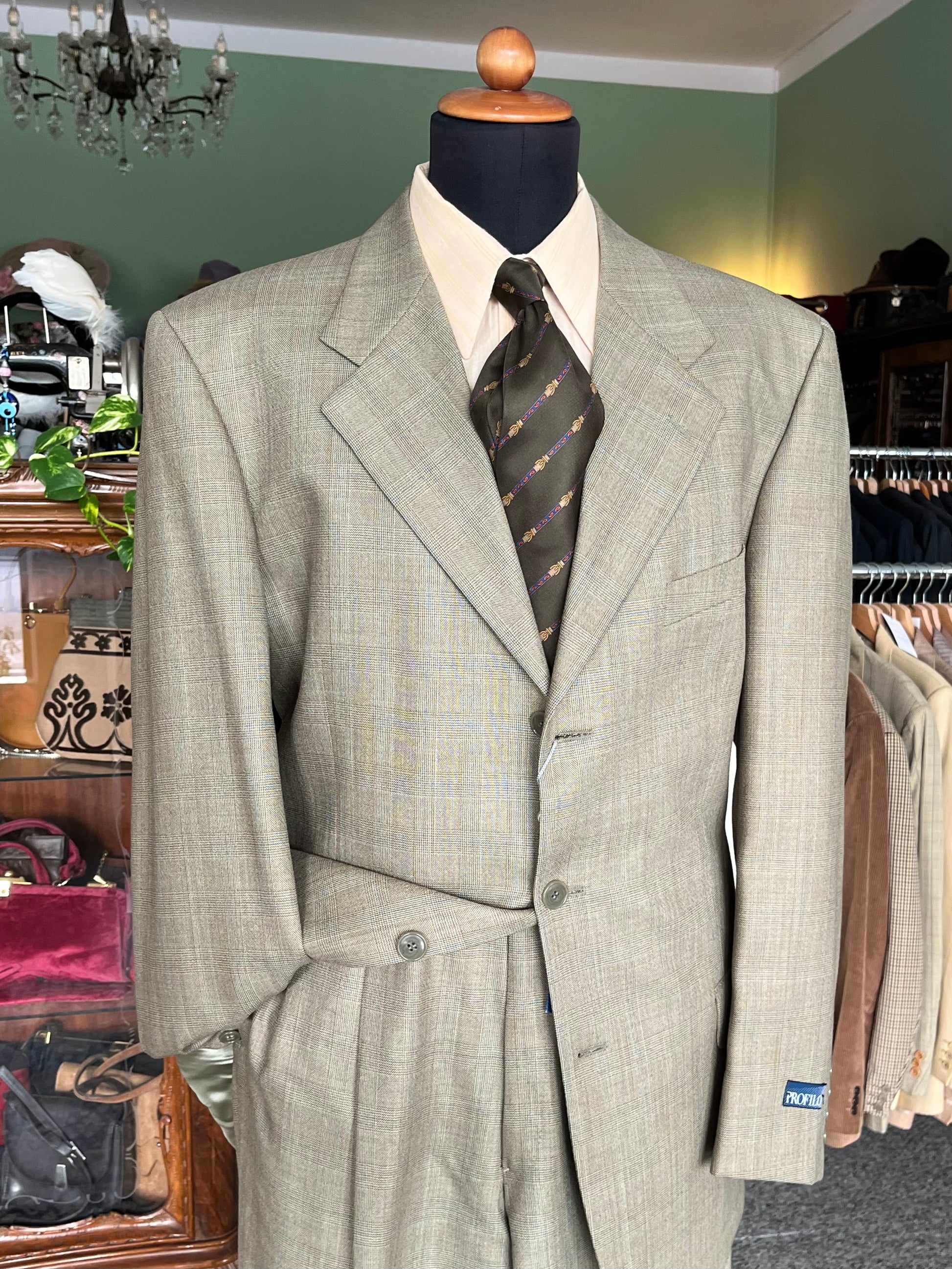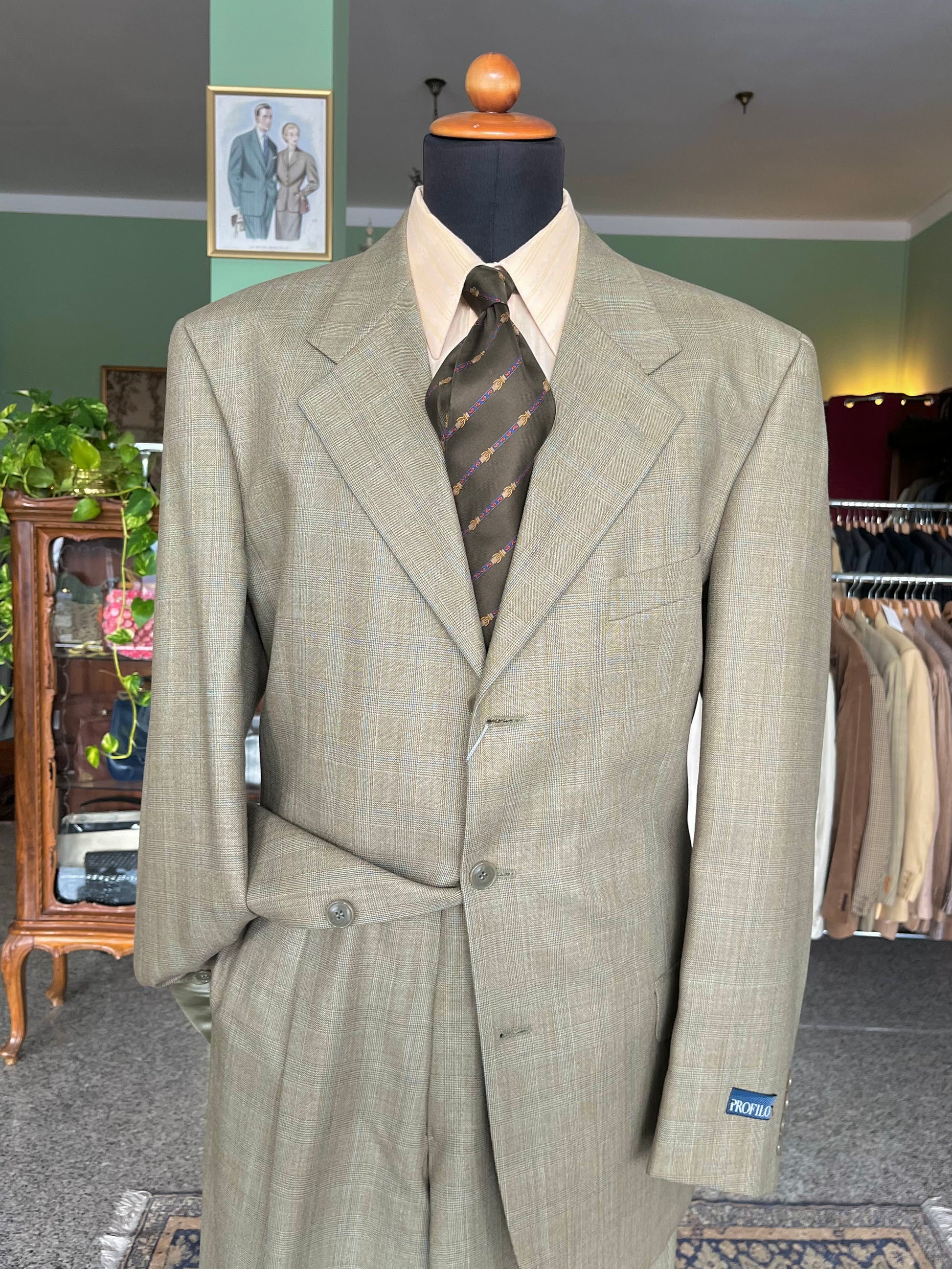 Completo anni ‘80 in 100% lana principe di Galles sui toni del salvia/sabbia.
