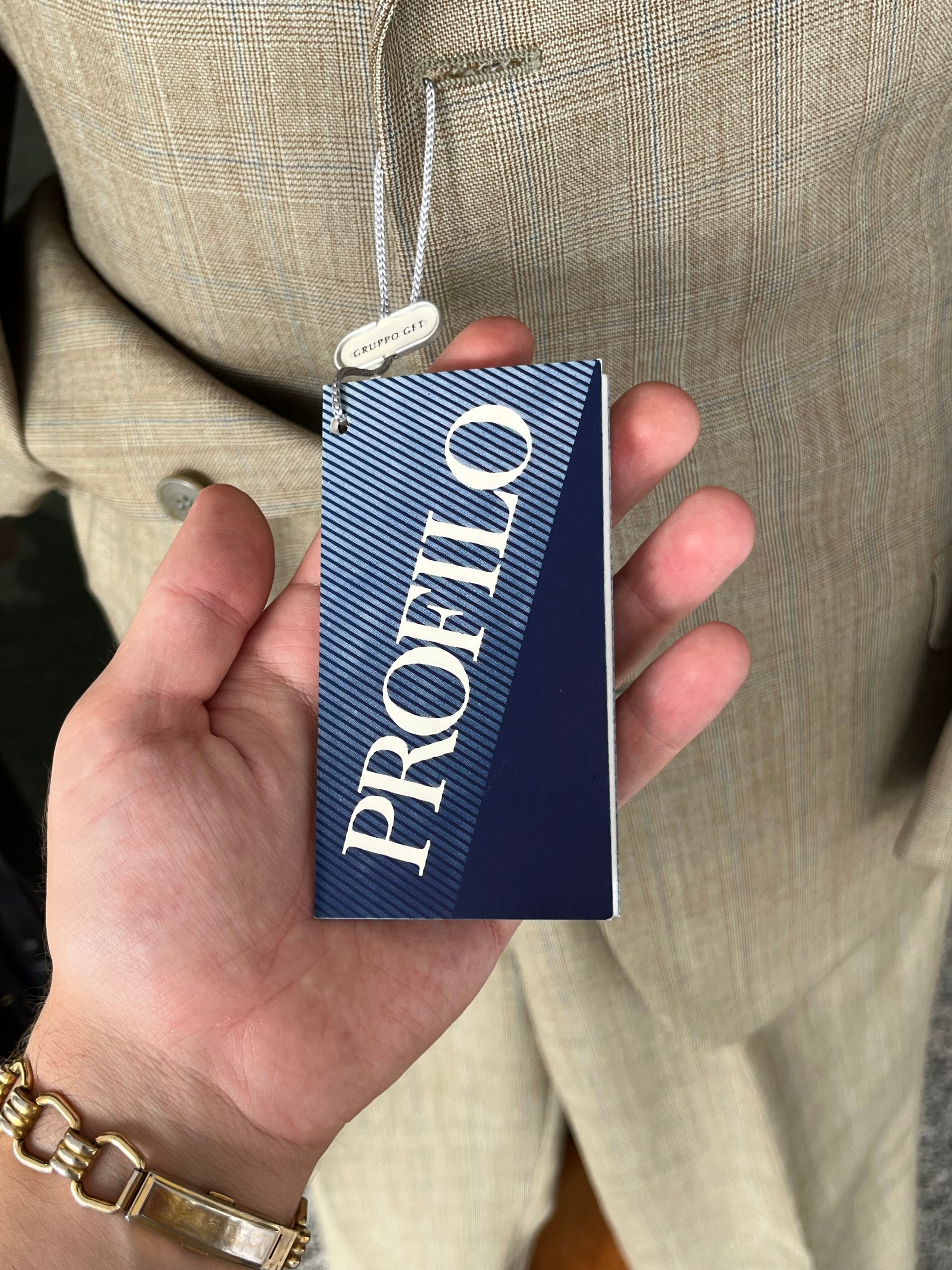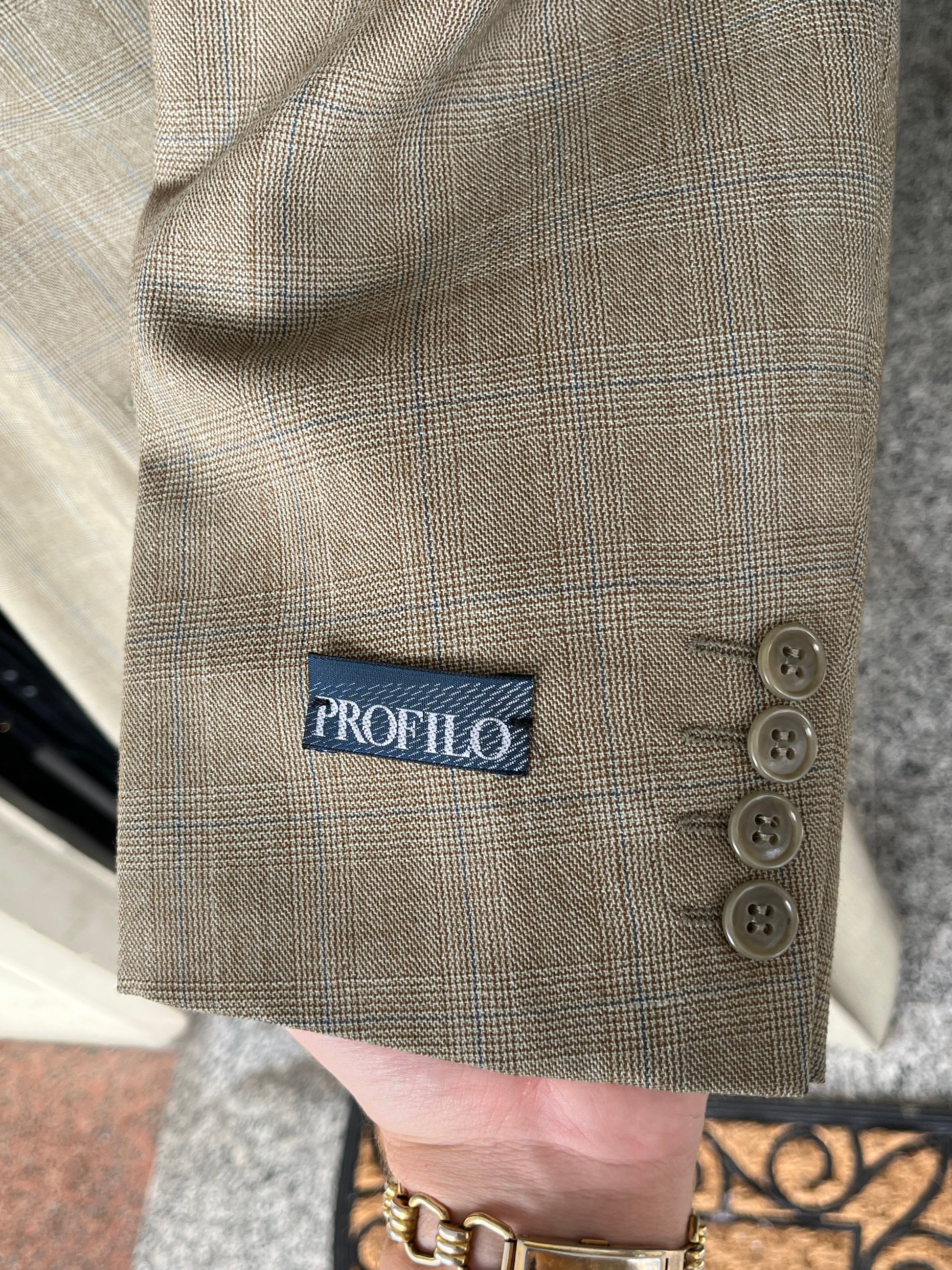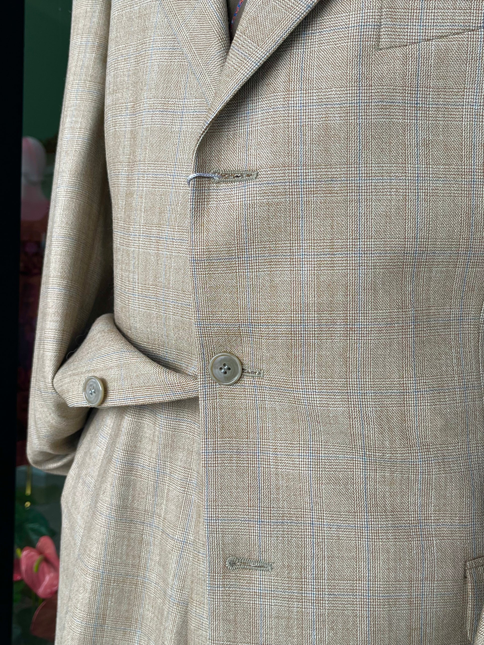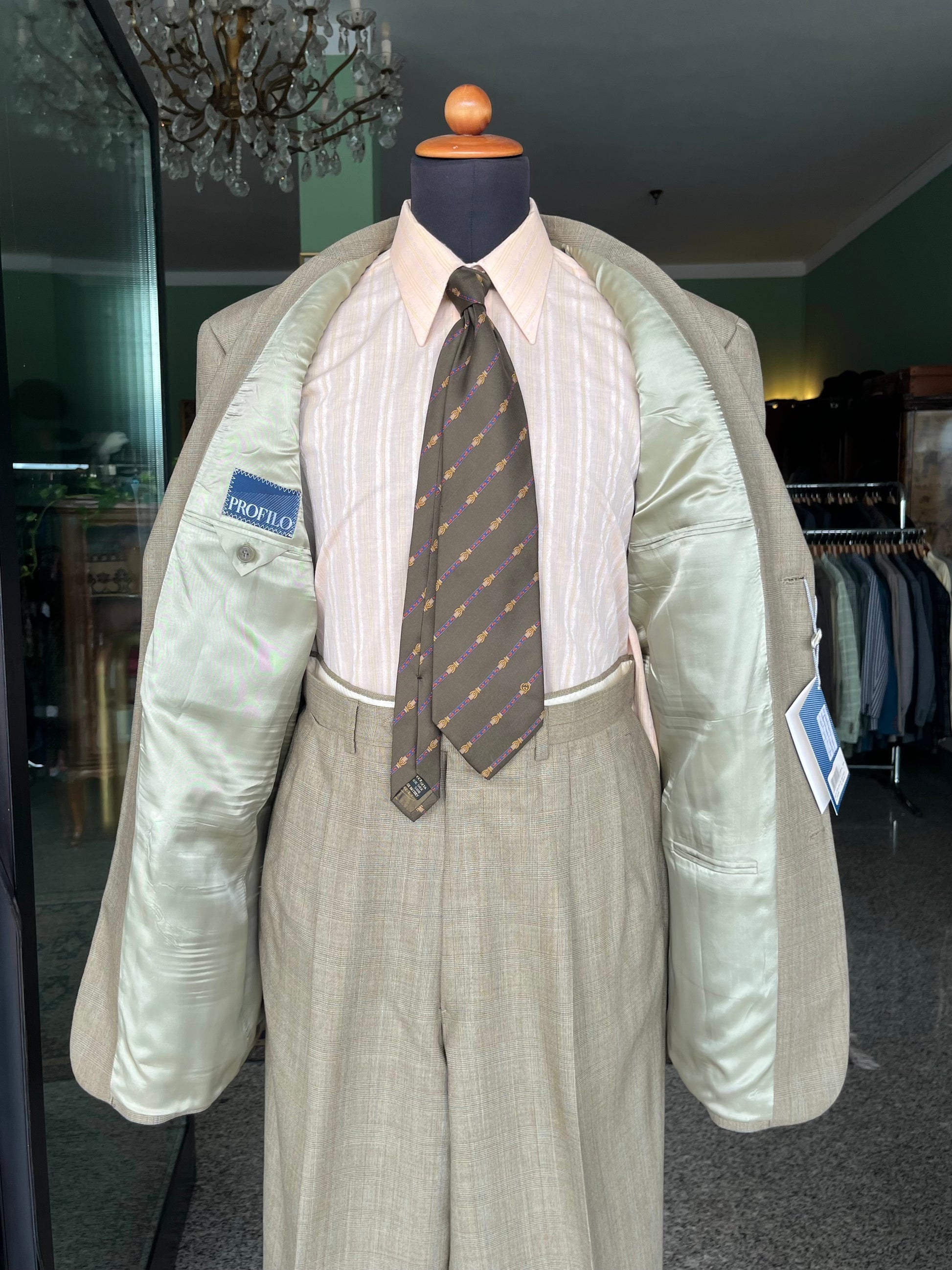 Completo anni ‘80 in 100% lana principe di Galles sui toni del salvia/sabbia.