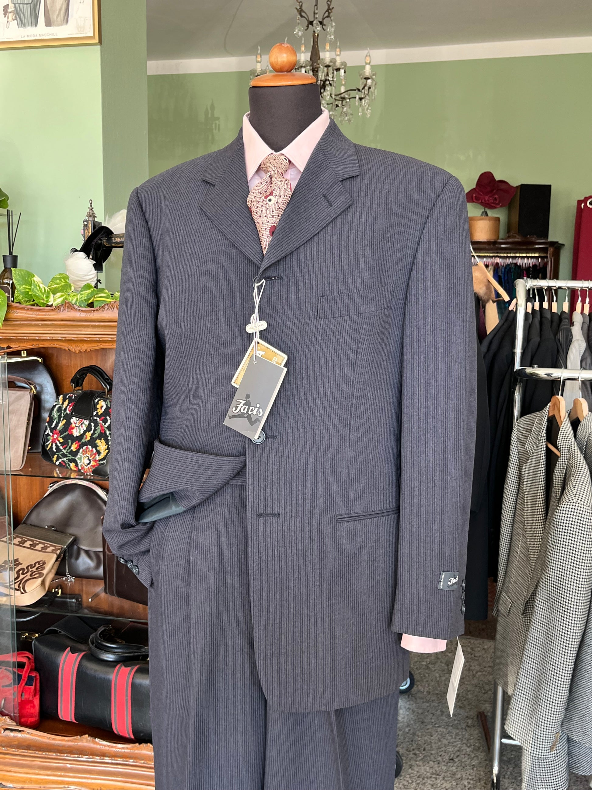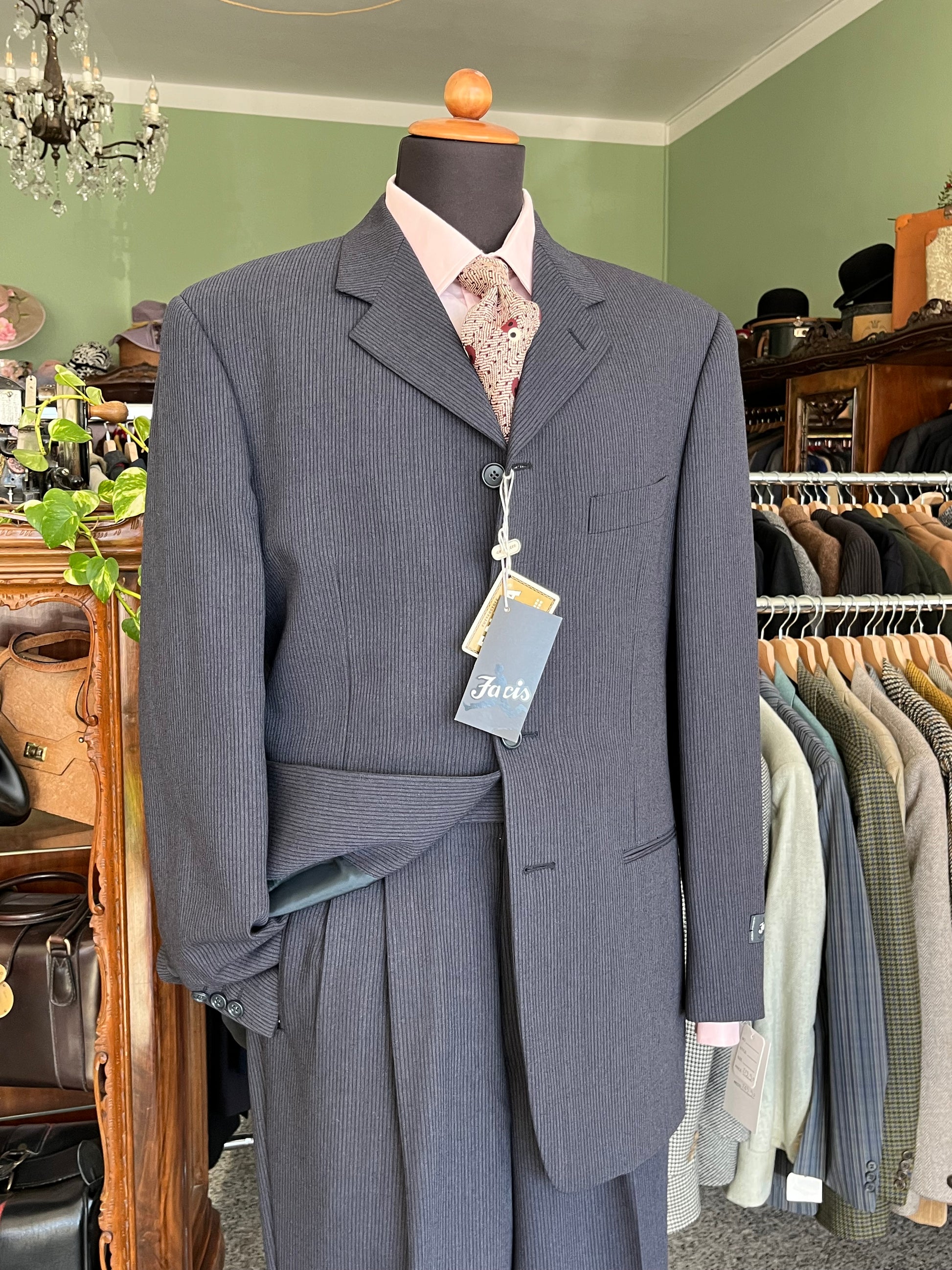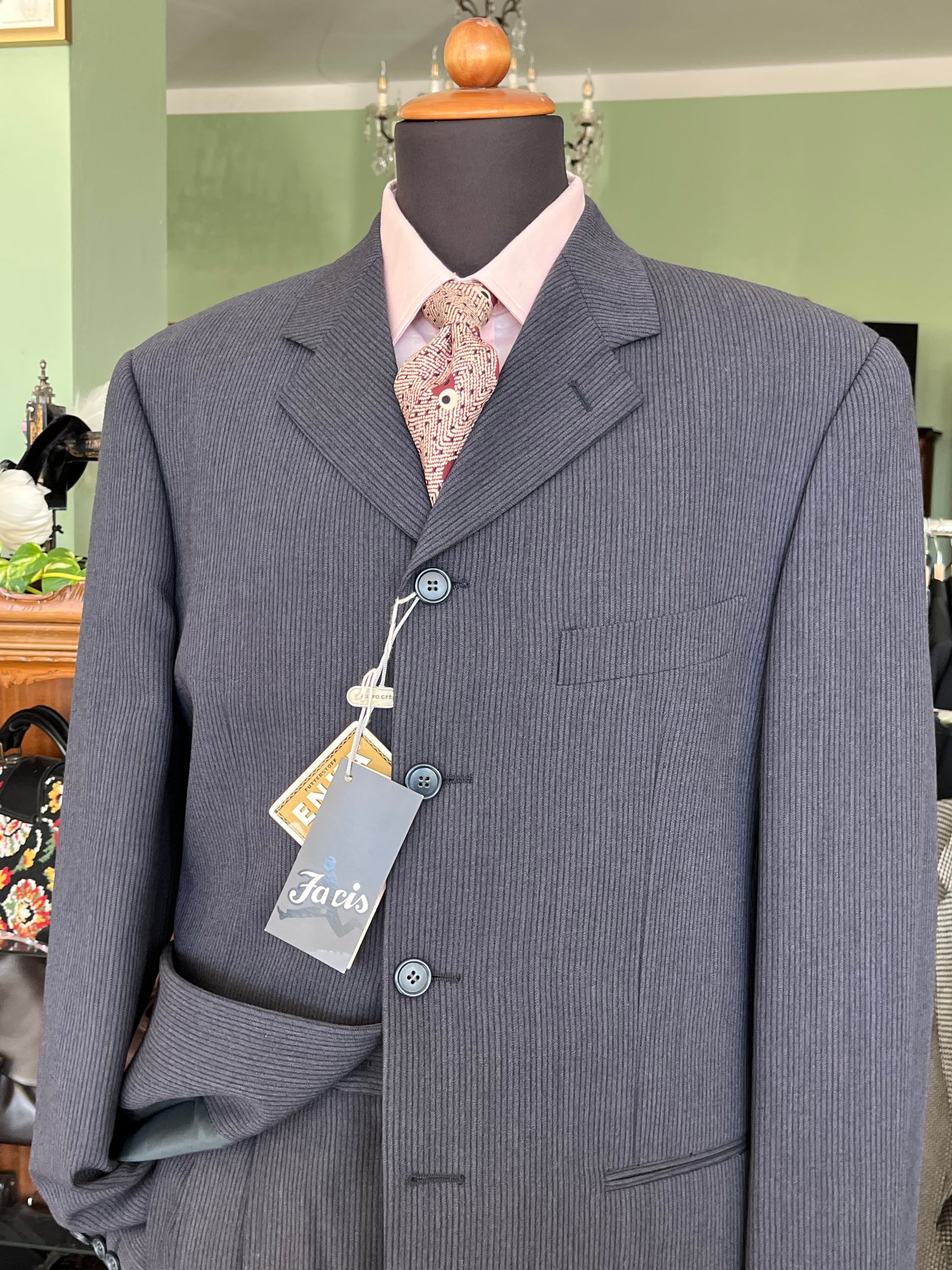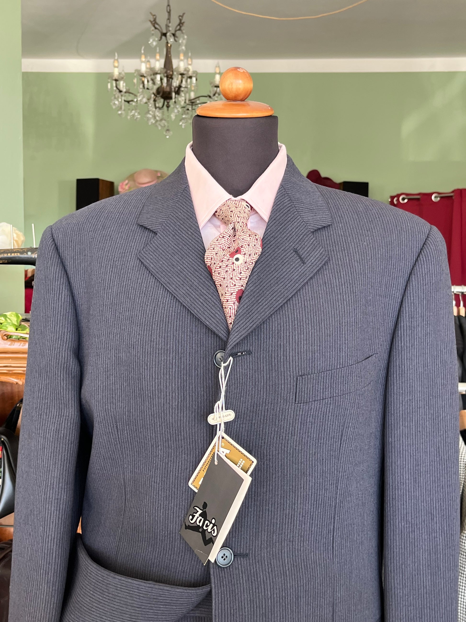 Completo Facis anni ‘90, in pura lana vergine, color grigio scuro gessato di nero.