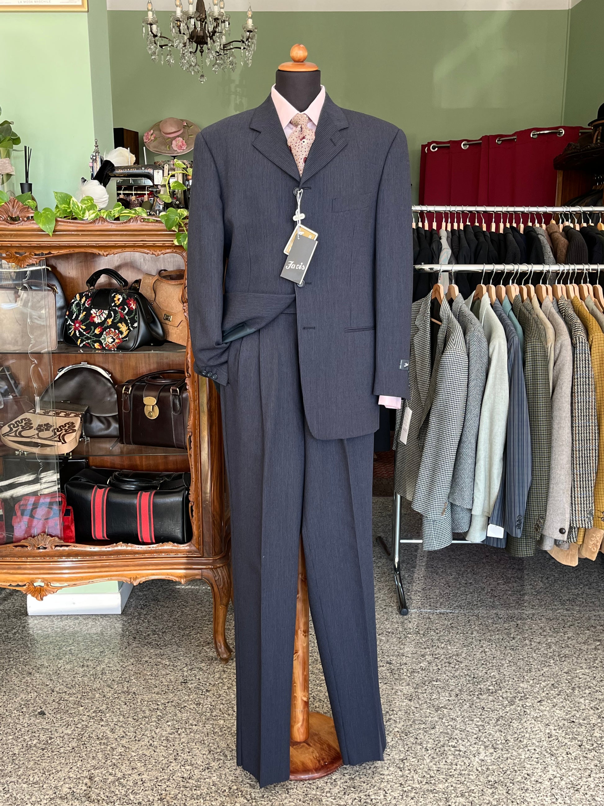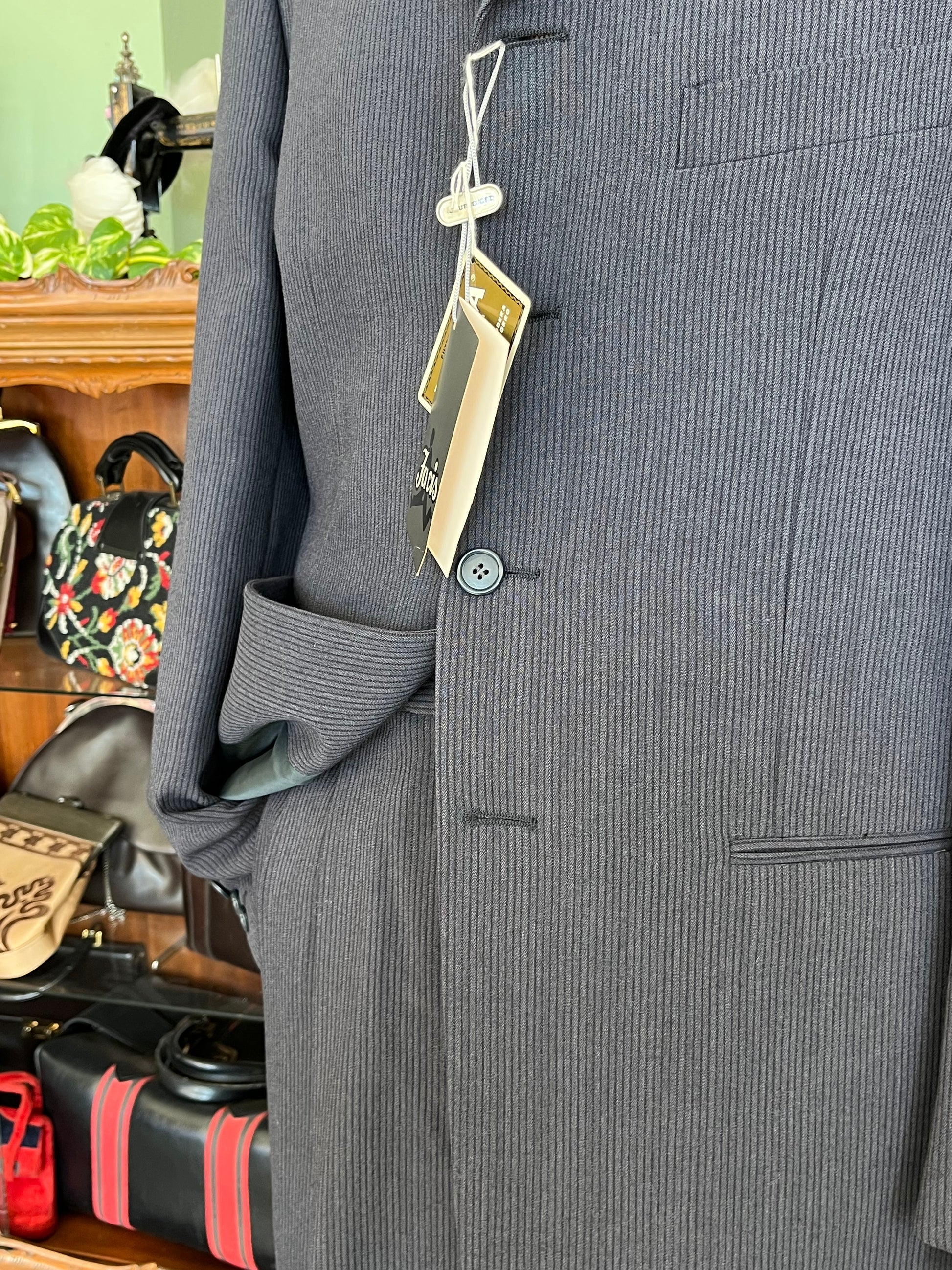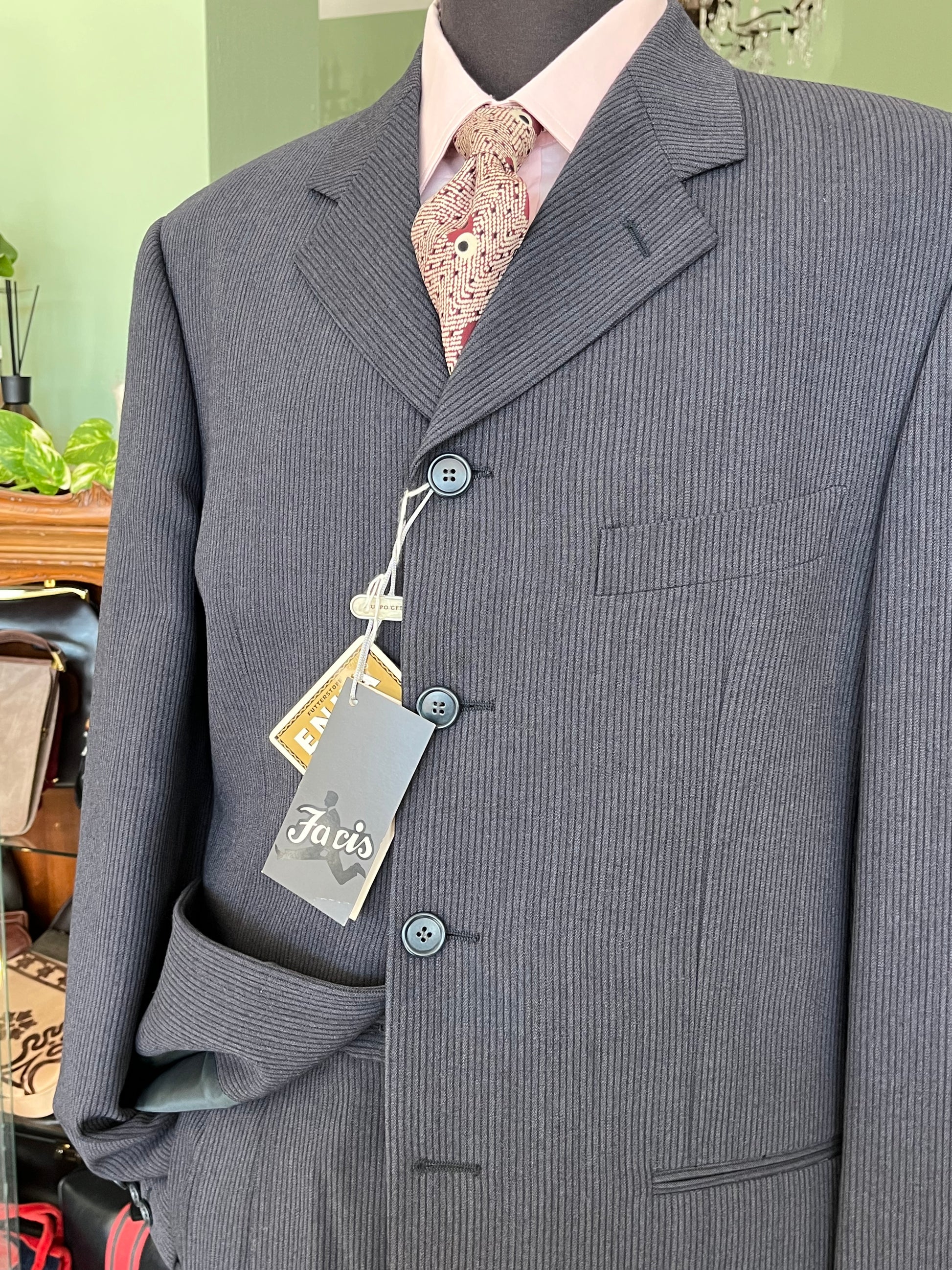 Completo Facis anni ‘90, in pura lana vergine, color grigio scuro gessato di nero.