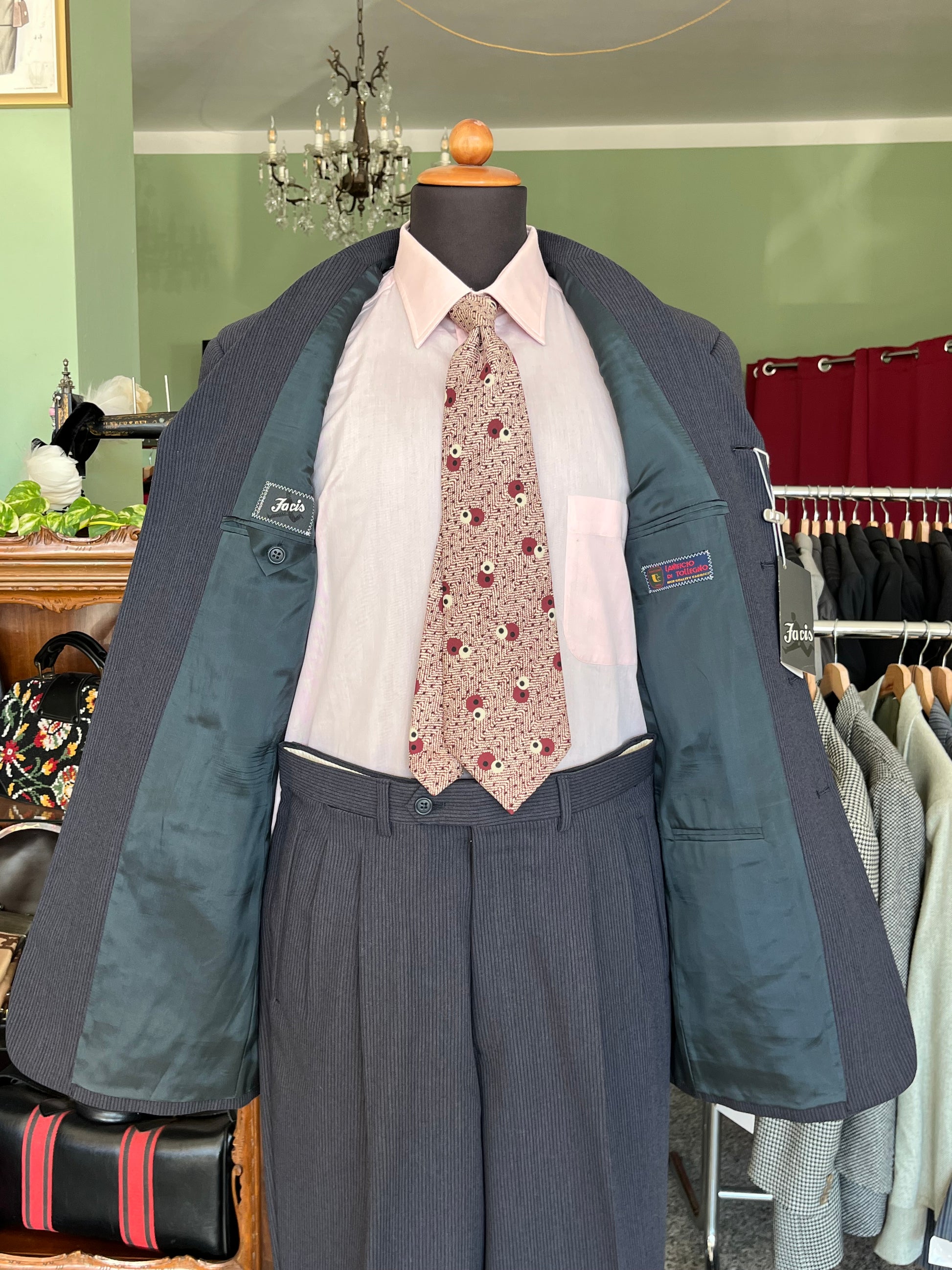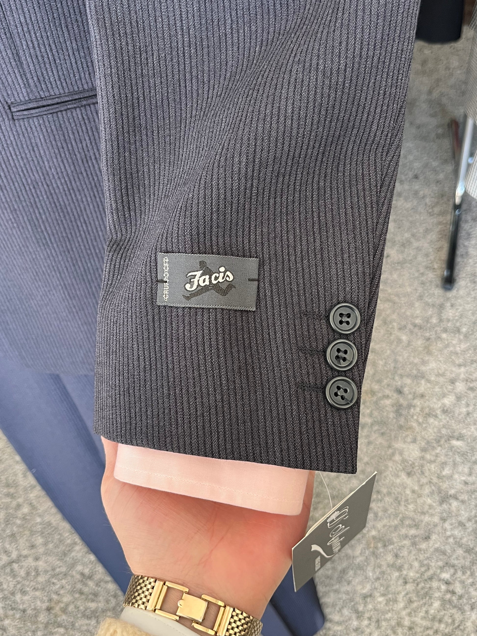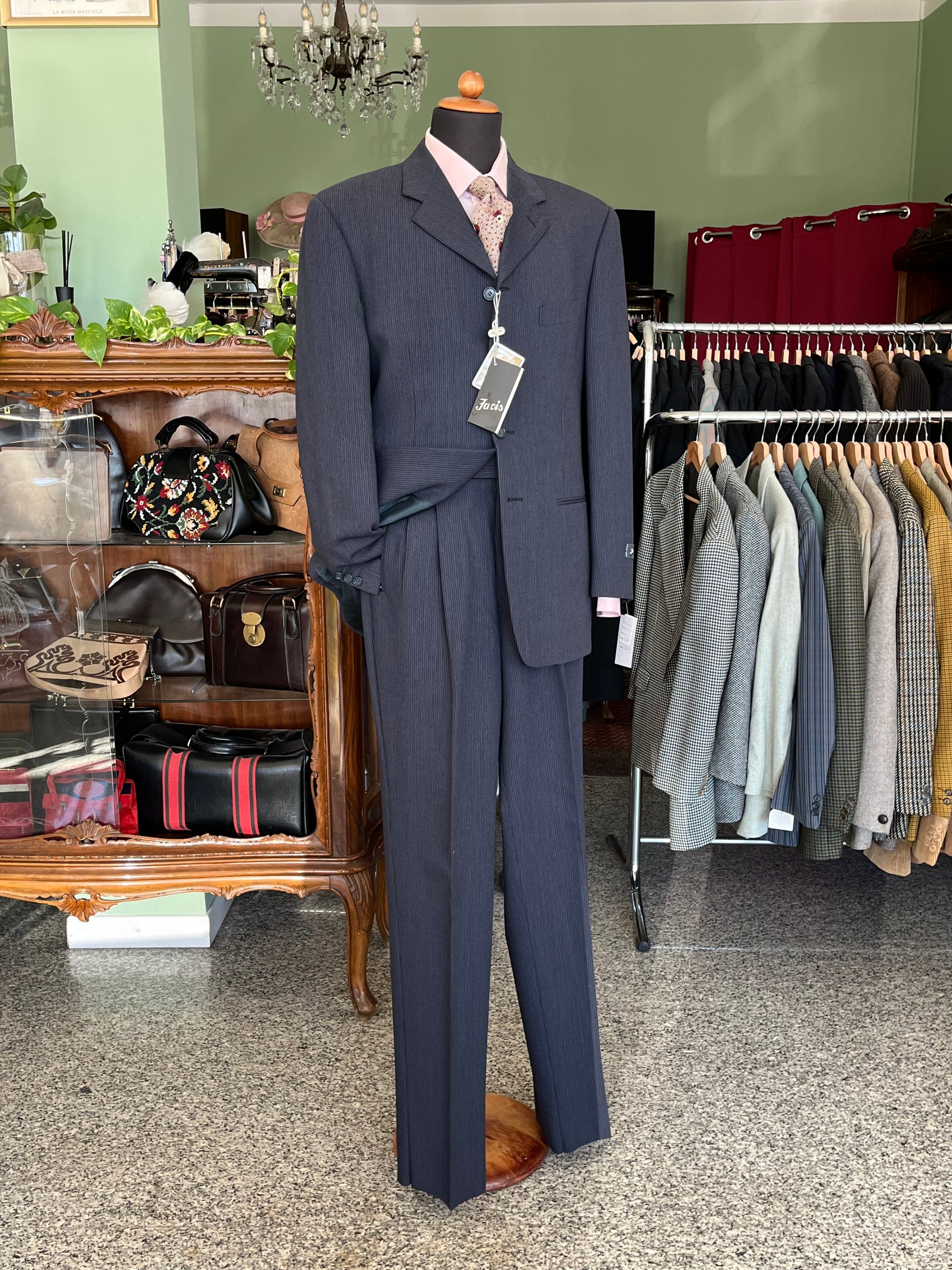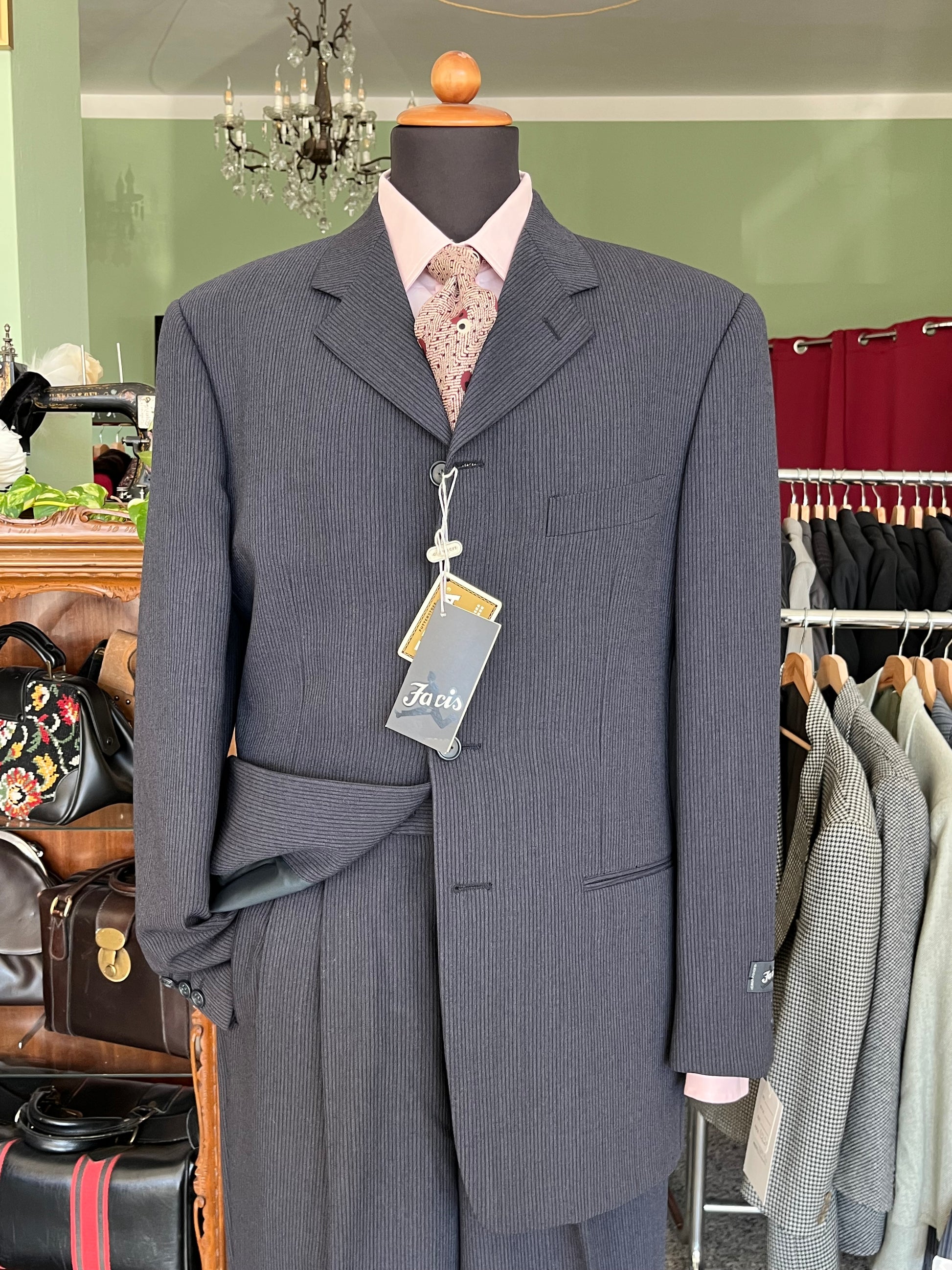 Completo Facis anni ‘90, in pura lana vergine, color grigio scuro gessato di nero.