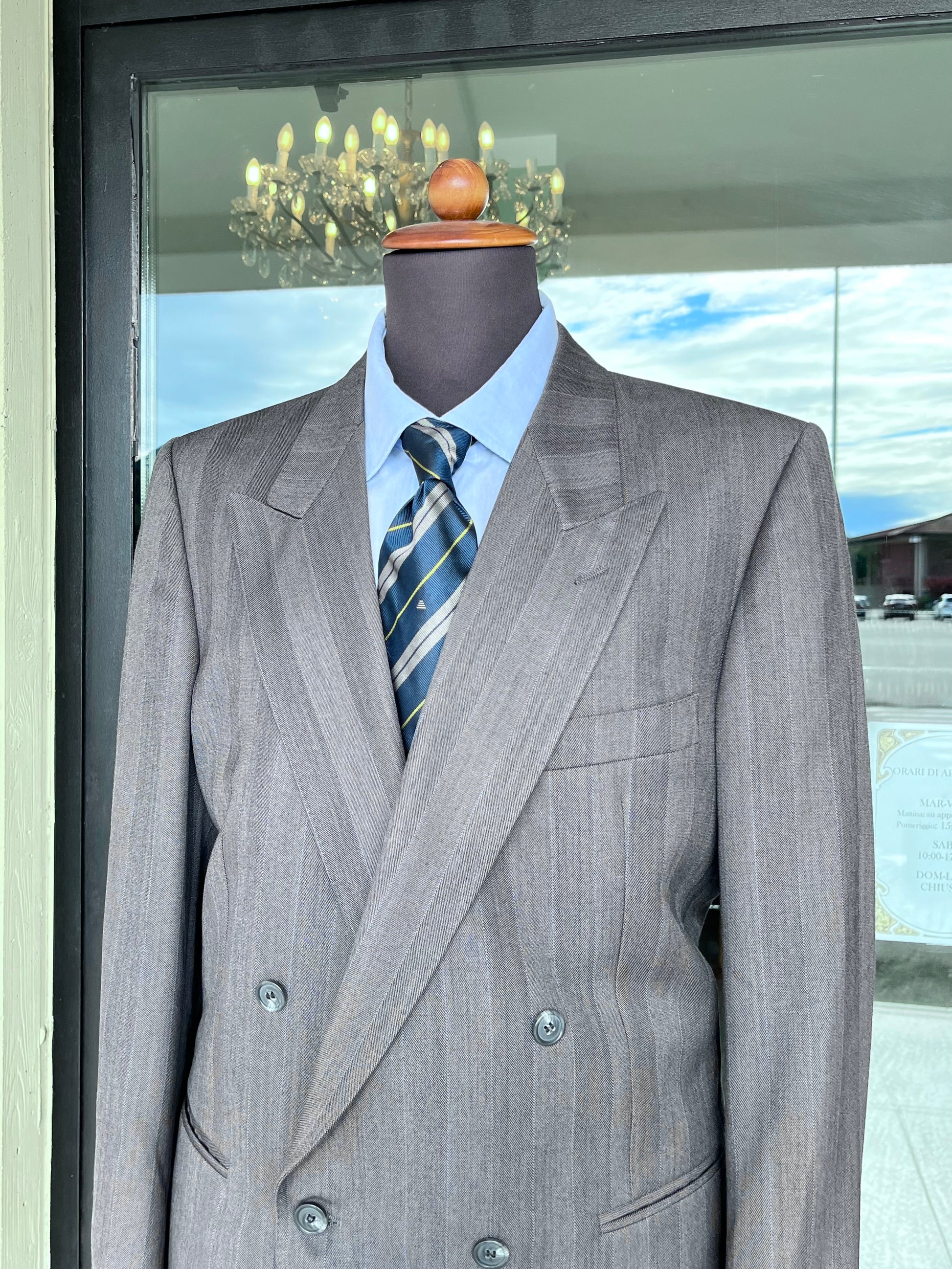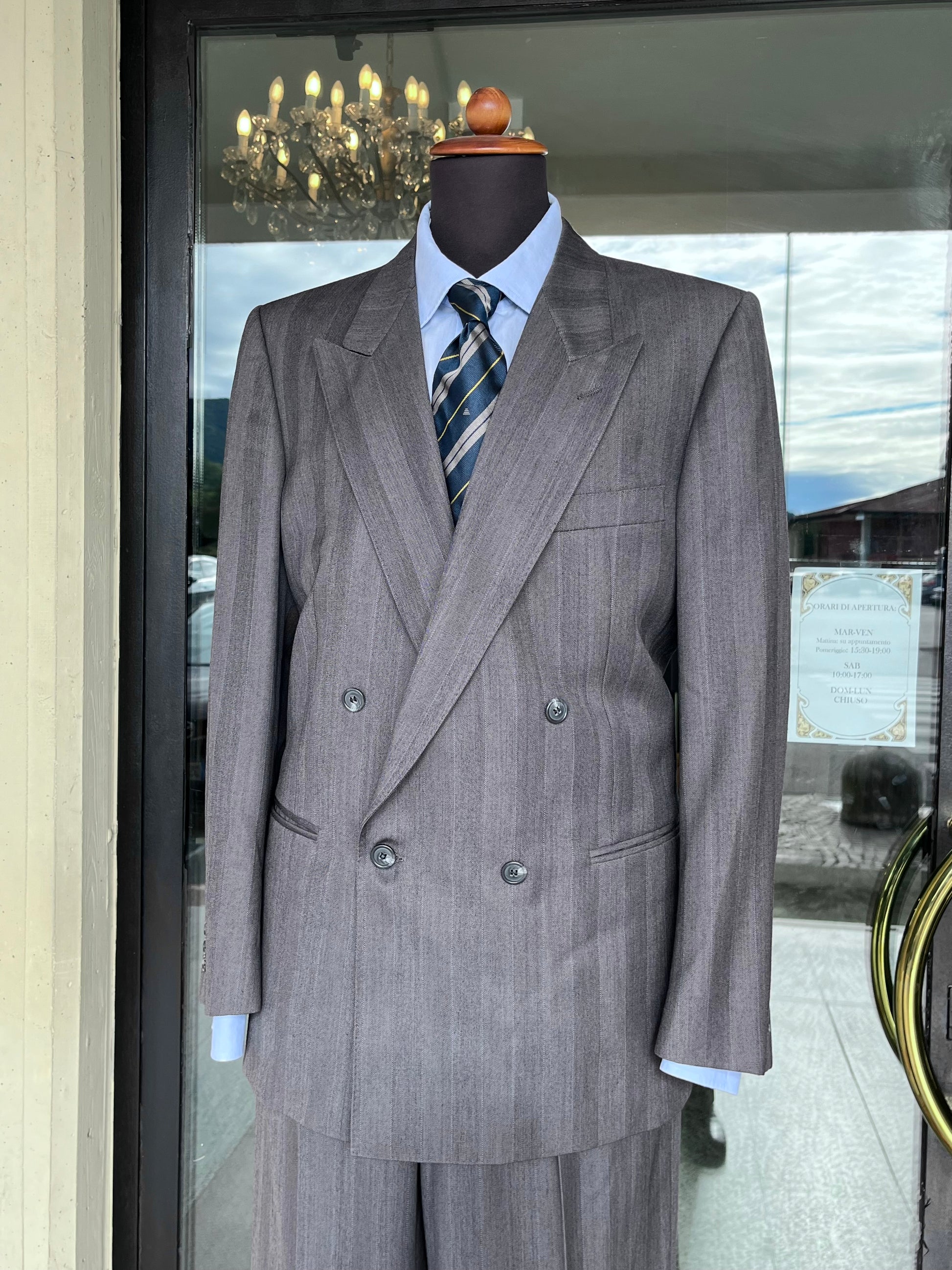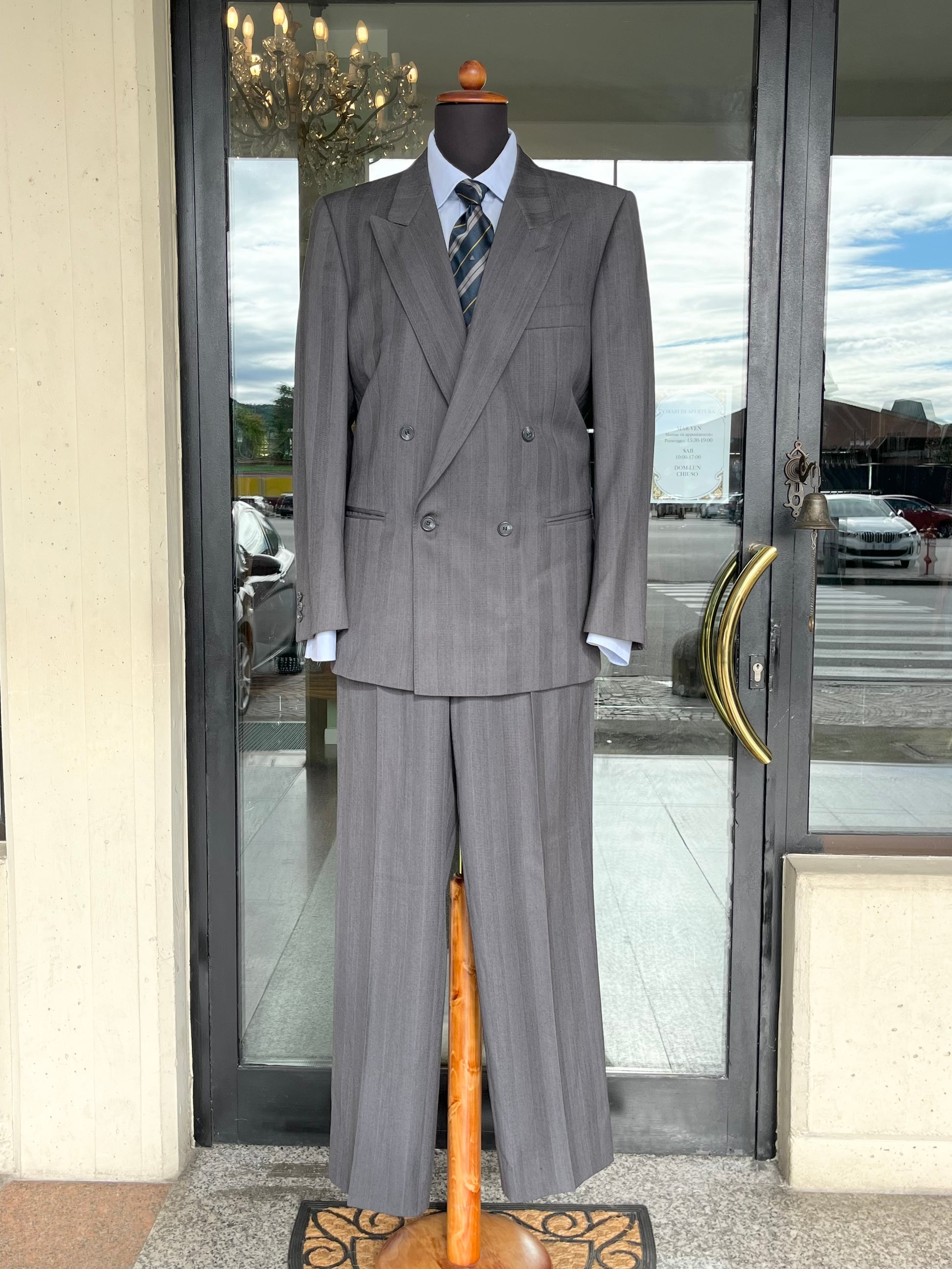 Completo anni ‘80 in 100% pura di lana, color grigio gessato di celeste.