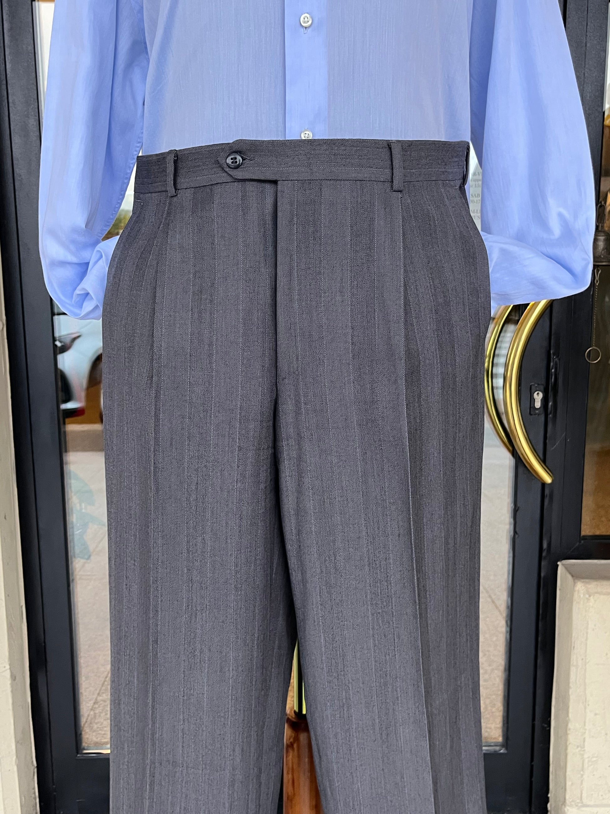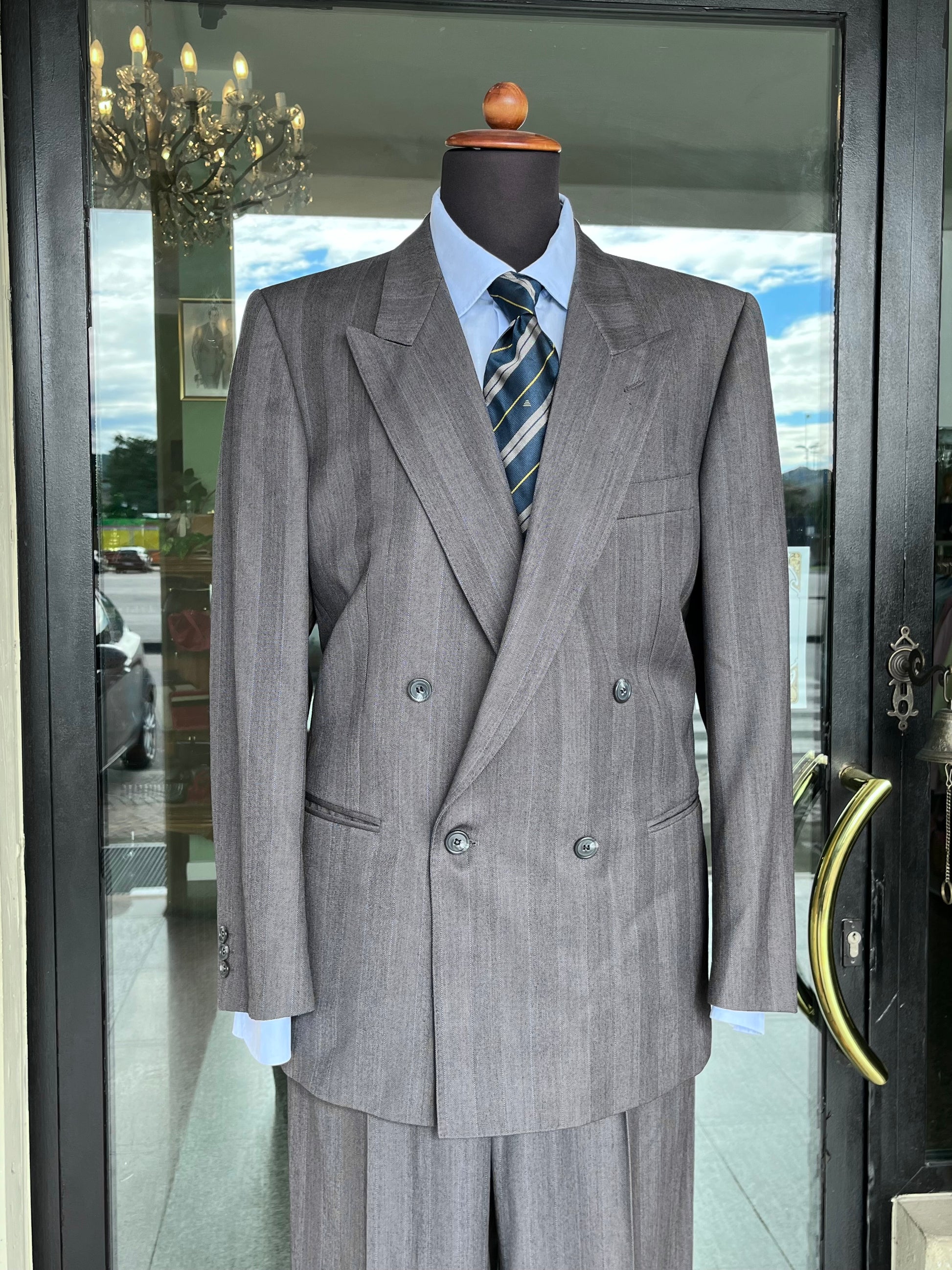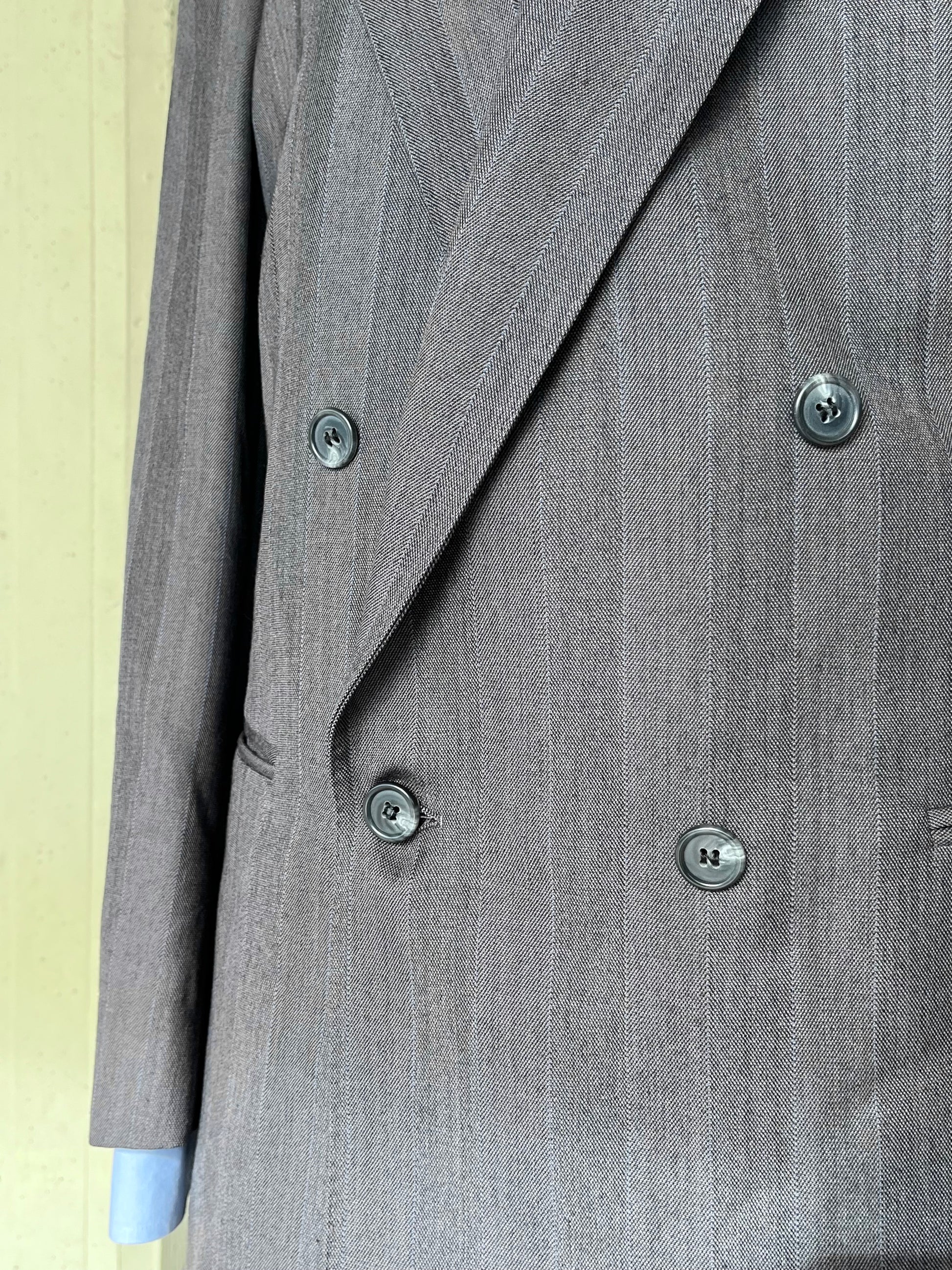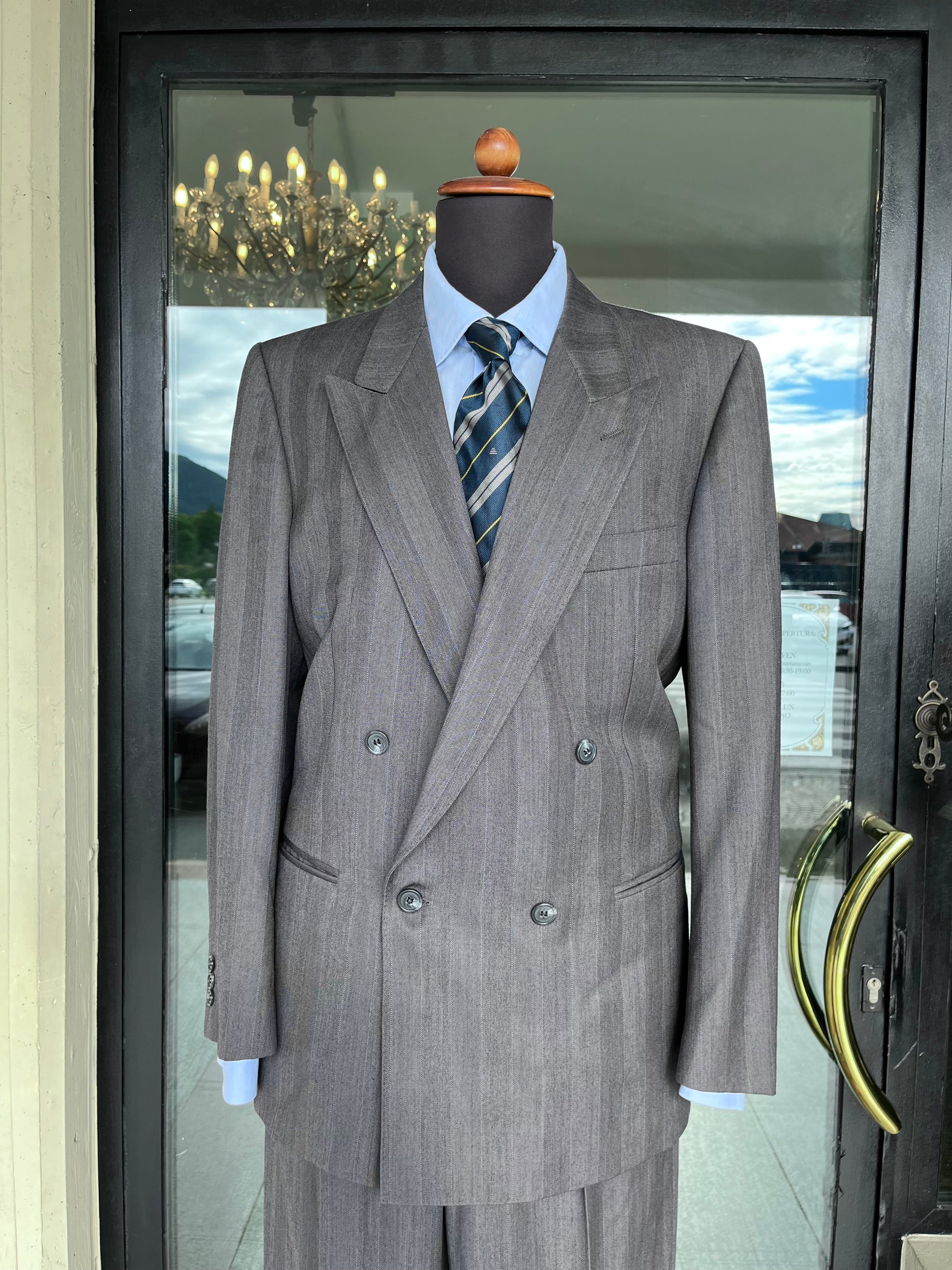 Completo anni ‘80 in 100% pura di lana, color grigio gessato di celeste.