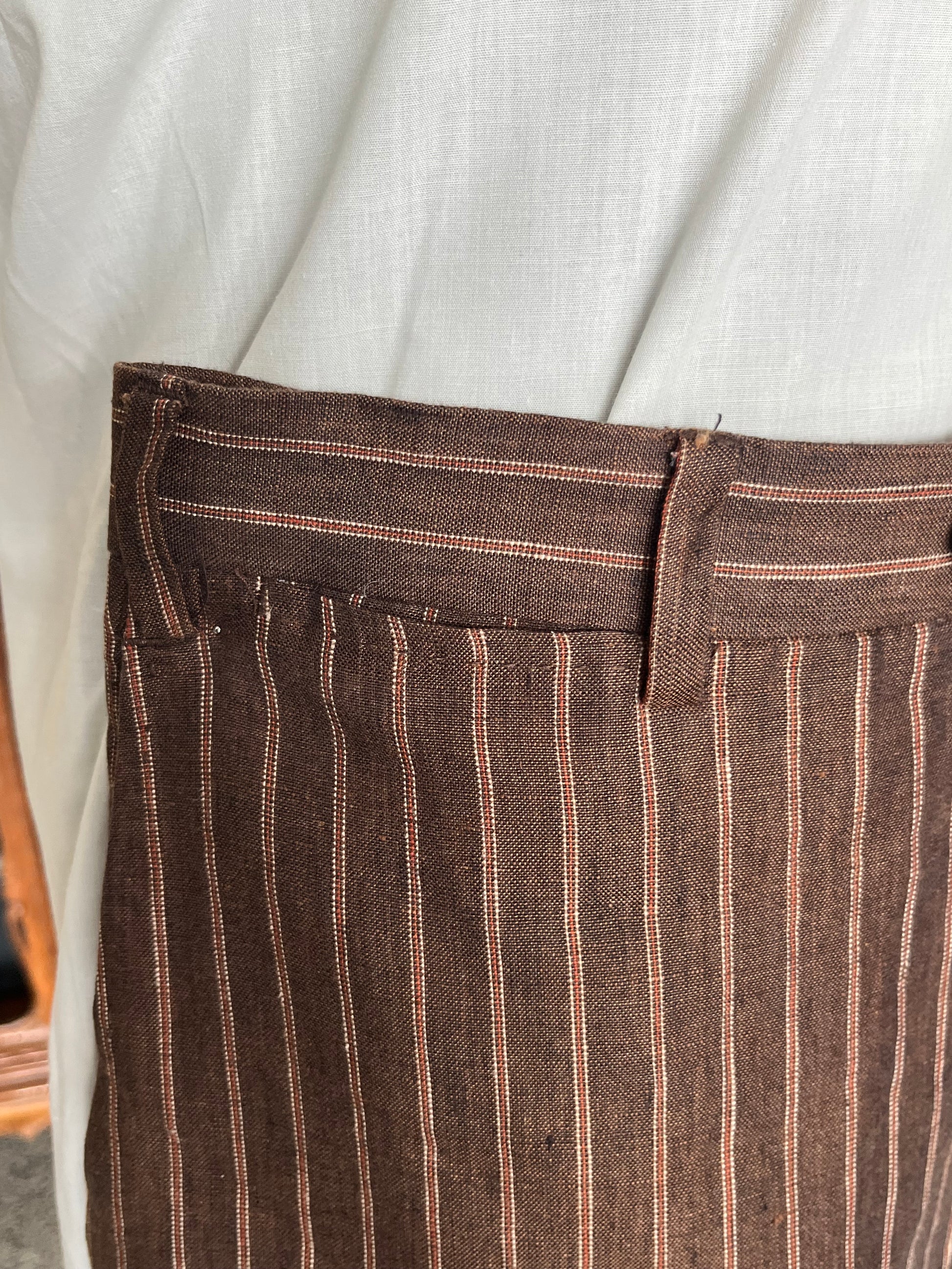 Il tessuto è un 100% puro lino, di uno stupendo color cacao gessato di arancio. Ideale dunque per l’estate e le temperature più calde.
