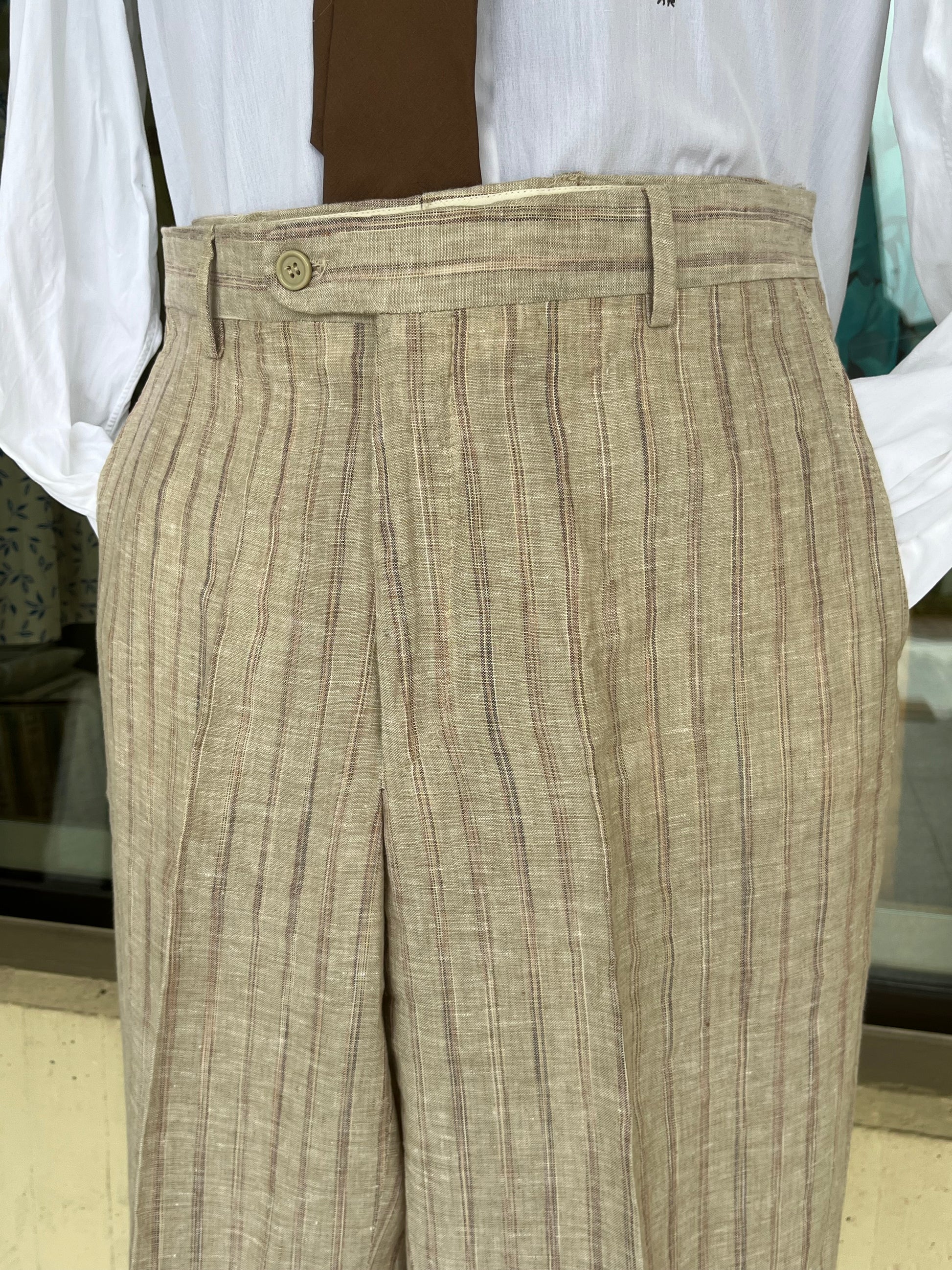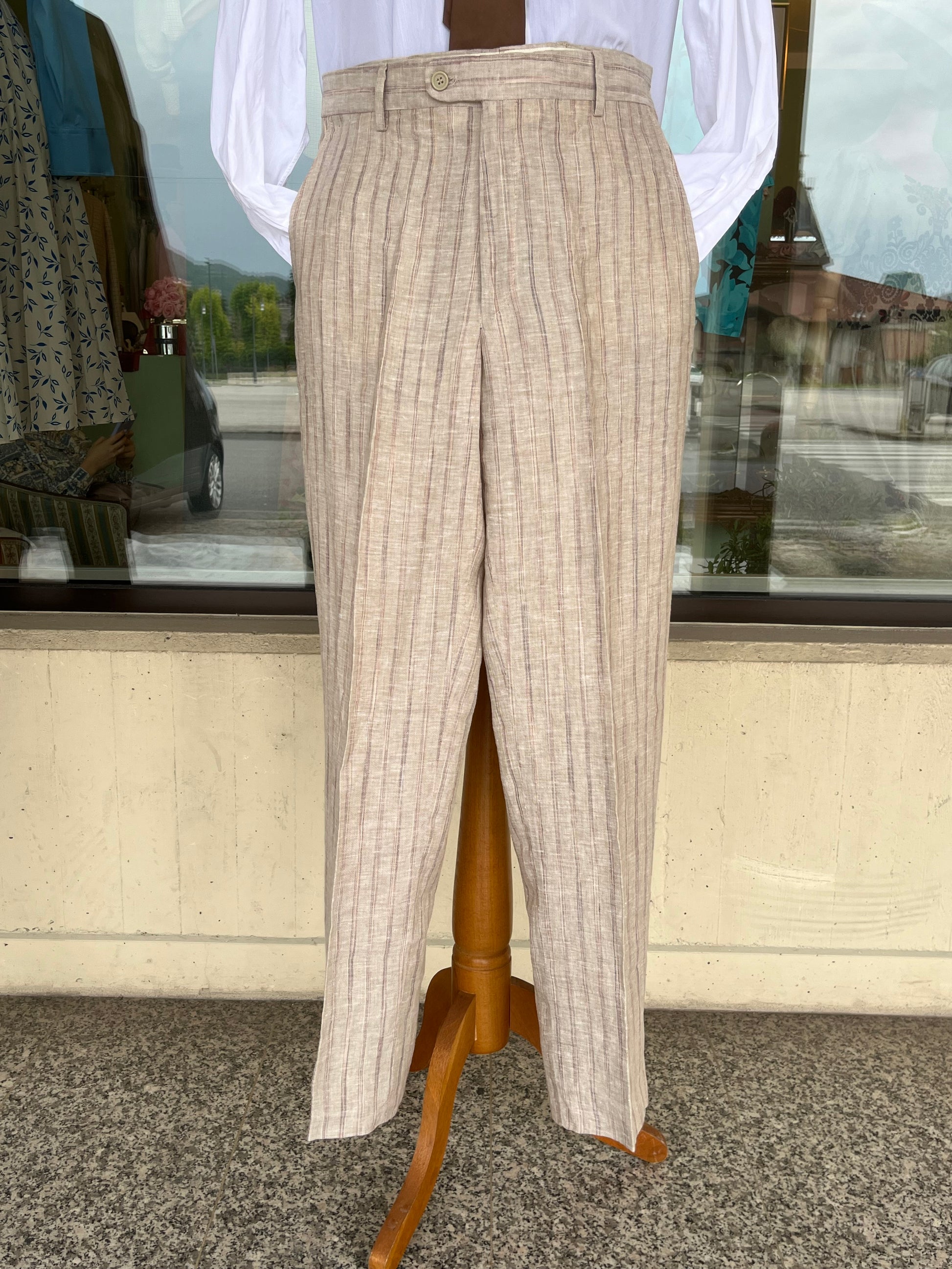 I calzoni hanno un taglio classico, con vita alta ed un taglio dritto.