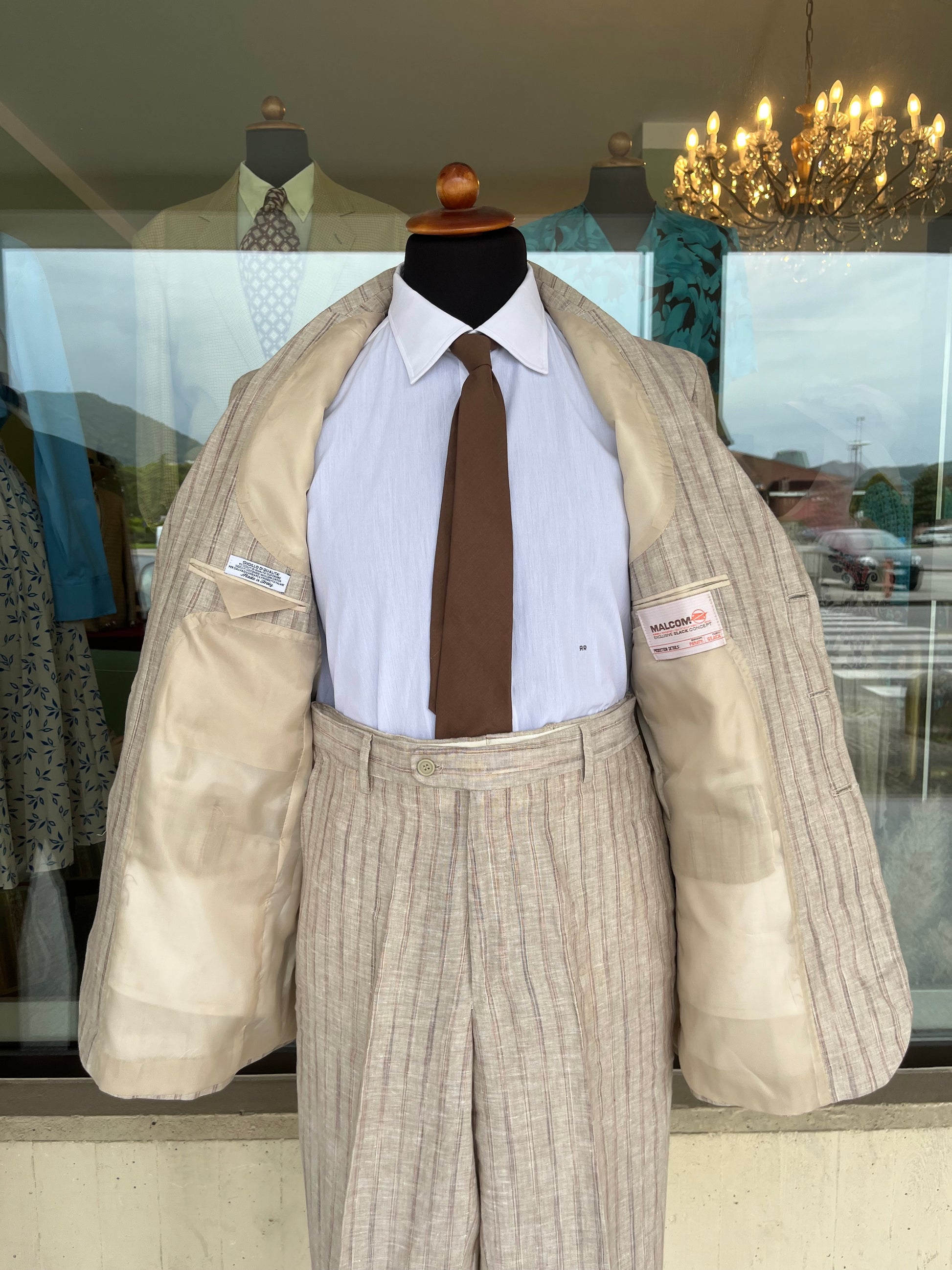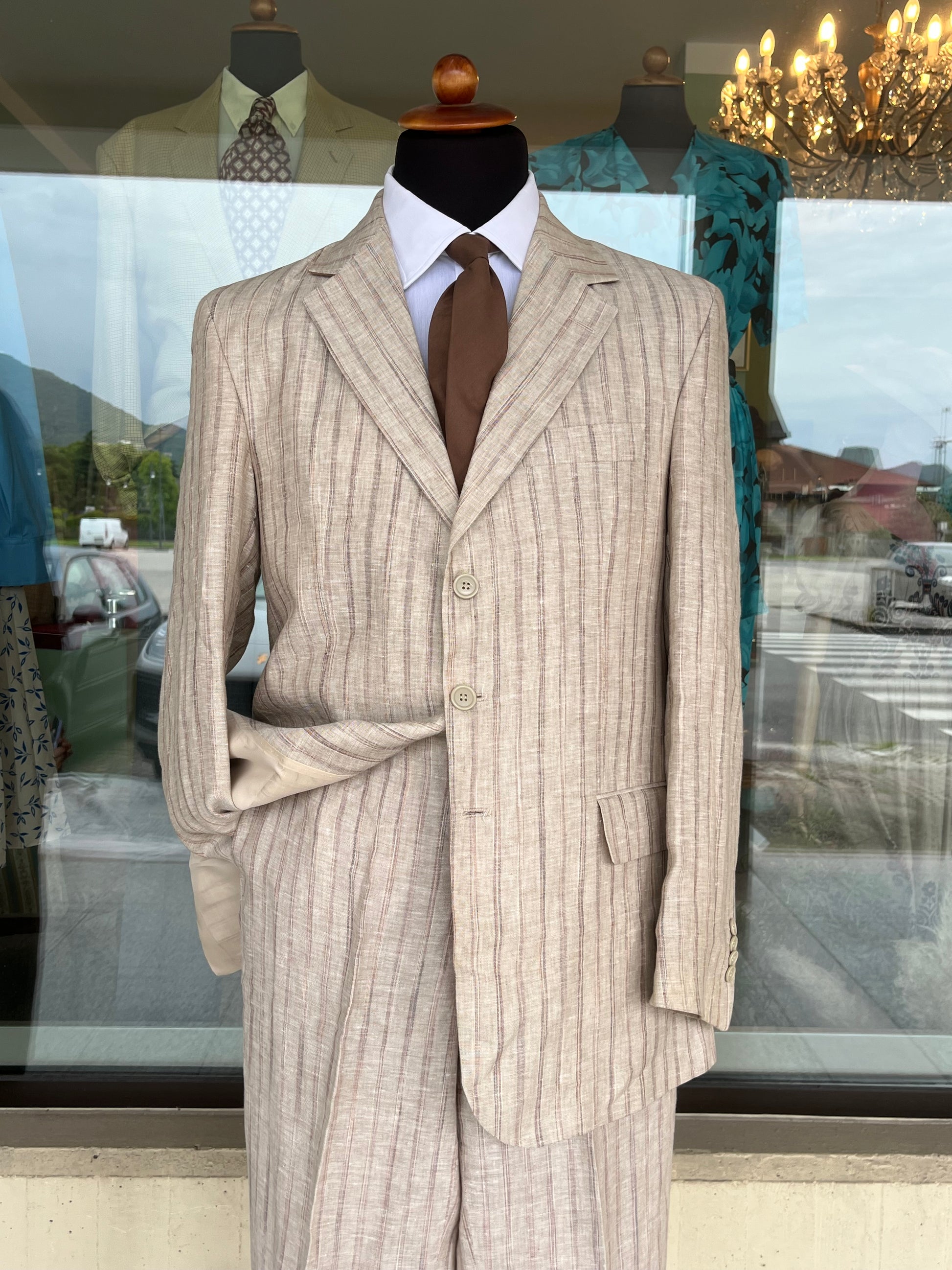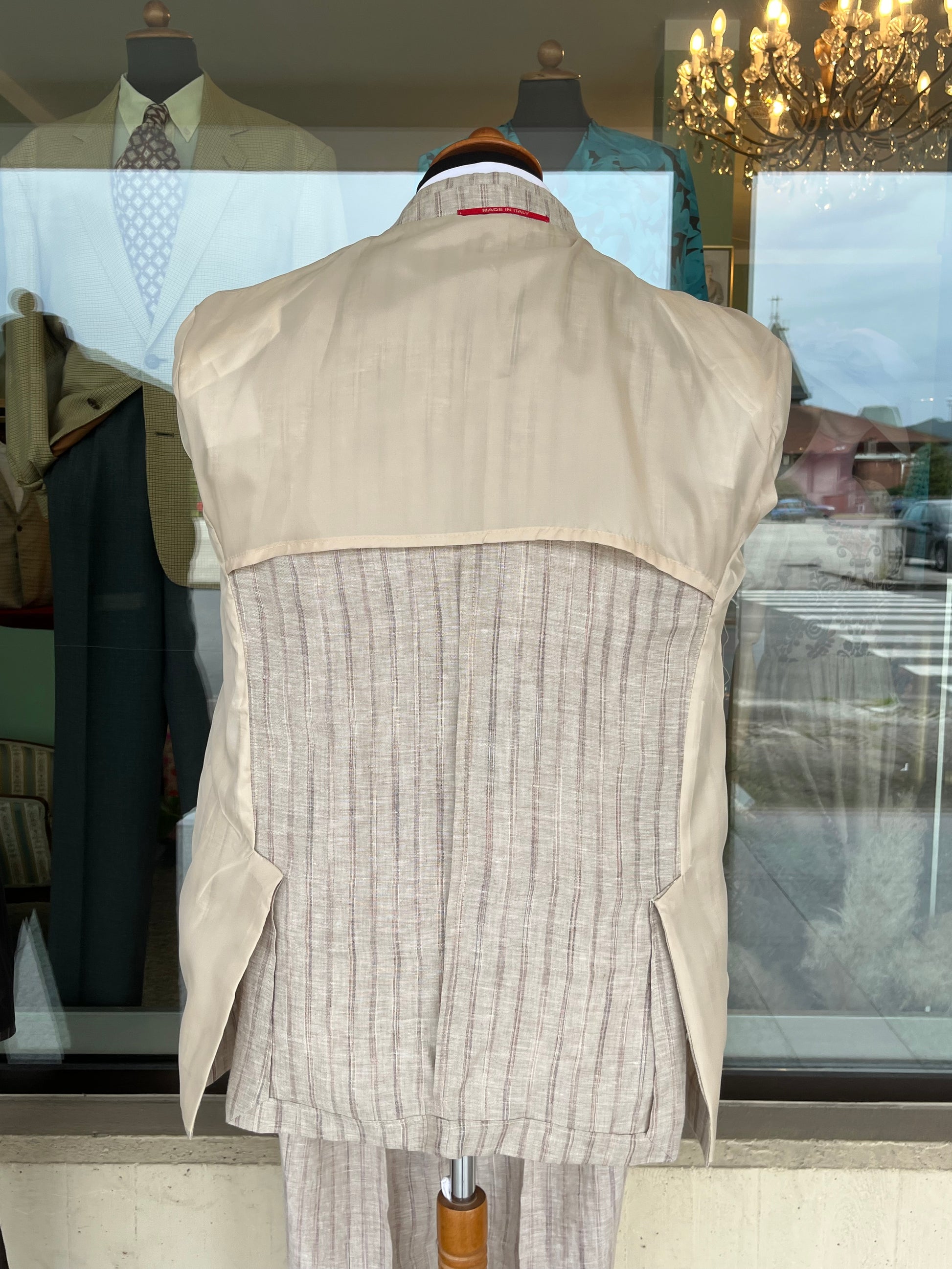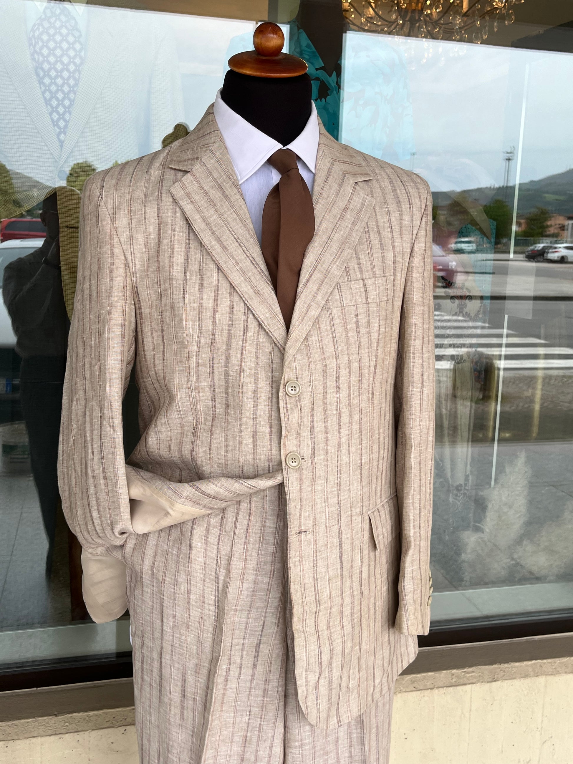 La giacca è un monopetto, tre bottoni, baveri a dente, tasche a pattina e doppio spacco sul retro. È inoltre semi-sfoderata, quindi ideale alla stagione calda.