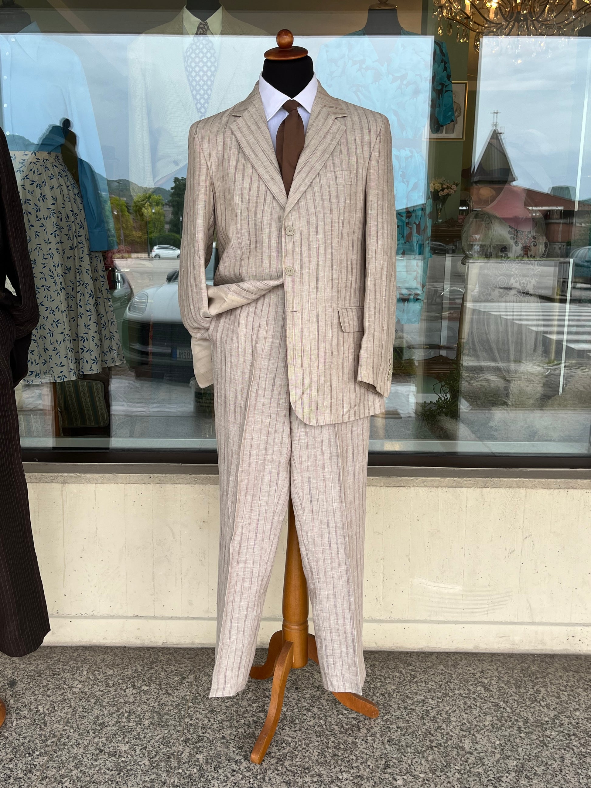 Il tessuto è un 100% puro lino, di colore corda gessato di marrone e salmone.