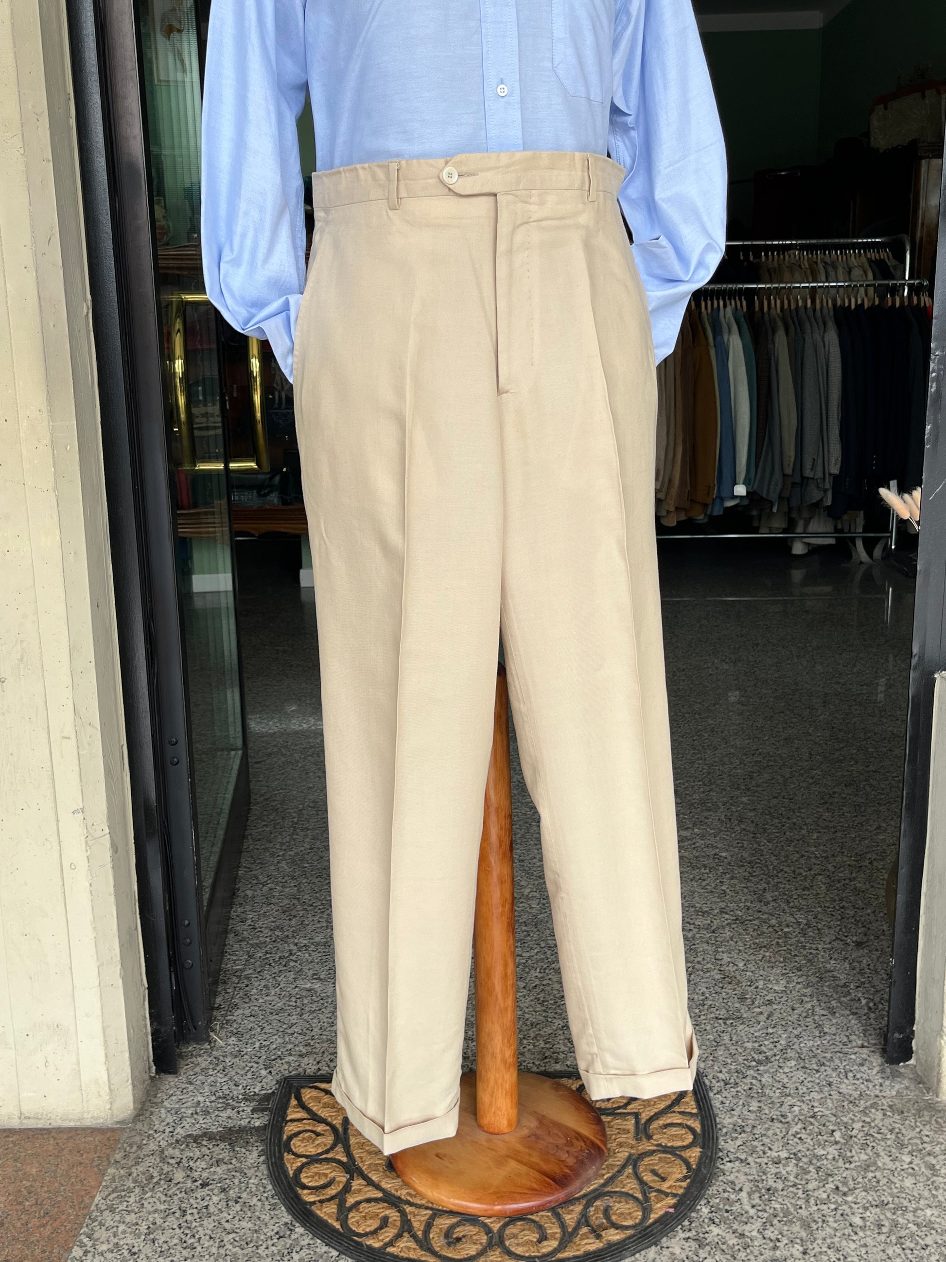 I calzoni hanno un taglio classico, con vita alta ed un taglio dritto.