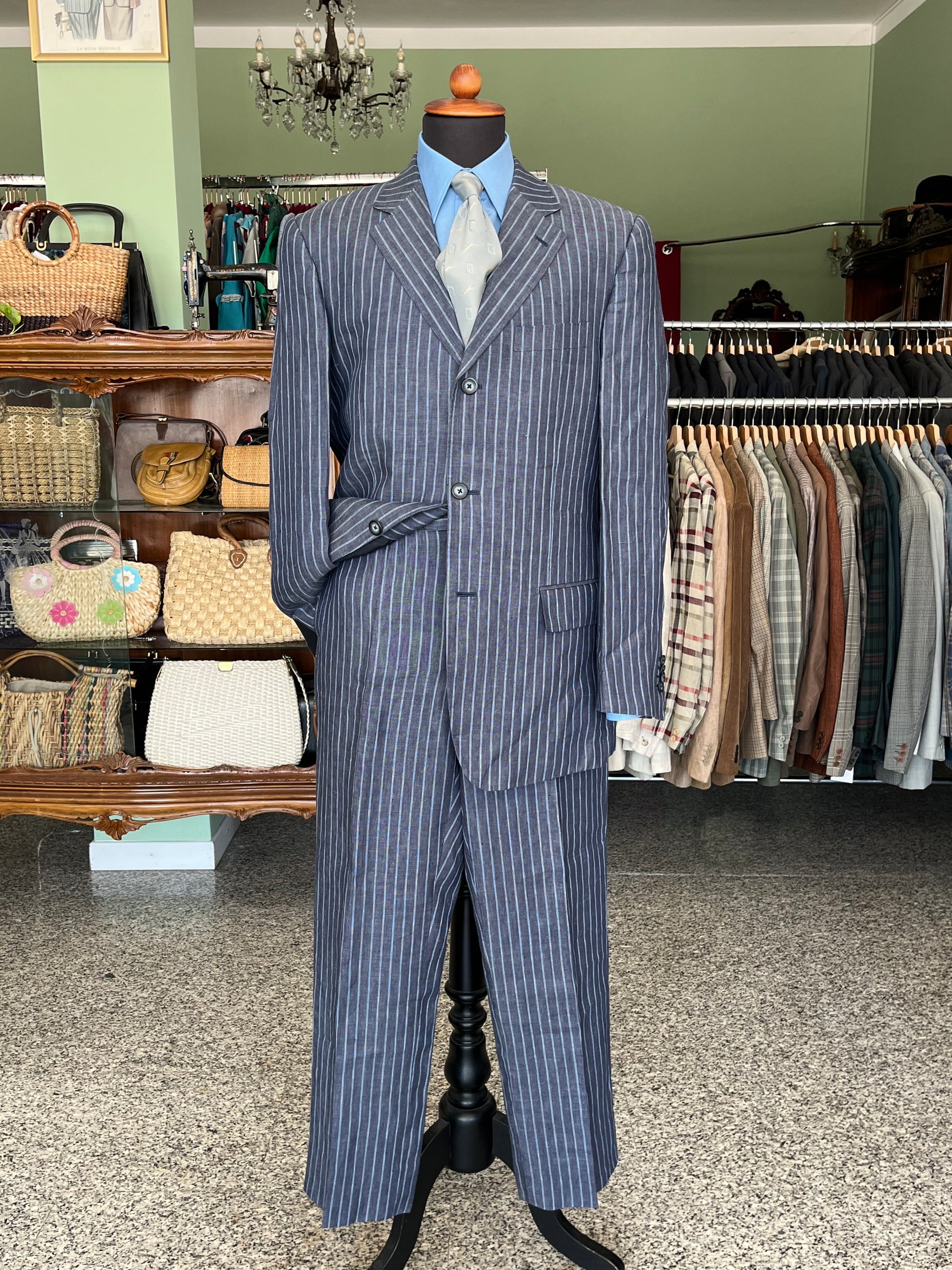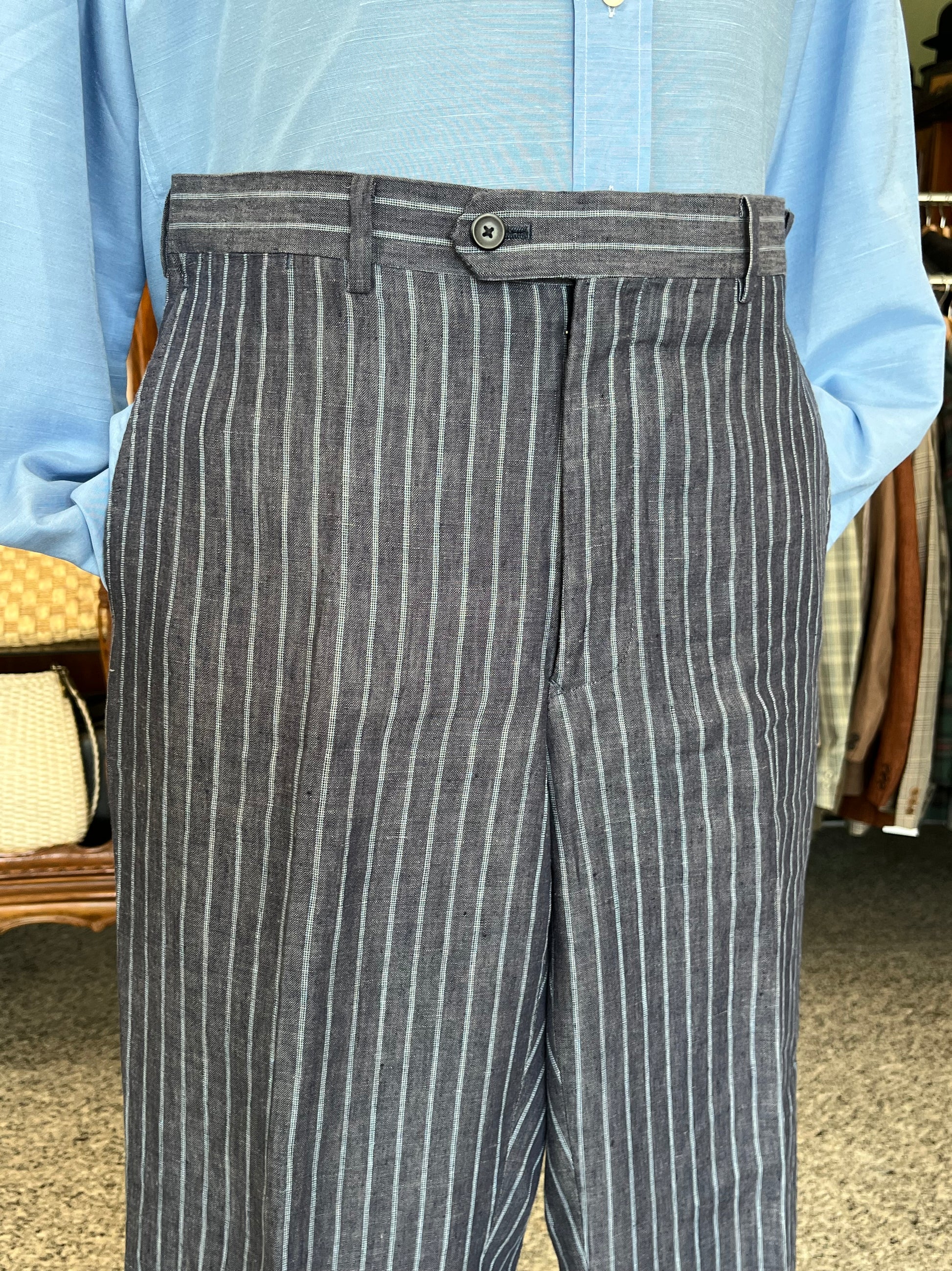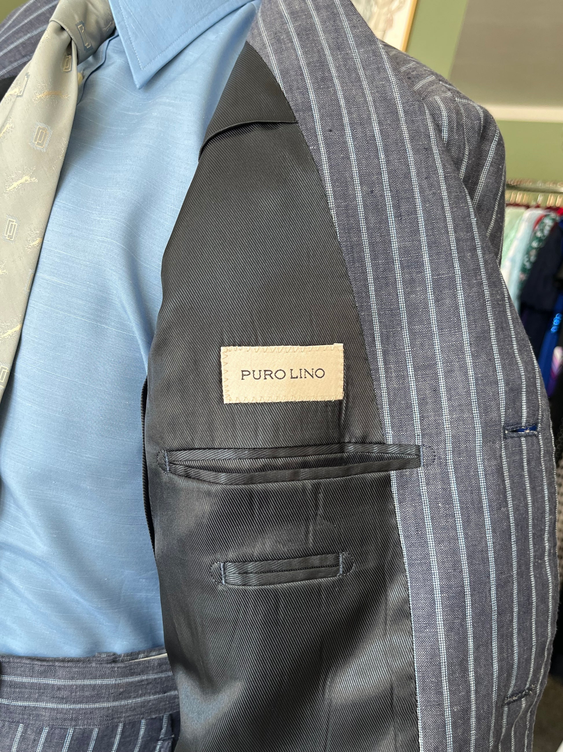 Il tessuto è un 100% puro lino, di color blu gessato di celeste.