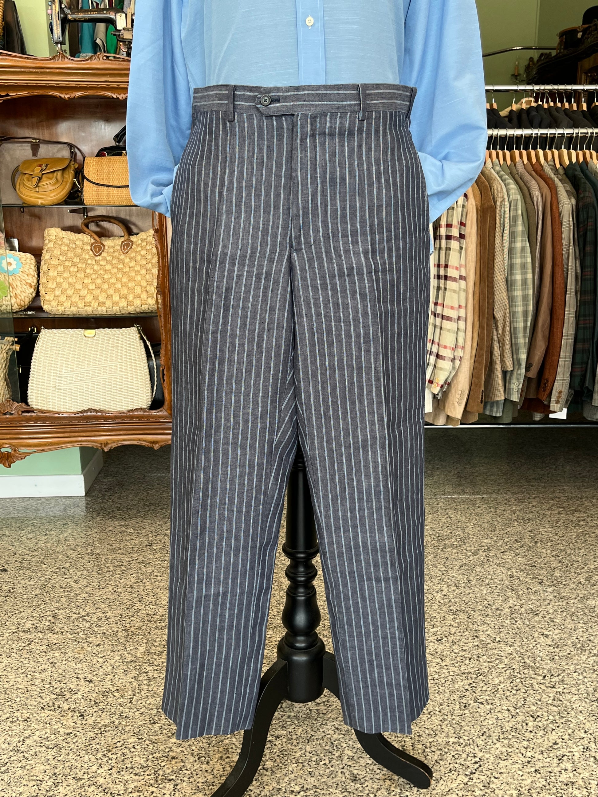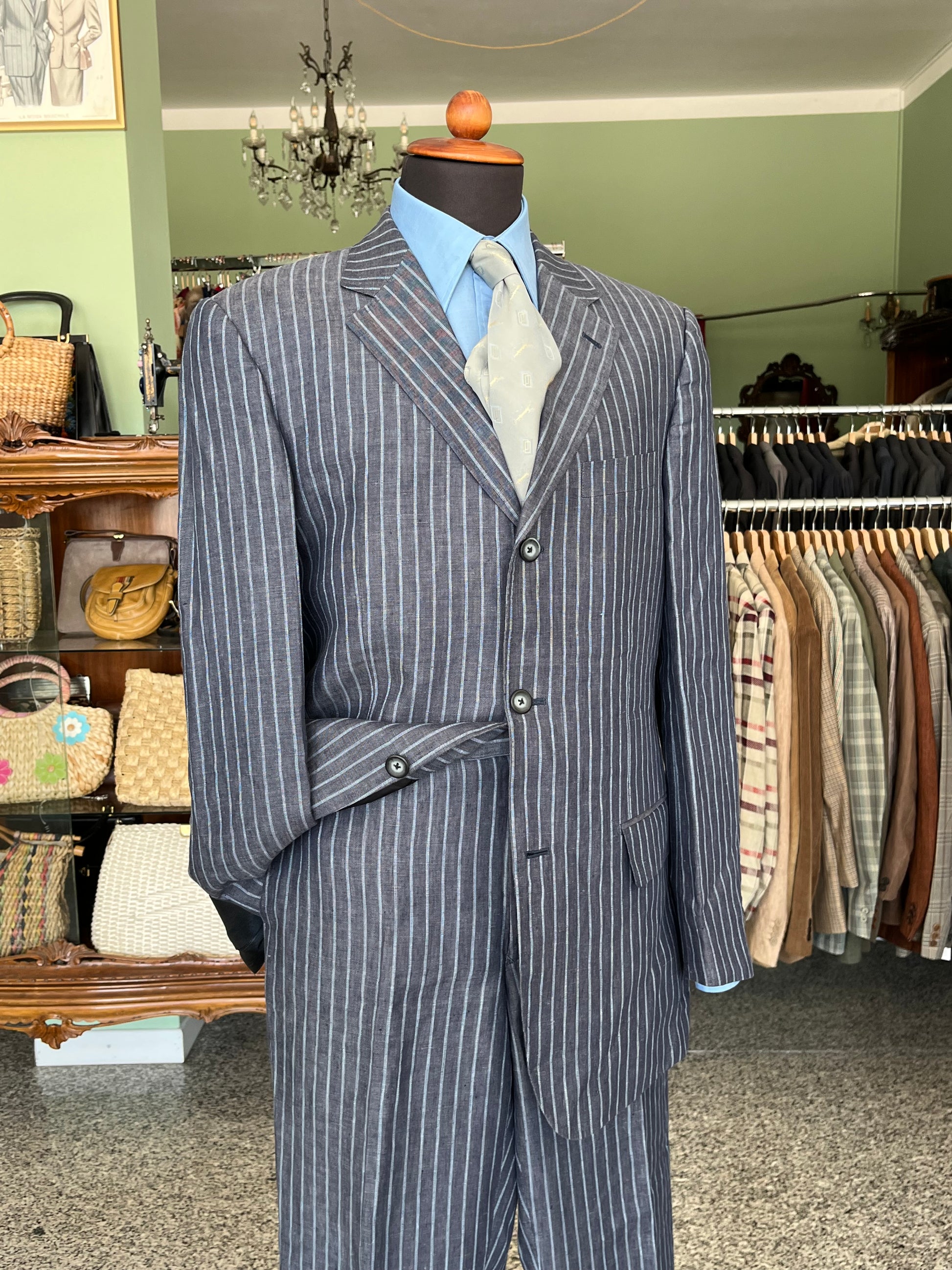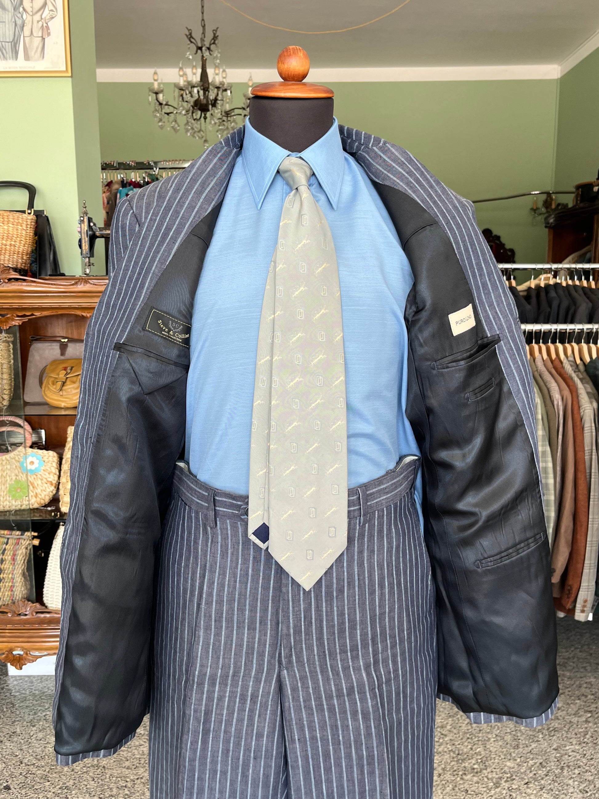 Il tessuto è un 100% puro lino, di color blu gessato di celeste.