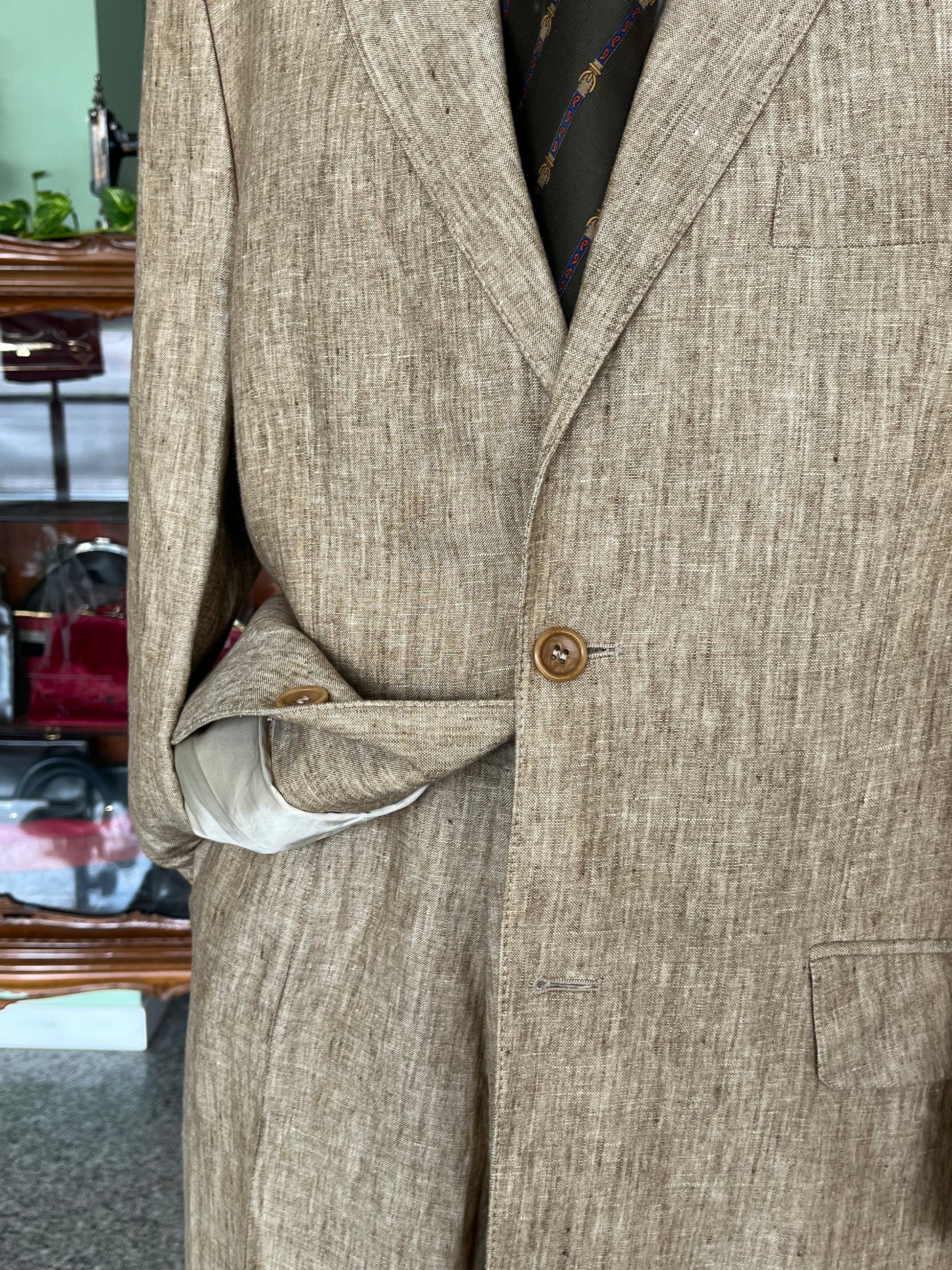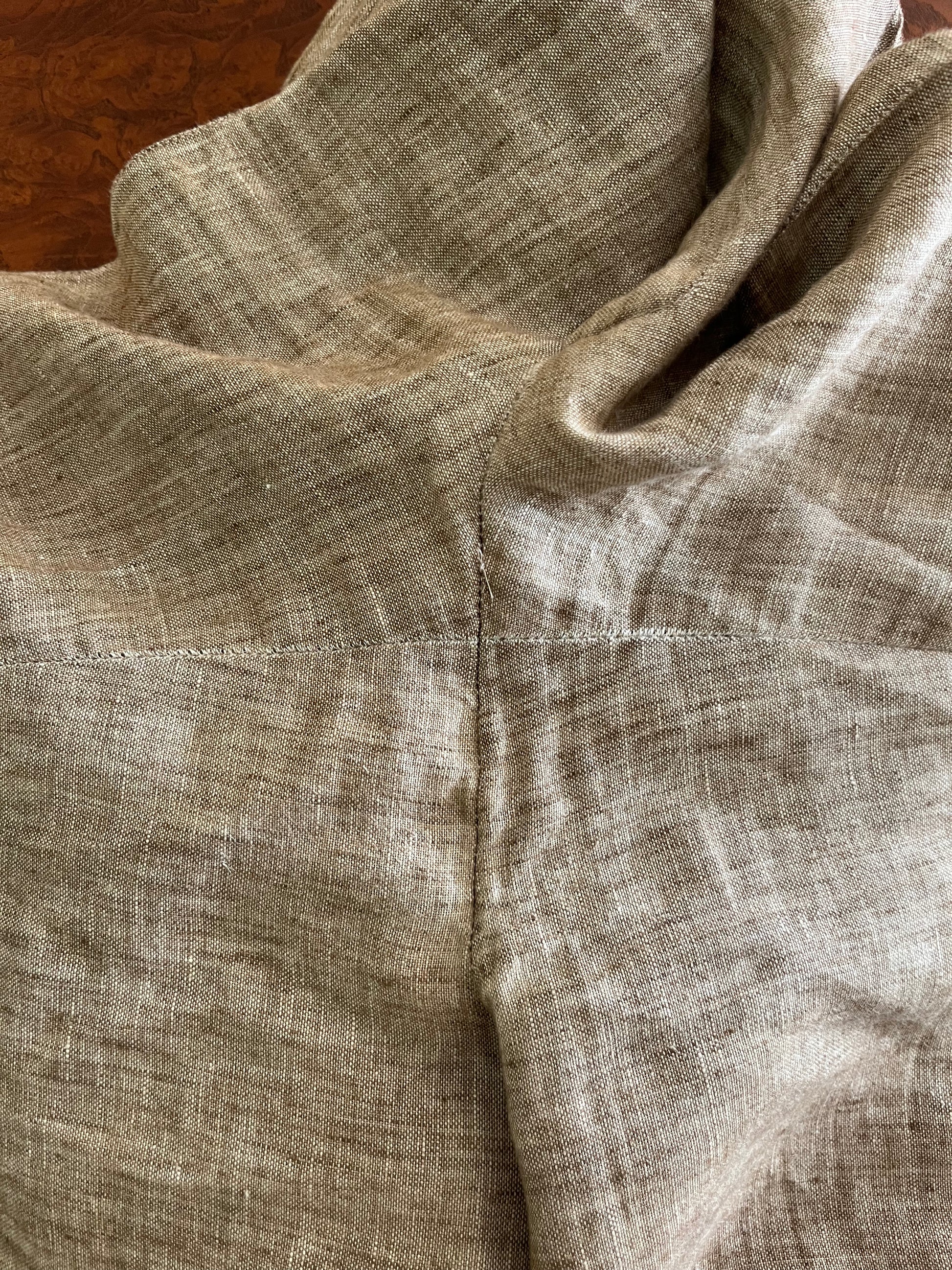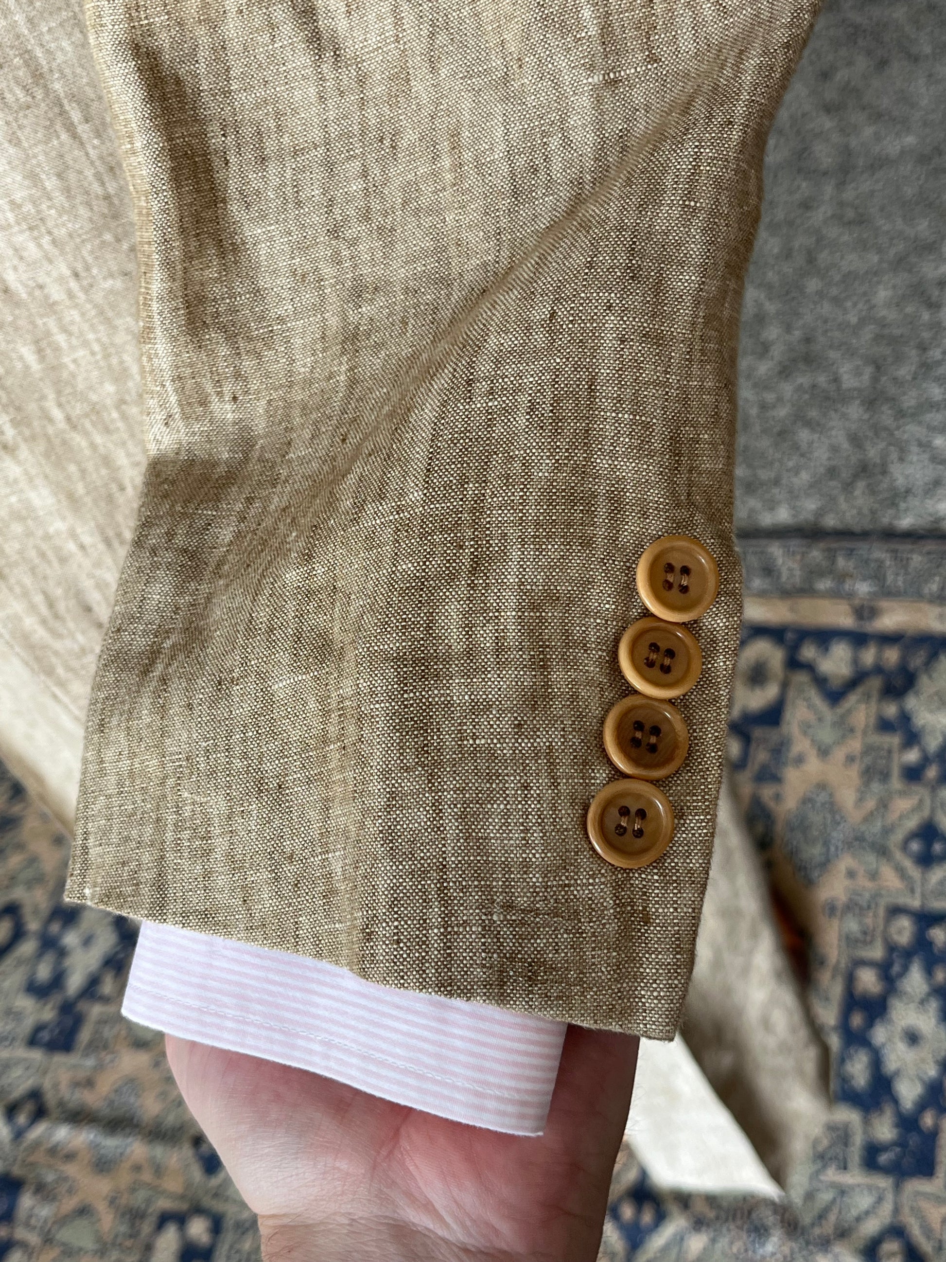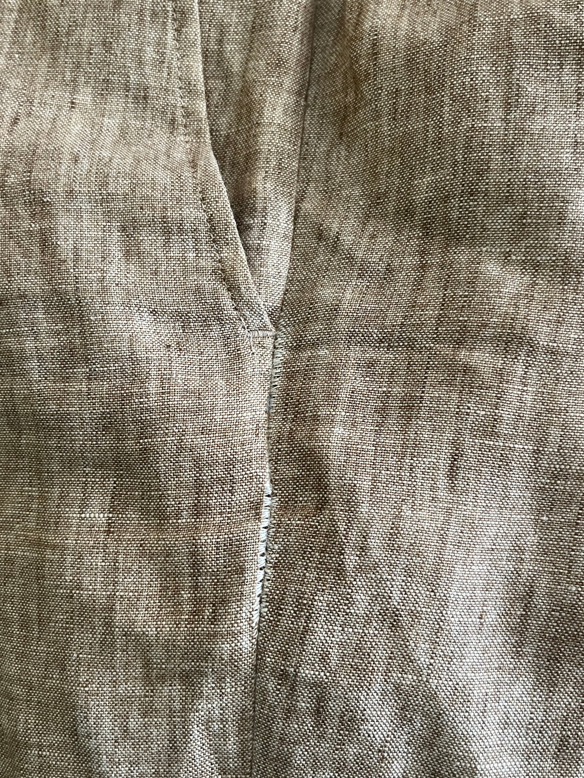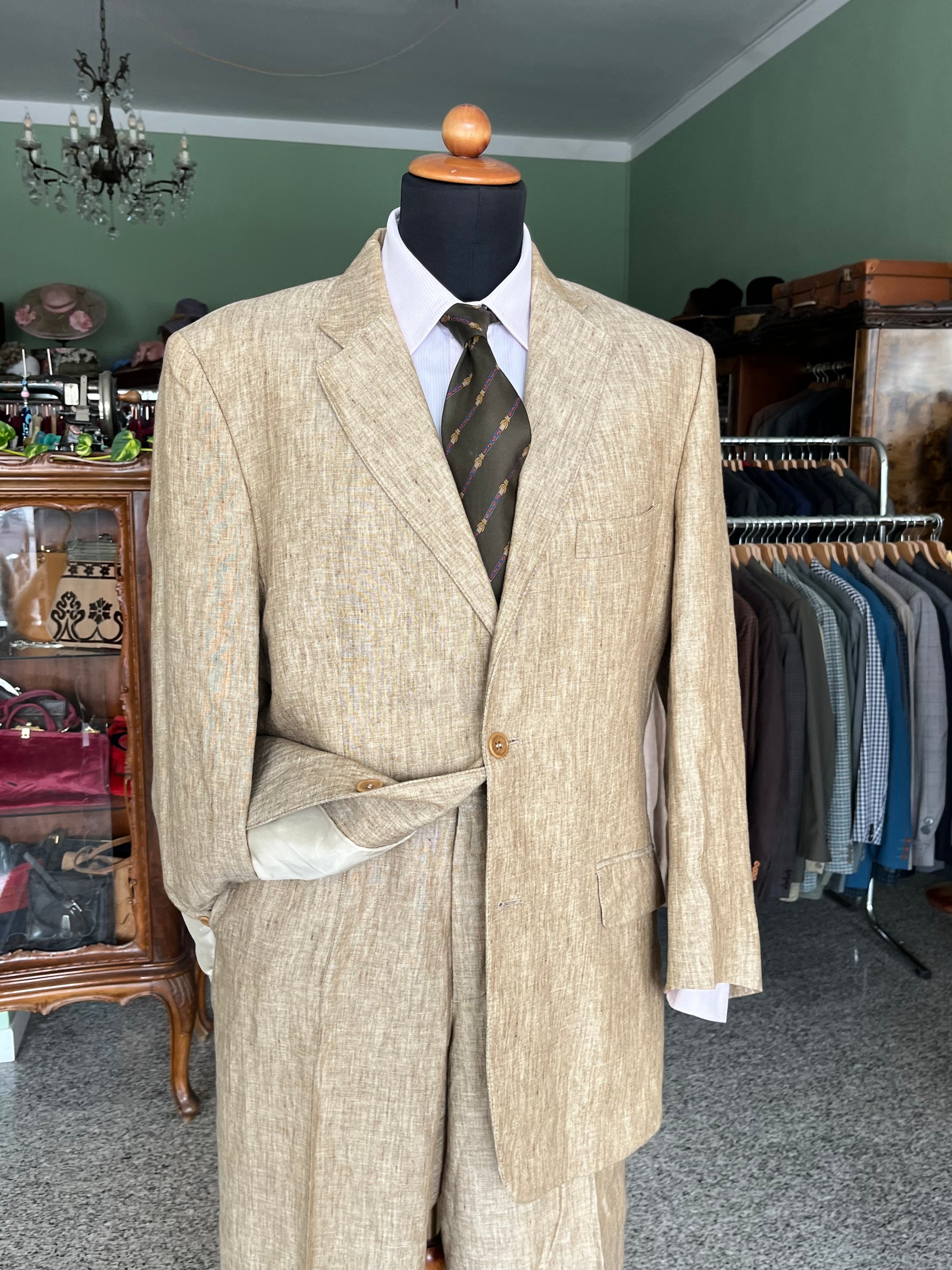 Il tessuto è un 100% puro lino, di colore beige/melange.