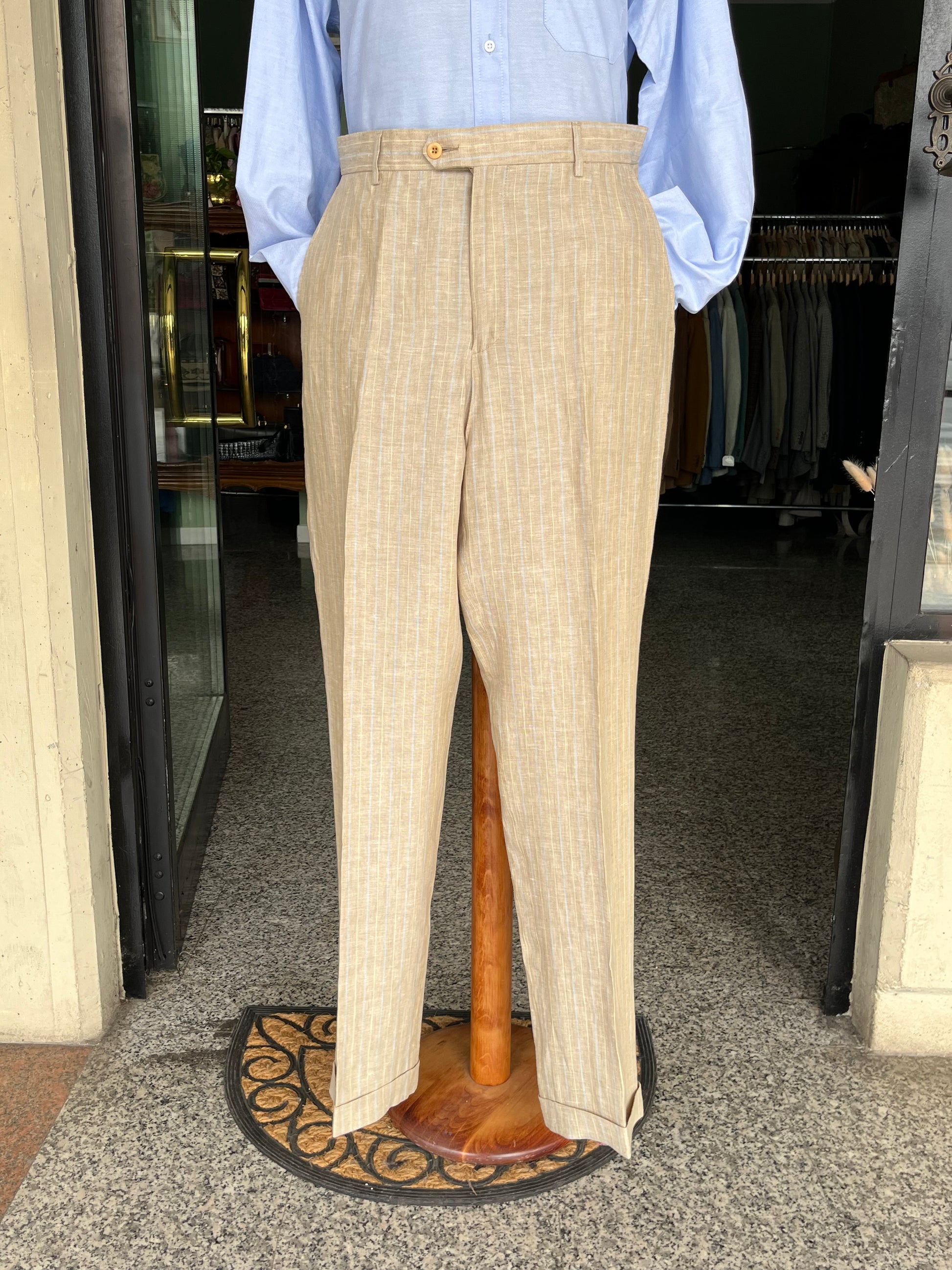 I calzoni hanno un taglio classico, con vita alta ed un taglio dritto.