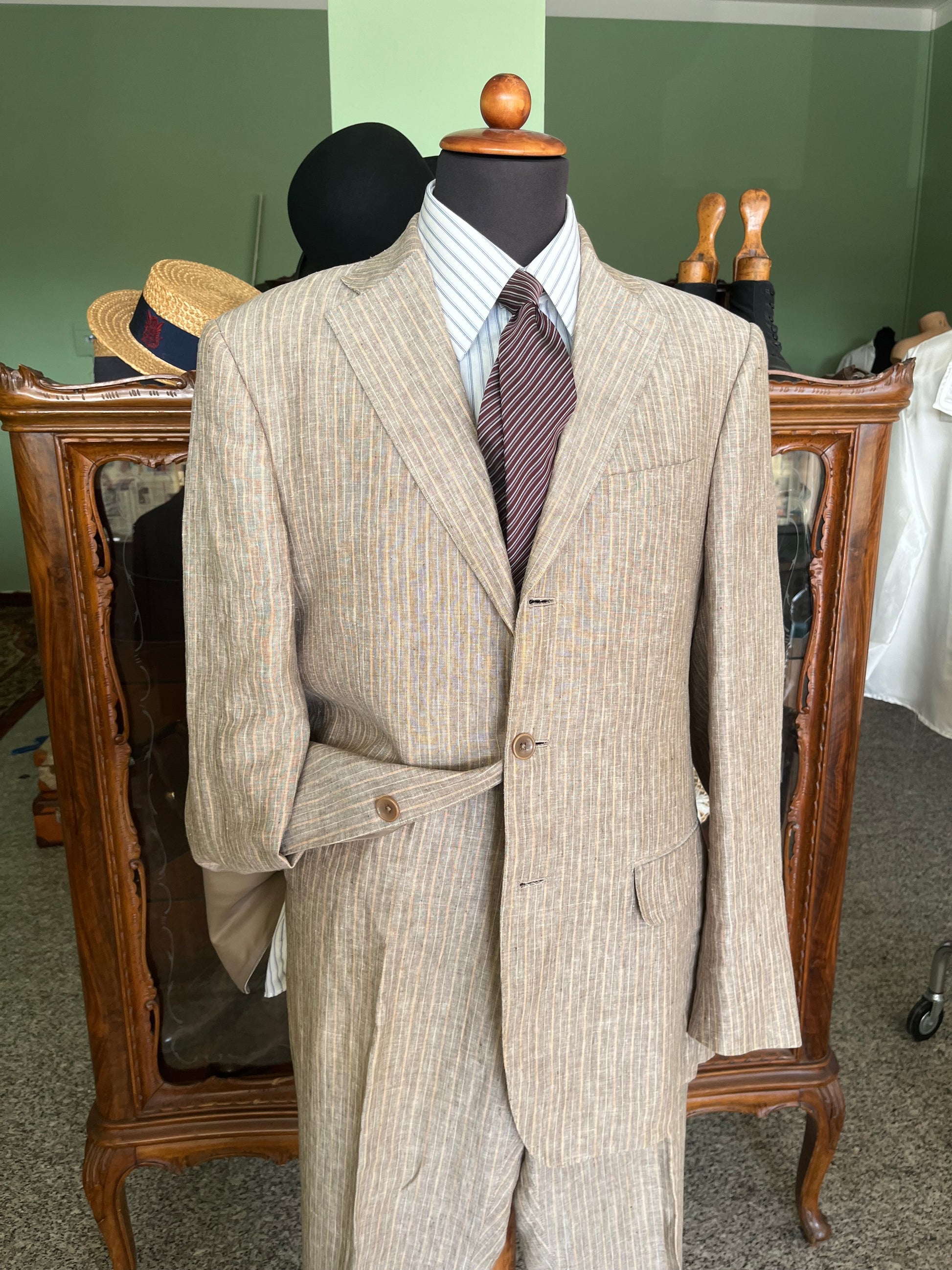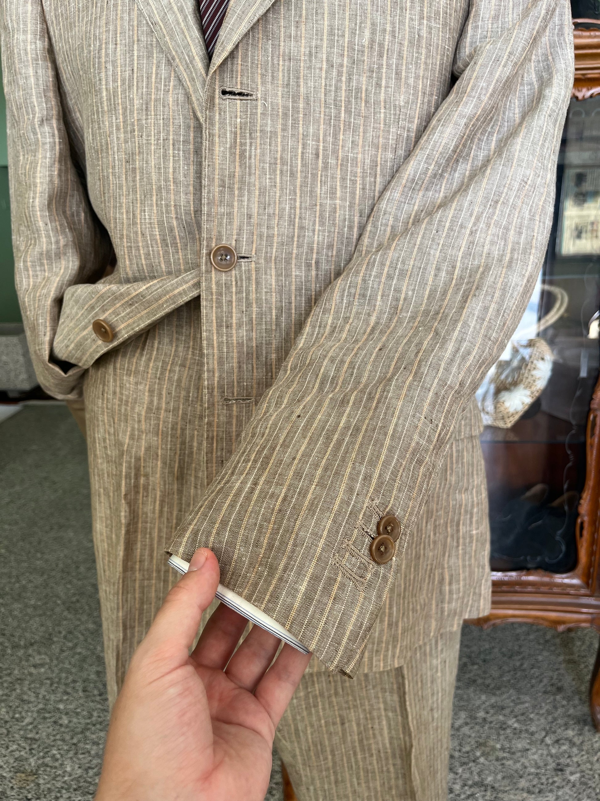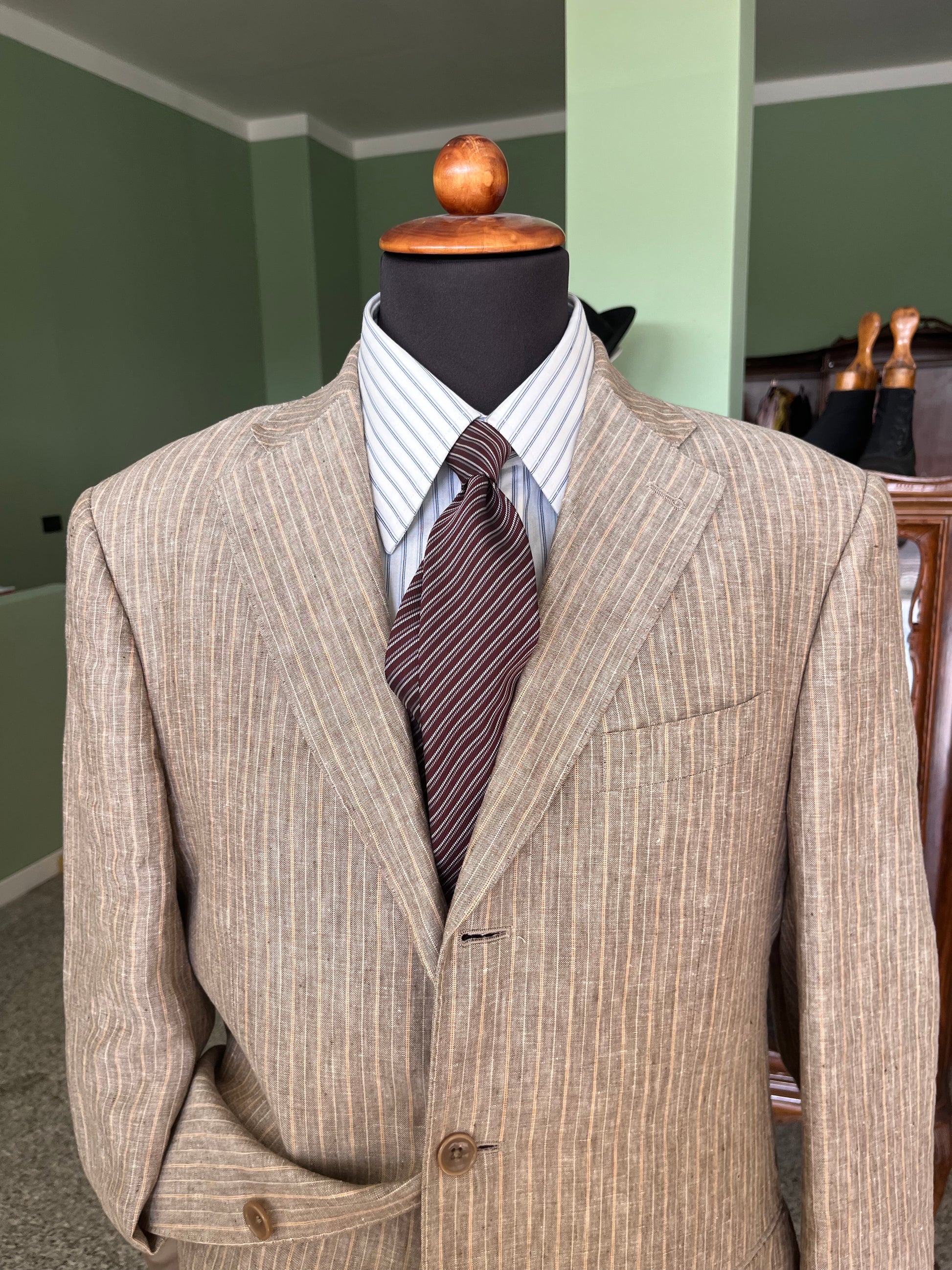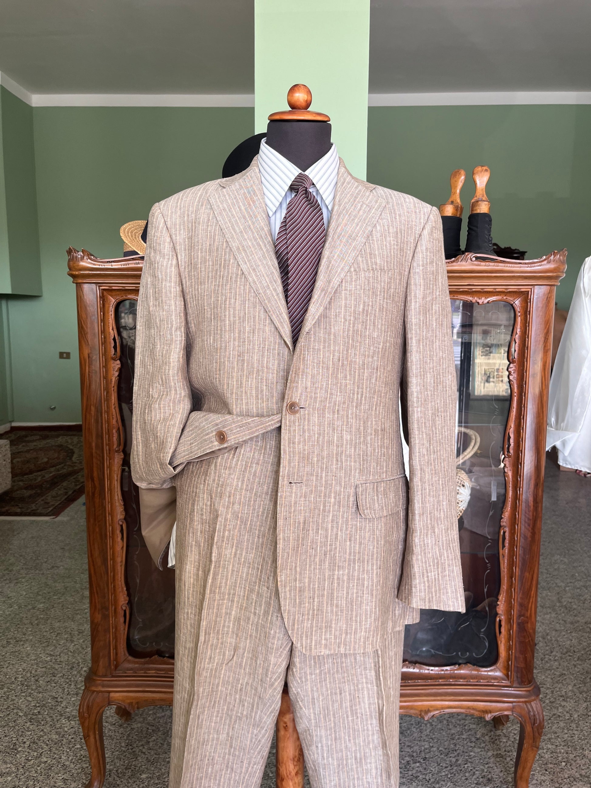 Completo in puro lino gessato