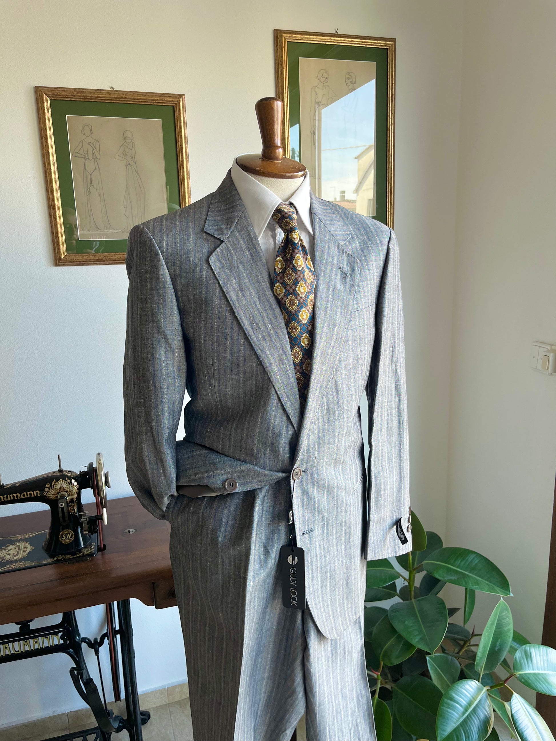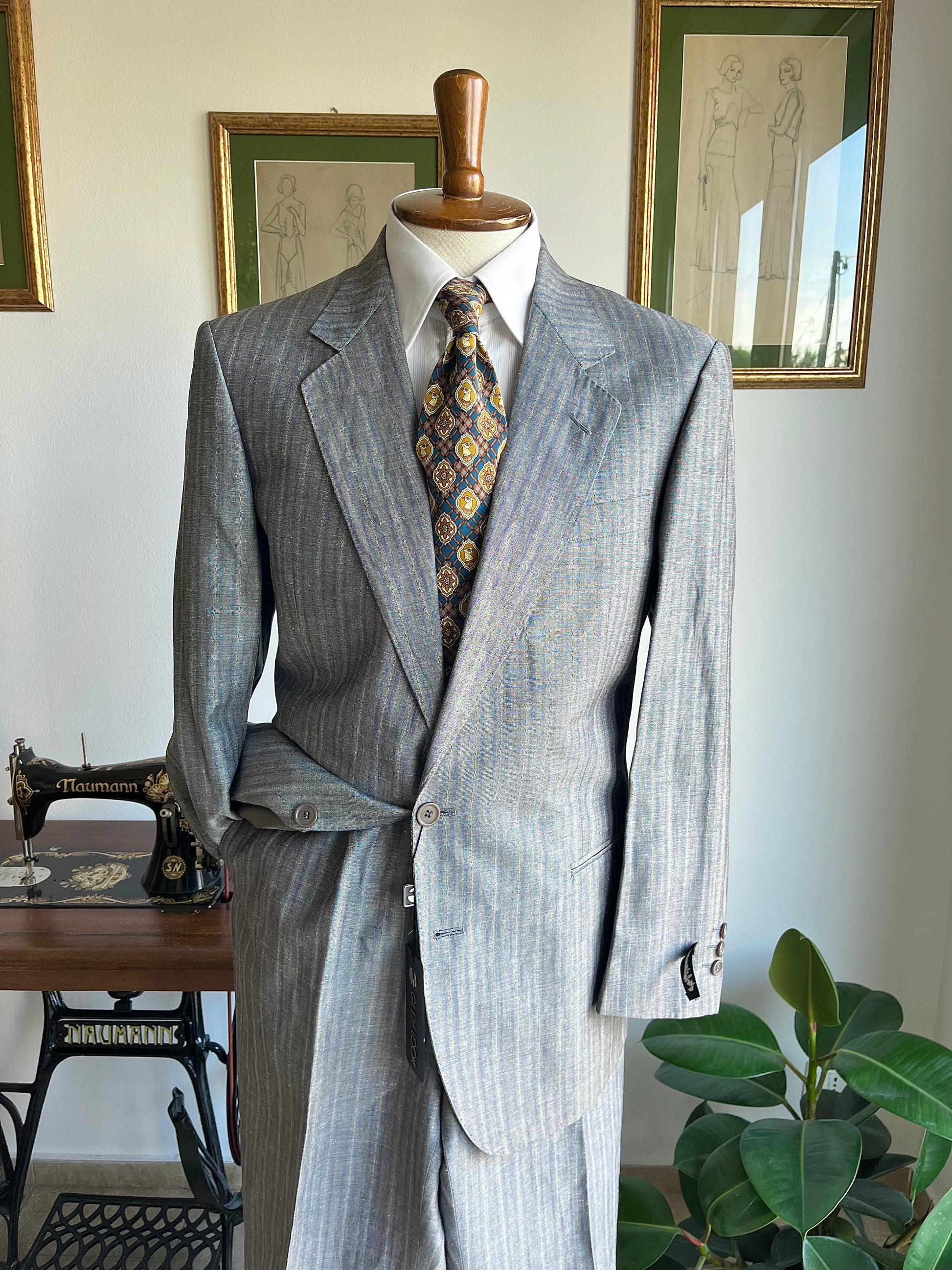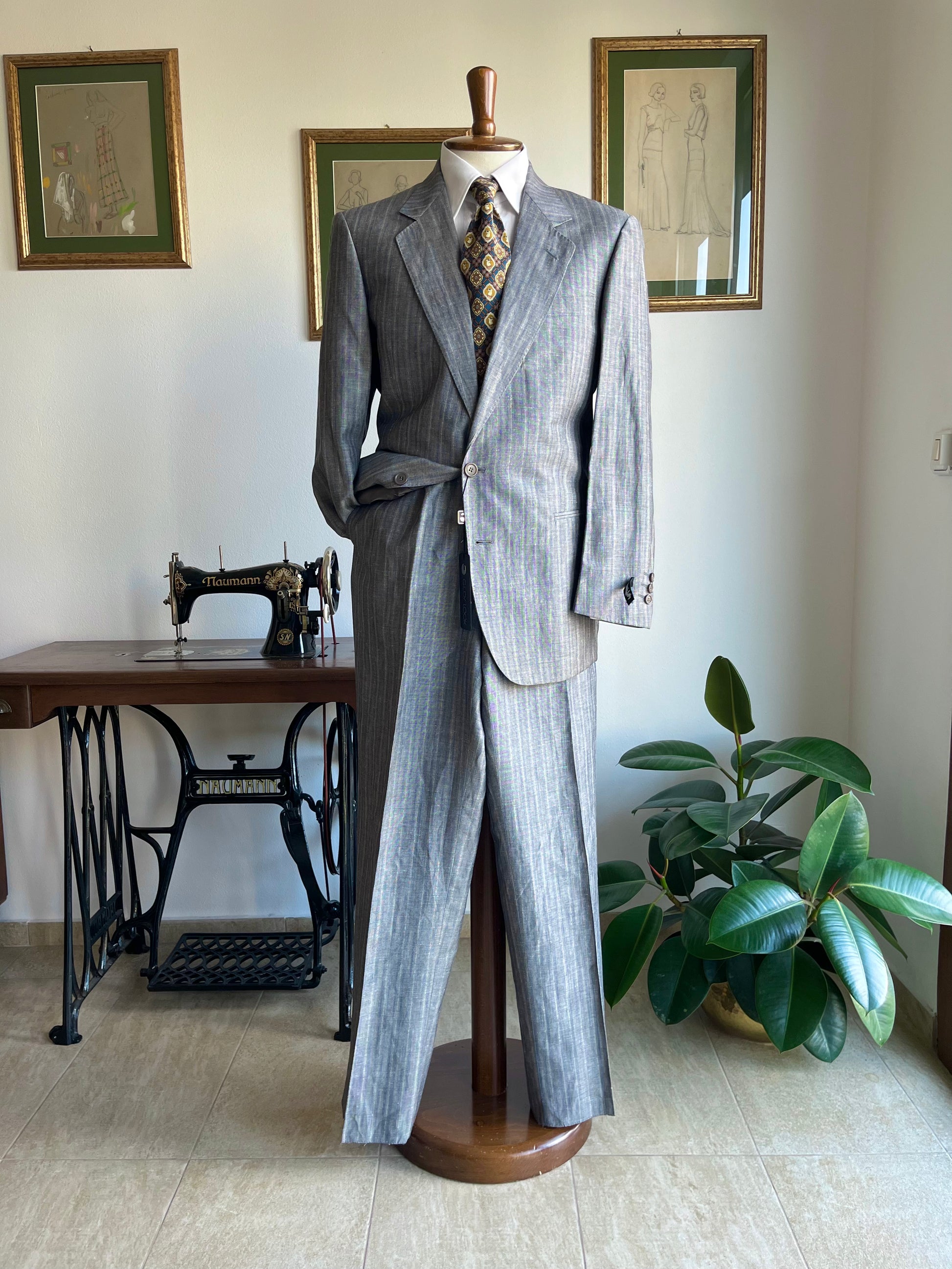 Completo degli anni ‘90, in misto lino e lana, color grigio gessato.