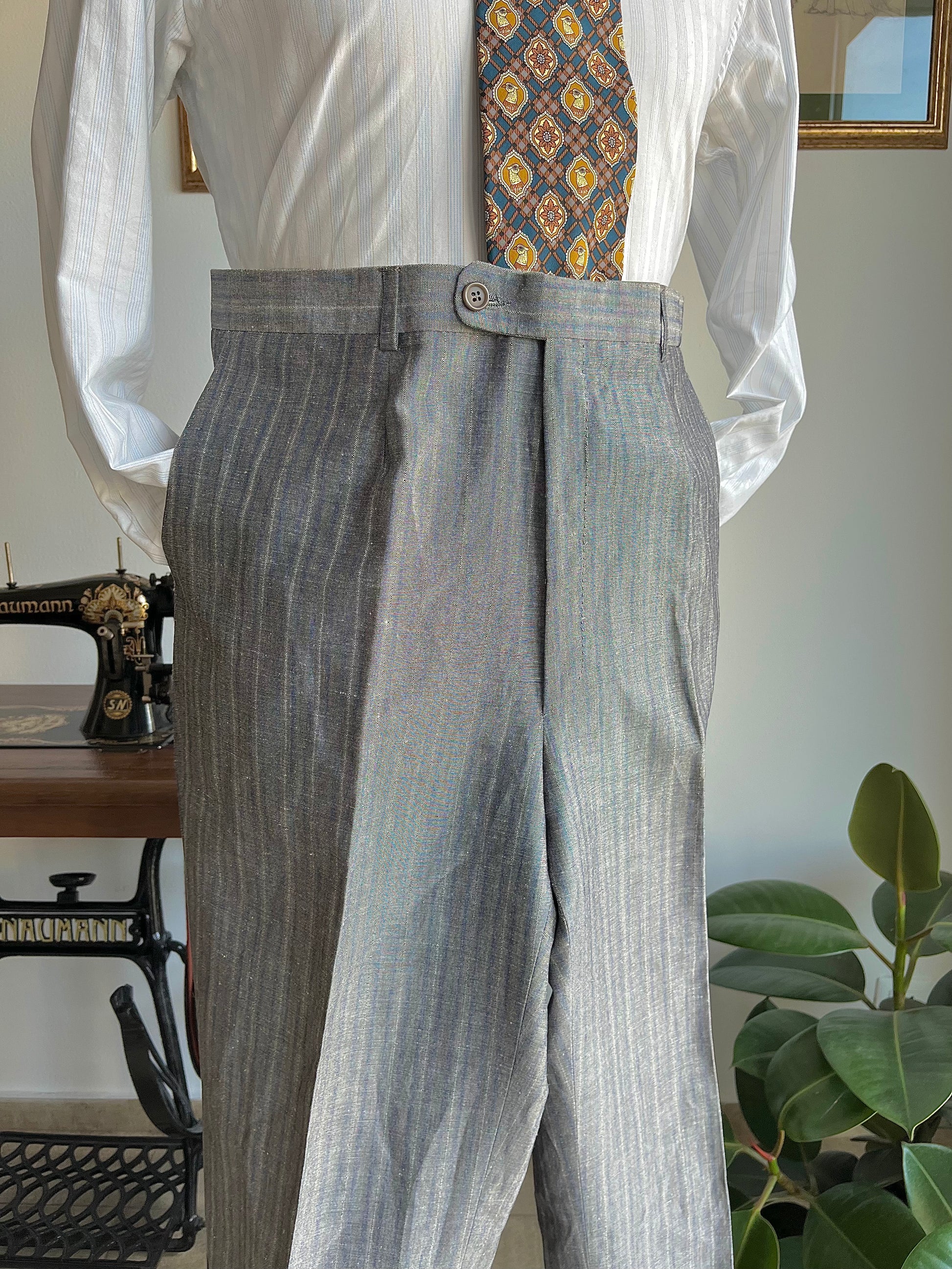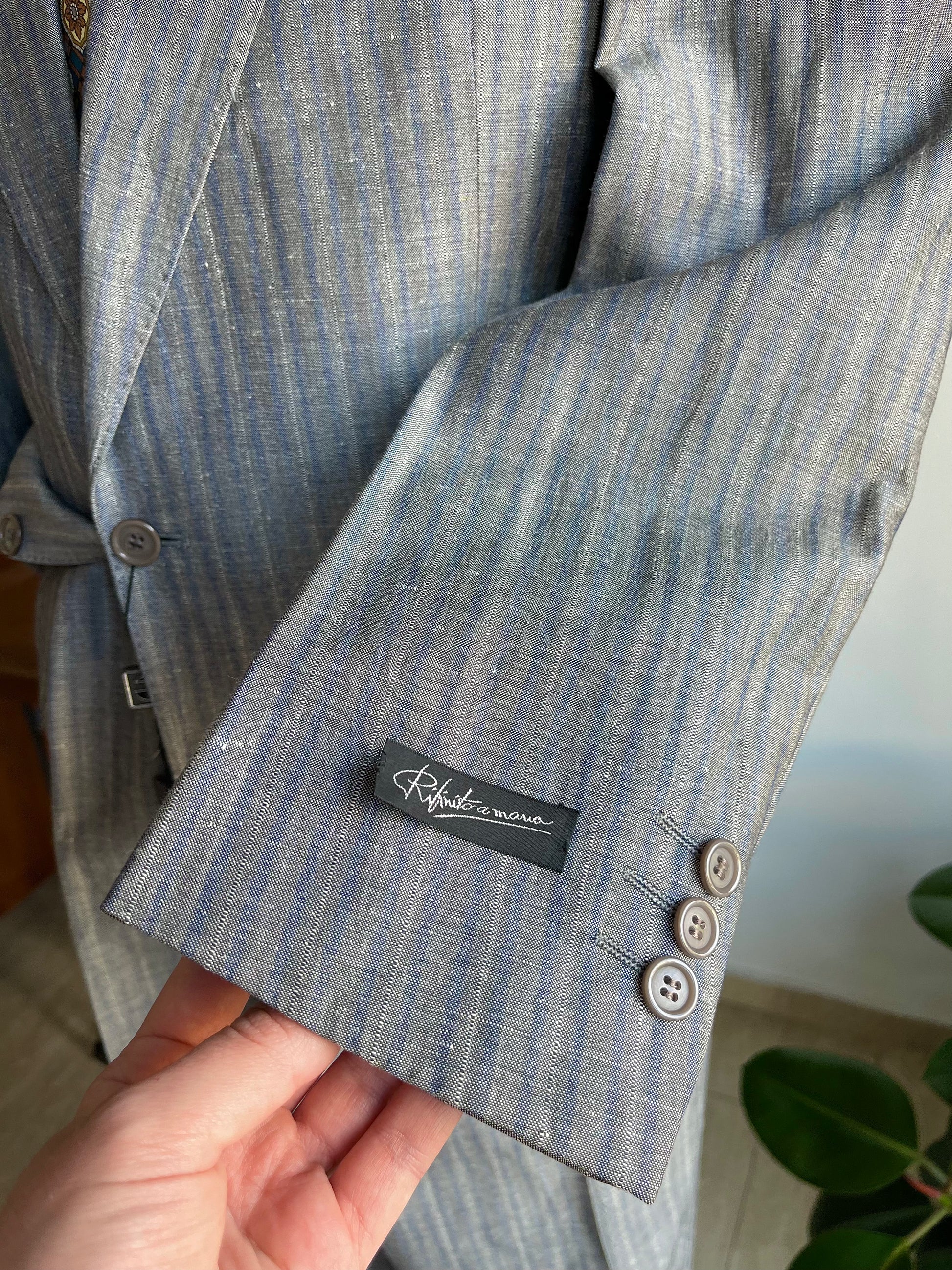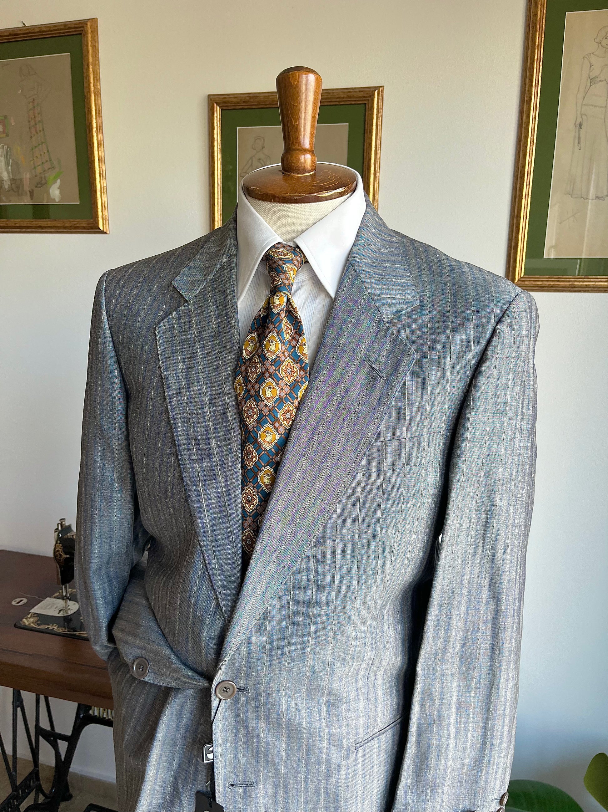Completo degli anni ‘90, in misto lino e lana, color grigio gessato.