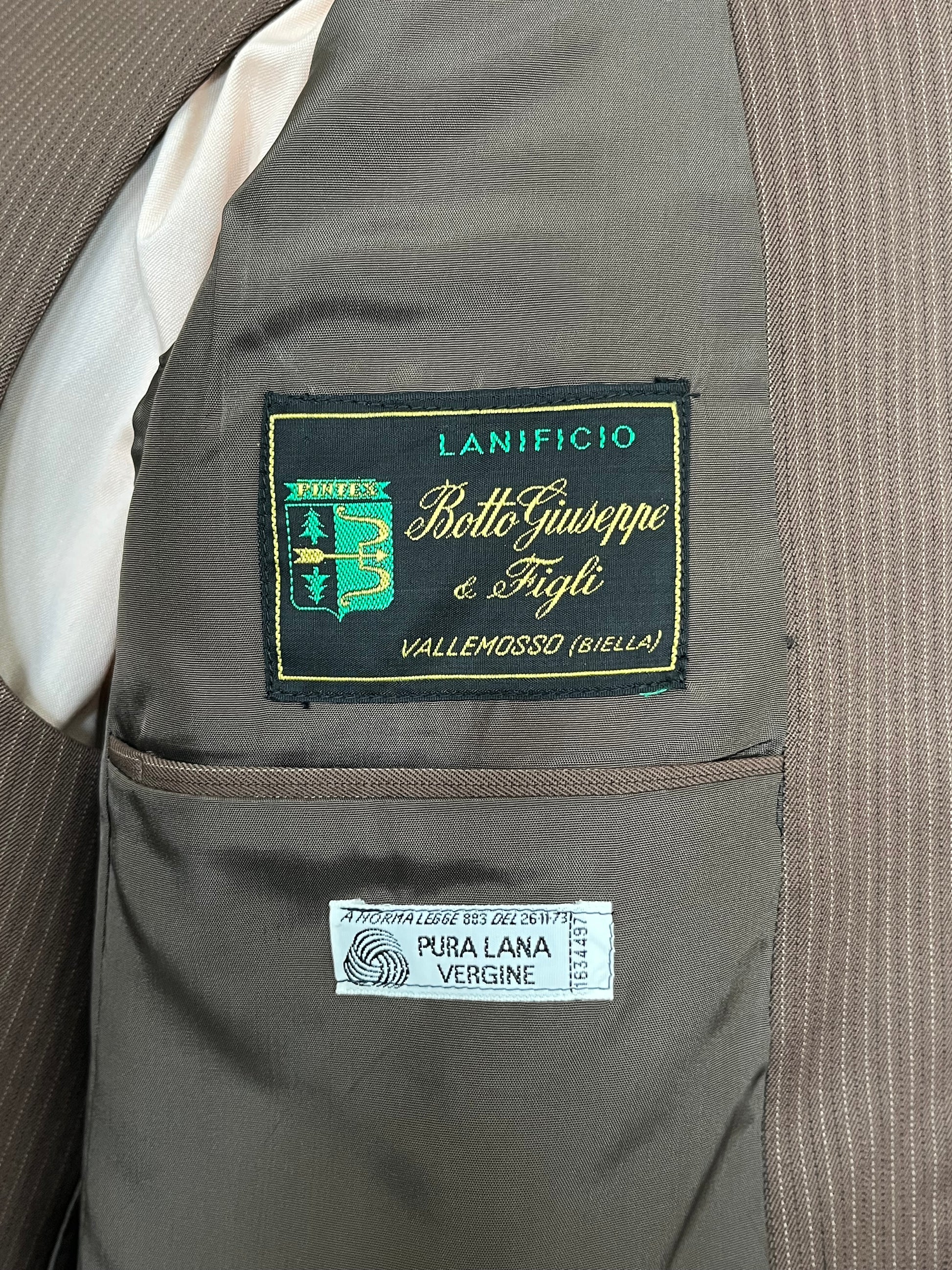 Il tessuto è 100% lana di Botto Giuseppe e figli, di color cacao gessato.
