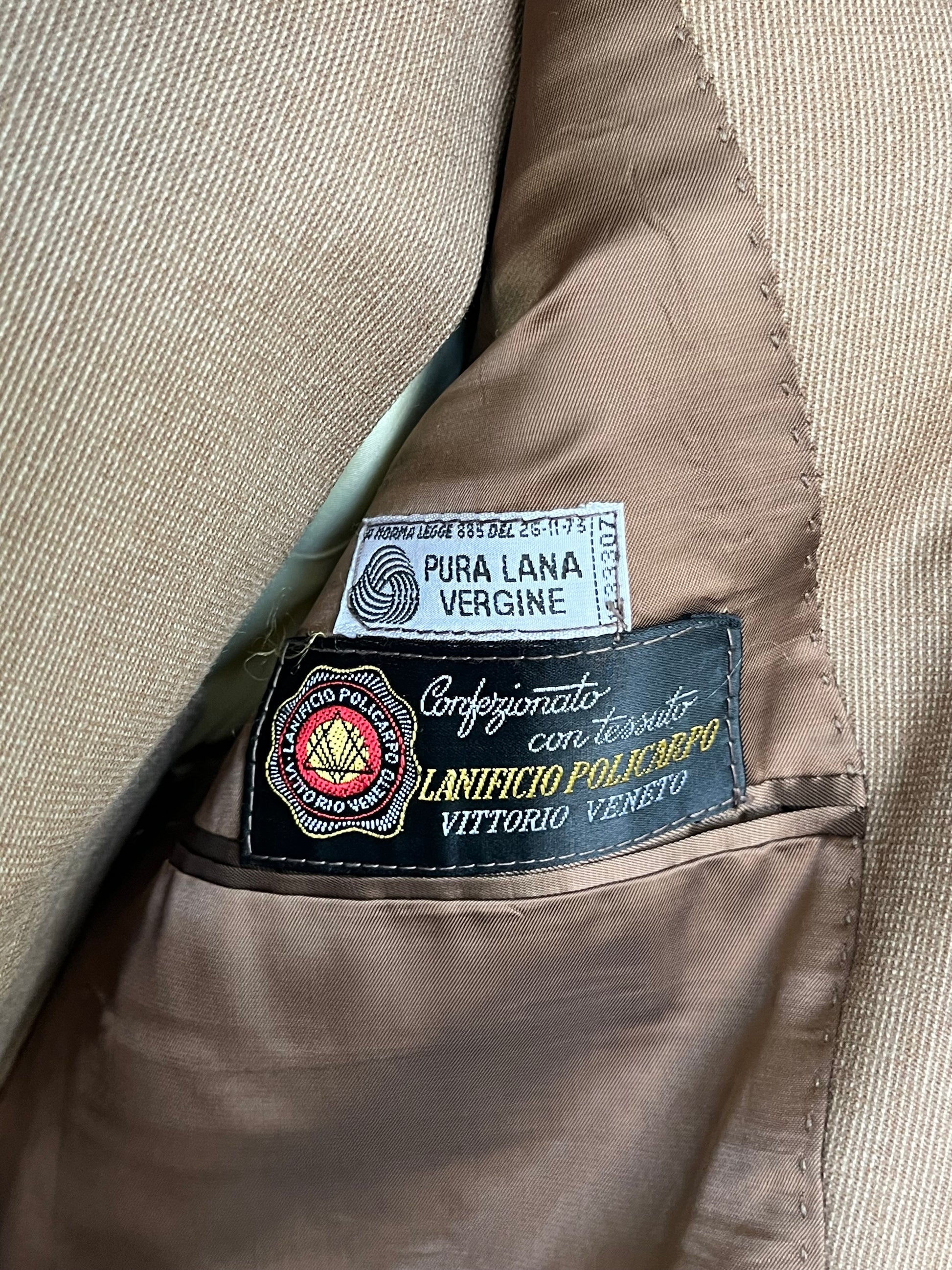 Il tessuto è 100% lana del lanificio Policarpo di Vittorio Veneto, di color beige.