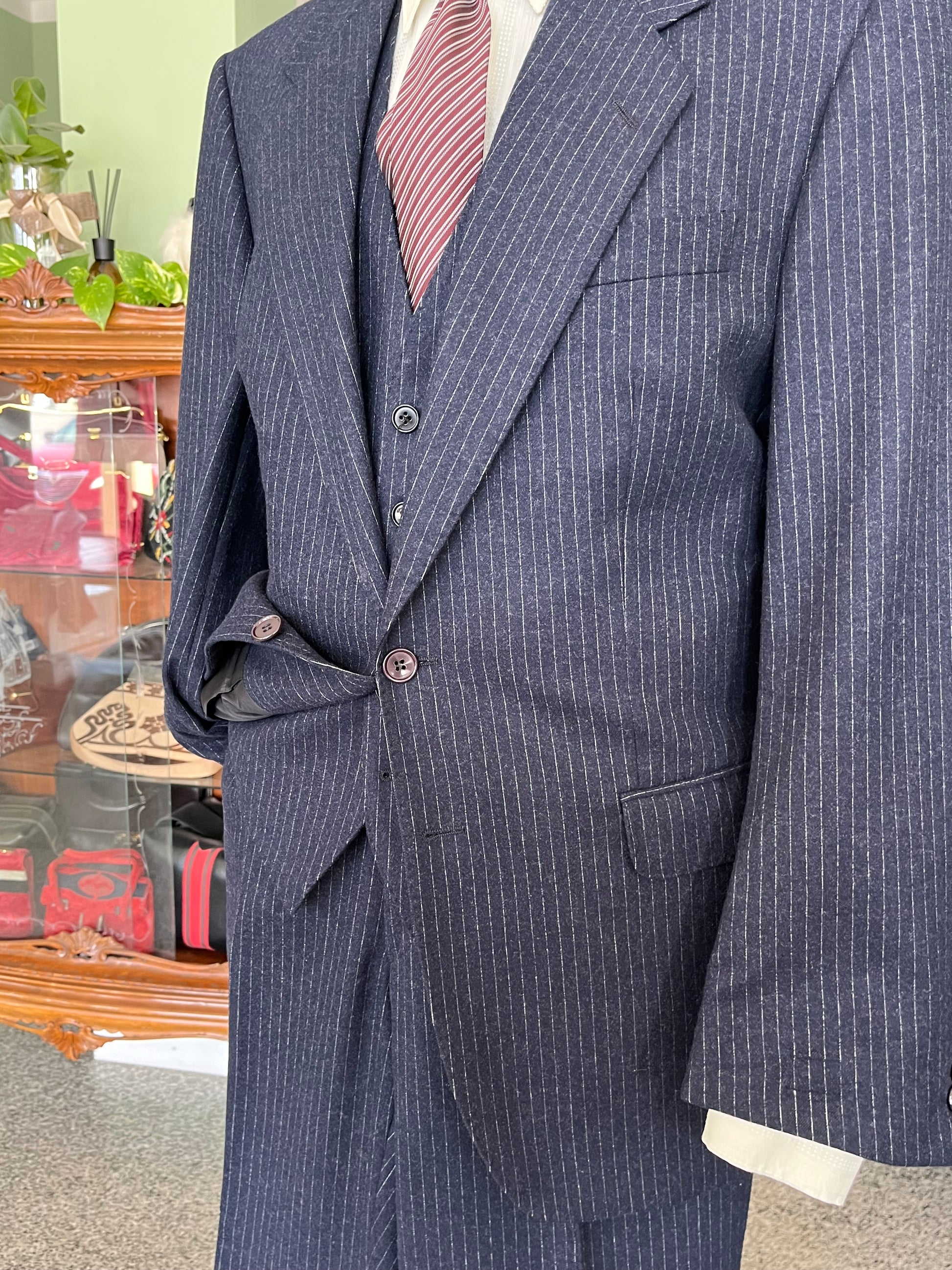Completo tre pezzi anni ‘70, in 100% flanella di lana.