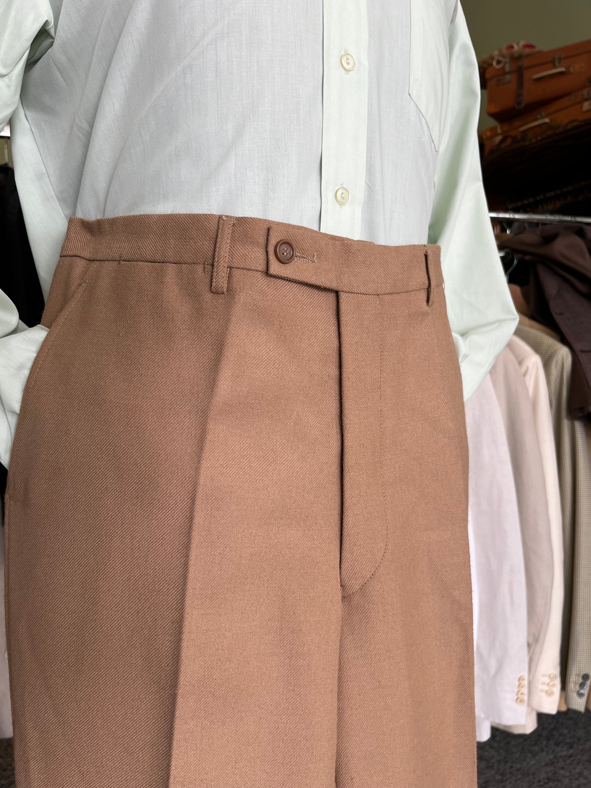 I calzoni hanno un taglio classico, a vita alta e gamba leggermente svasata.