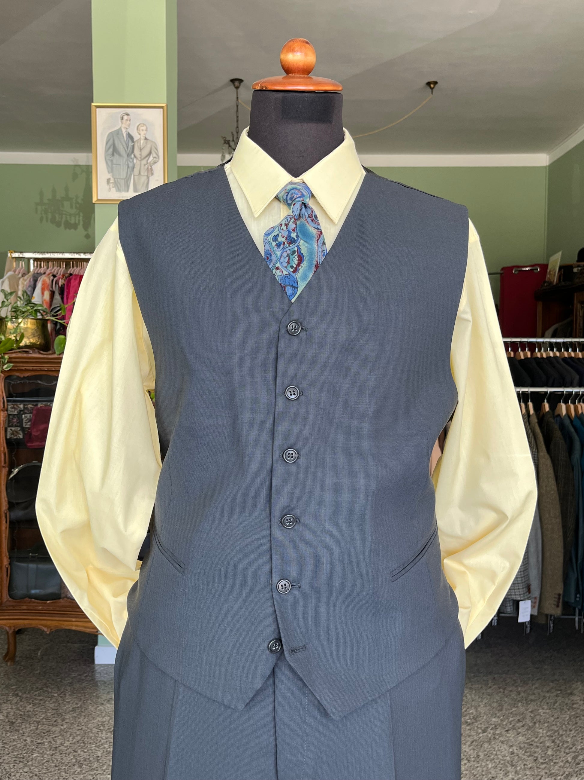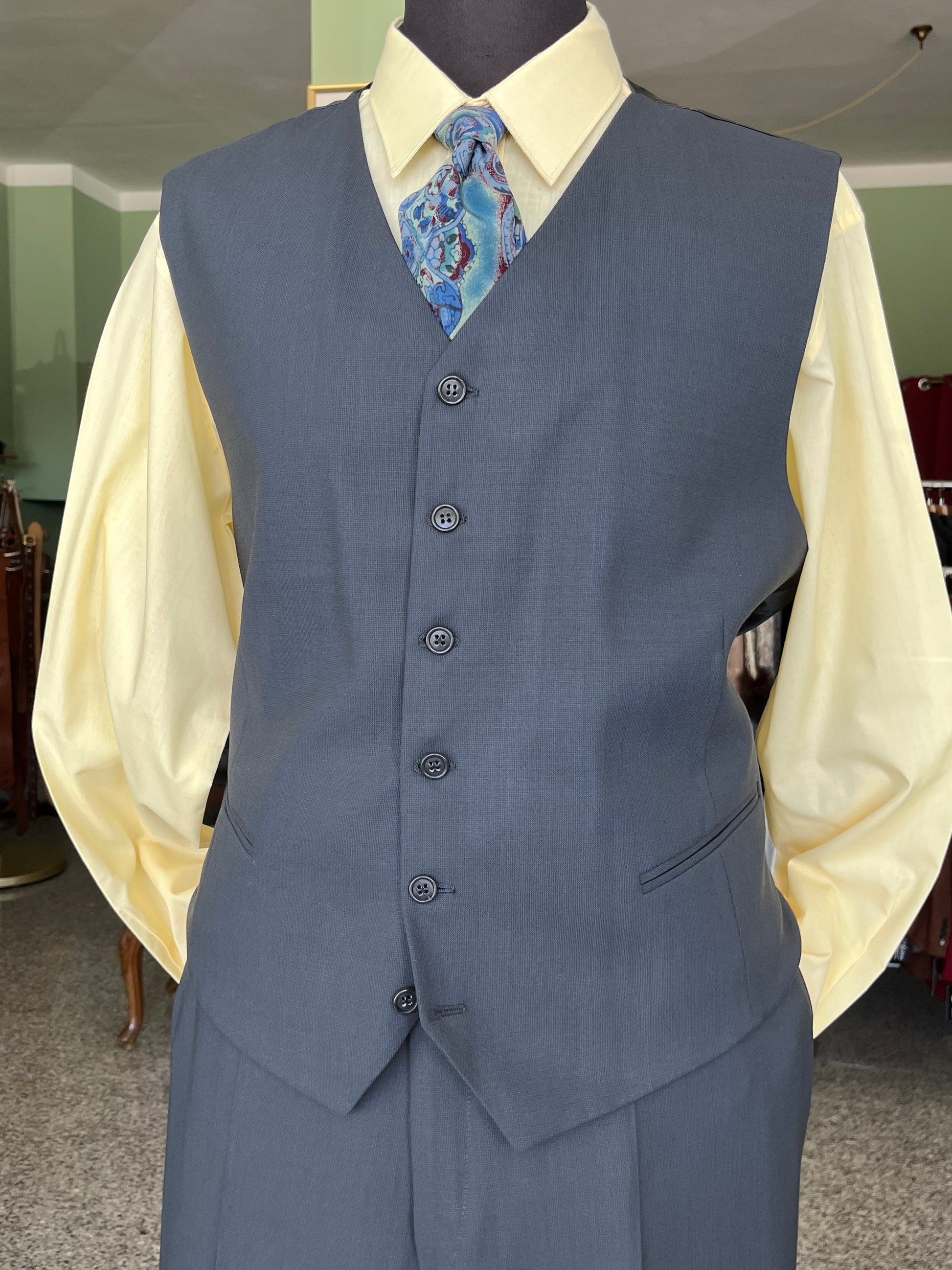 Il panciotto presenta due taschini a filetto e sei bottoni.