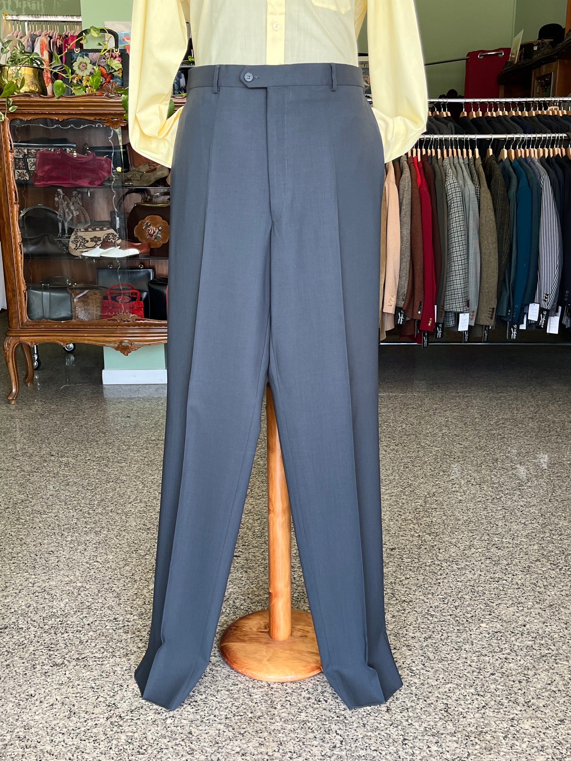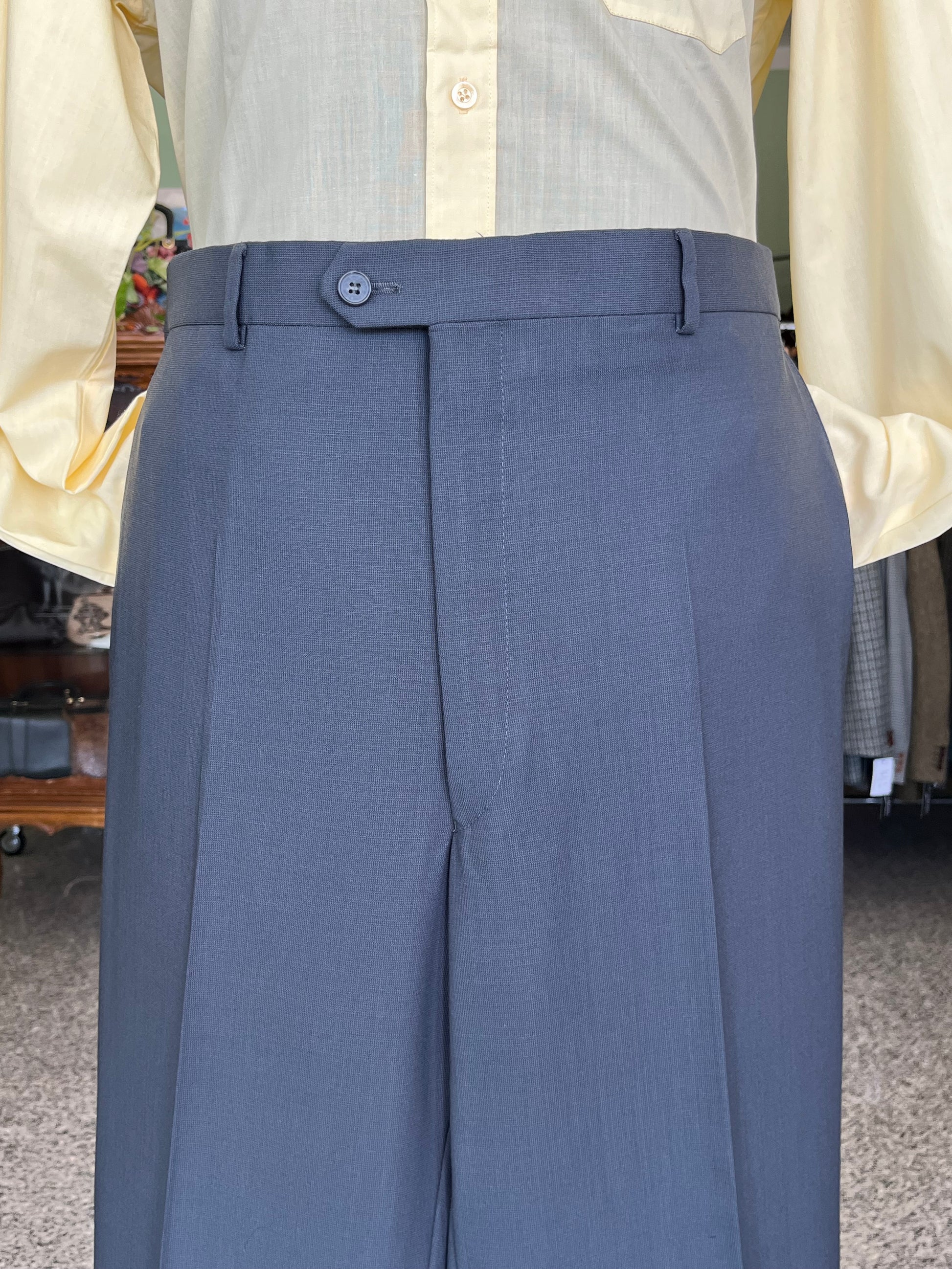 I calzoni hanno un taglio classico, a vita alta e gamba dritta.