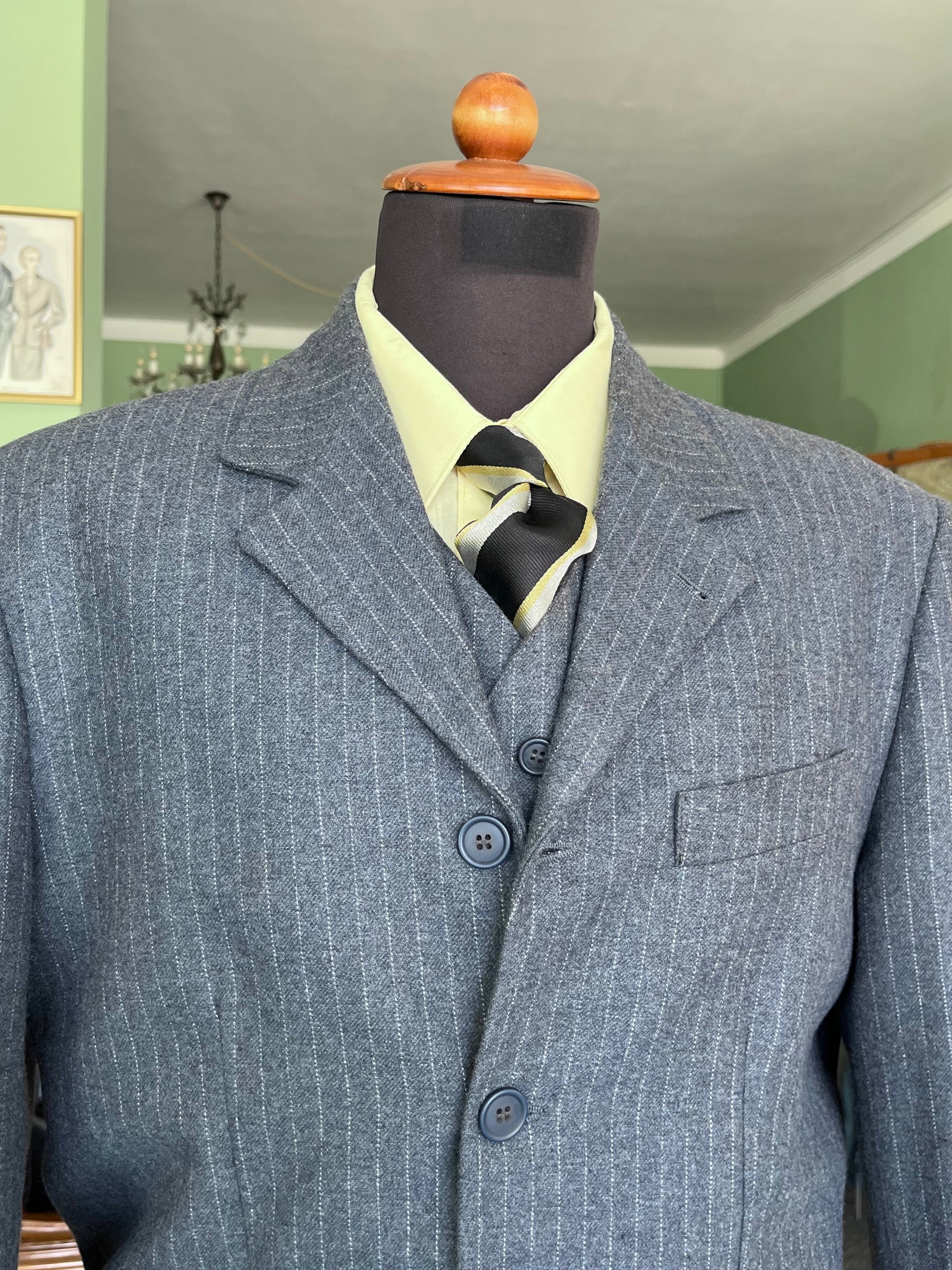Completo tre pezzi anni ‘90, in 100% pura flanella di lana.