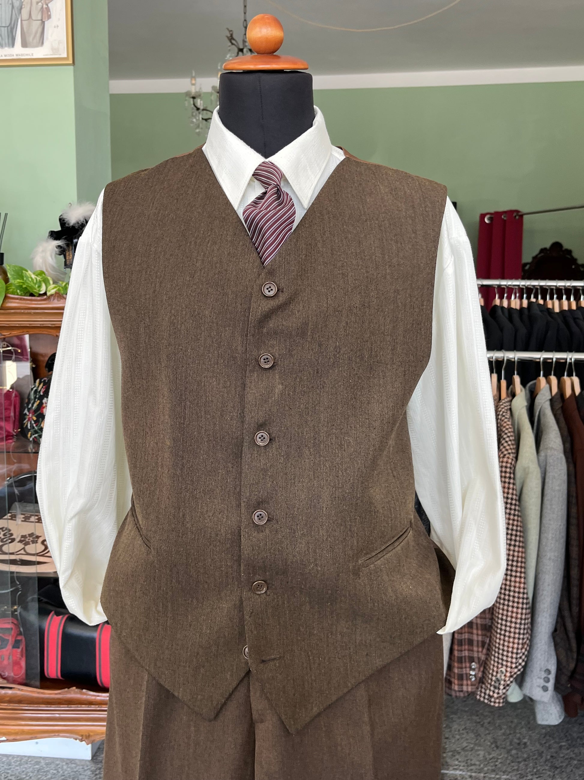 Il panciotto presenta due taschini a filetto e sei bottoni.