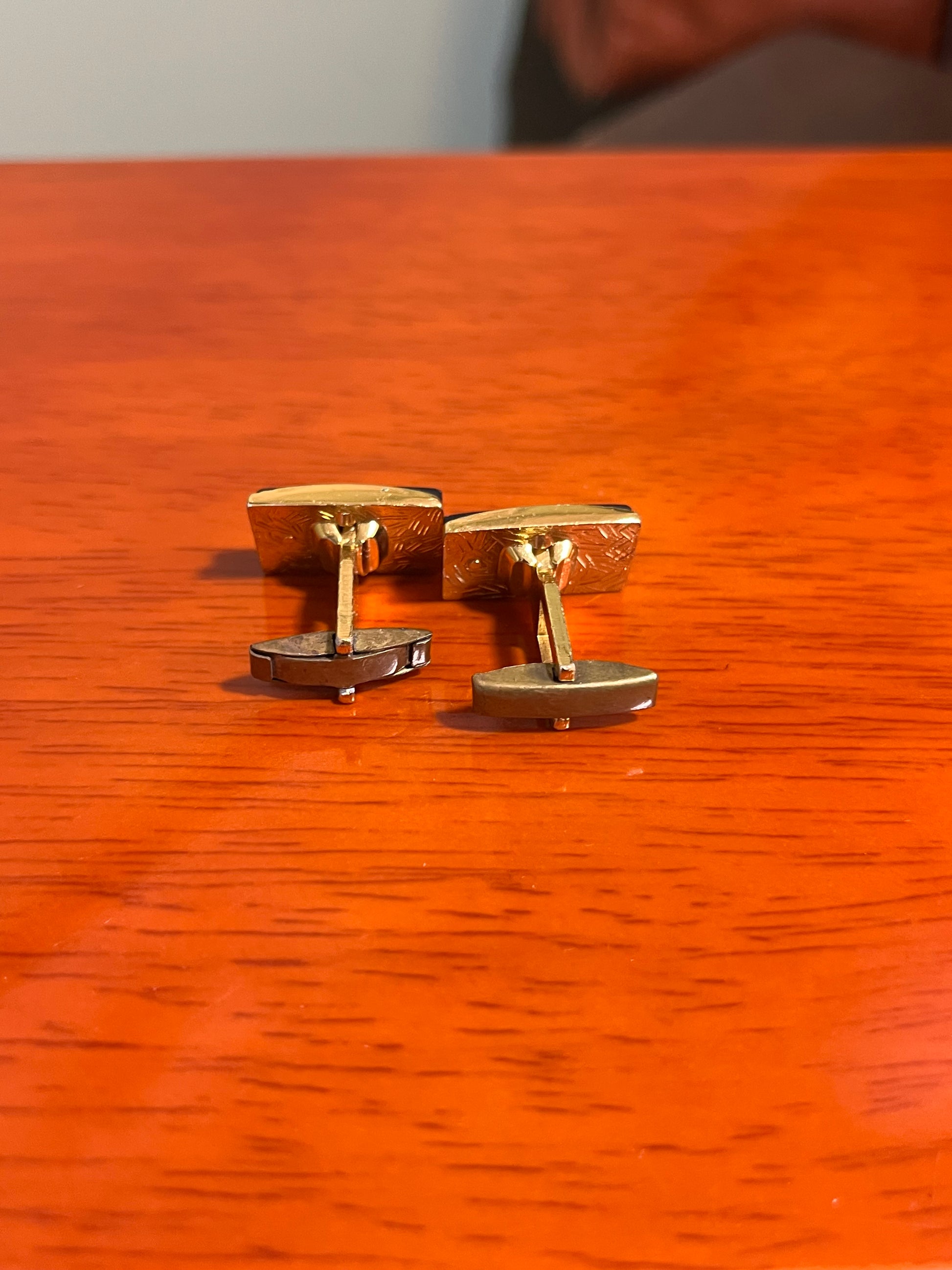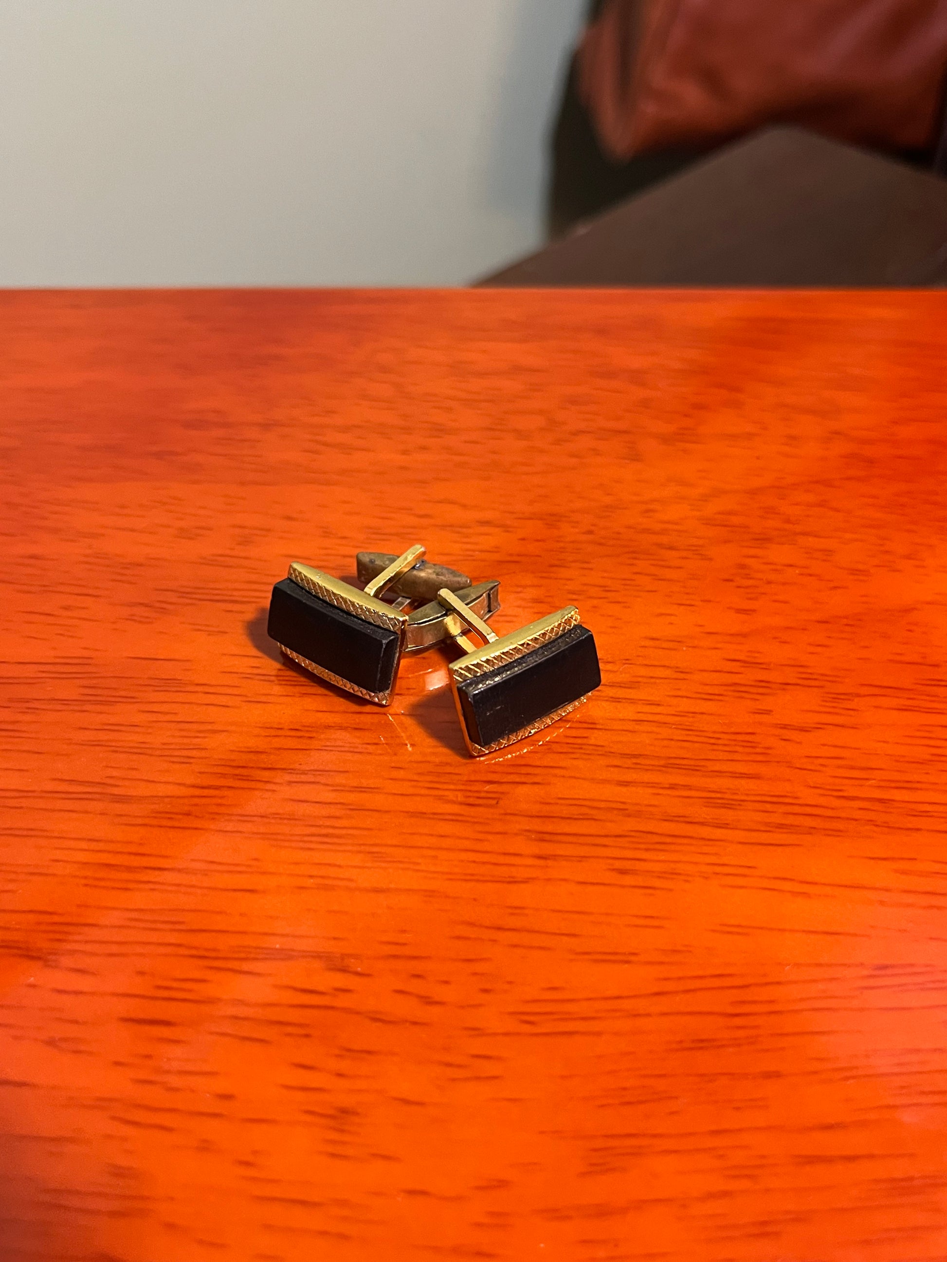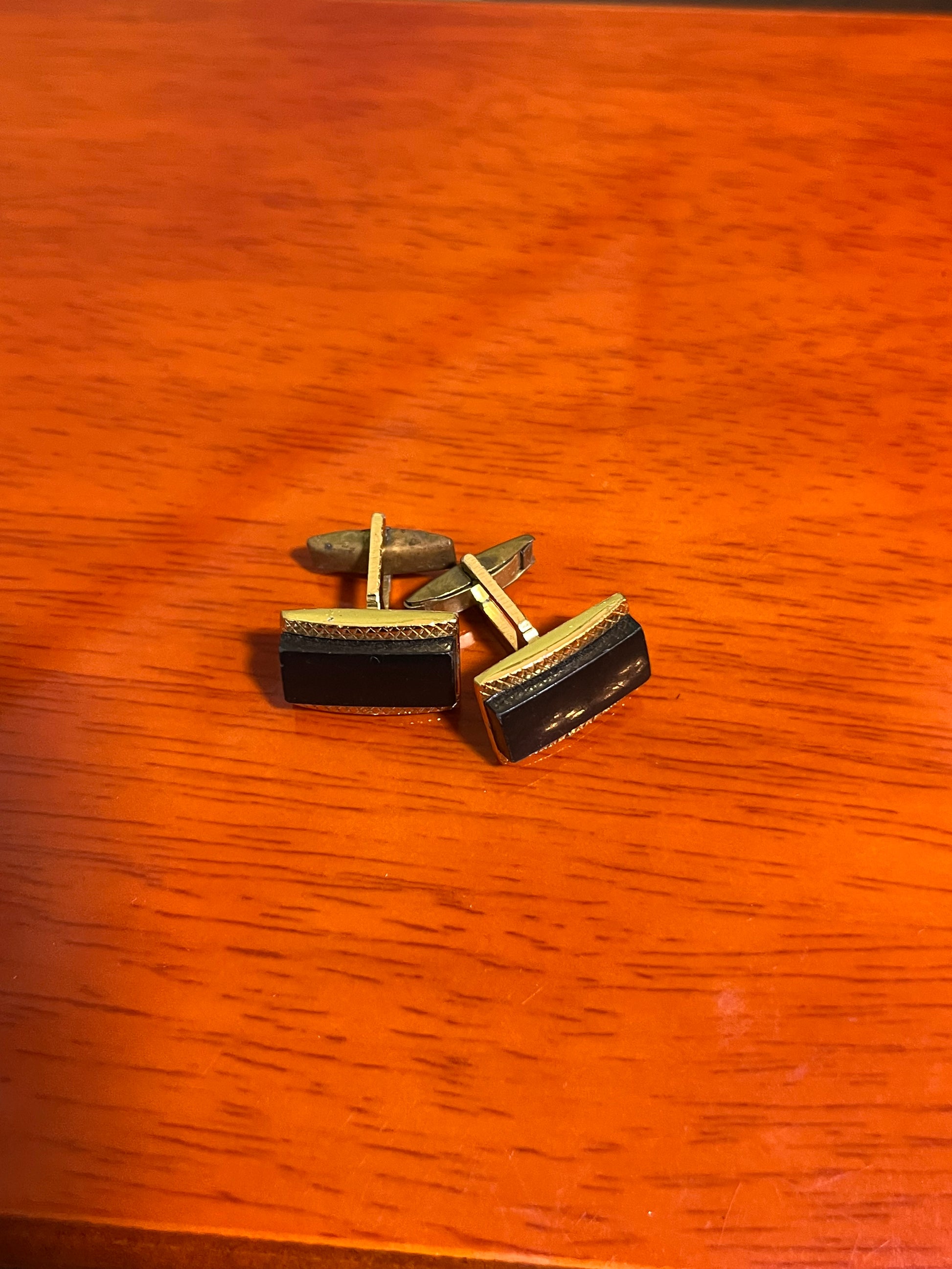 Gemelli vintage in metallo dorato zigrinato, con pietra onice.