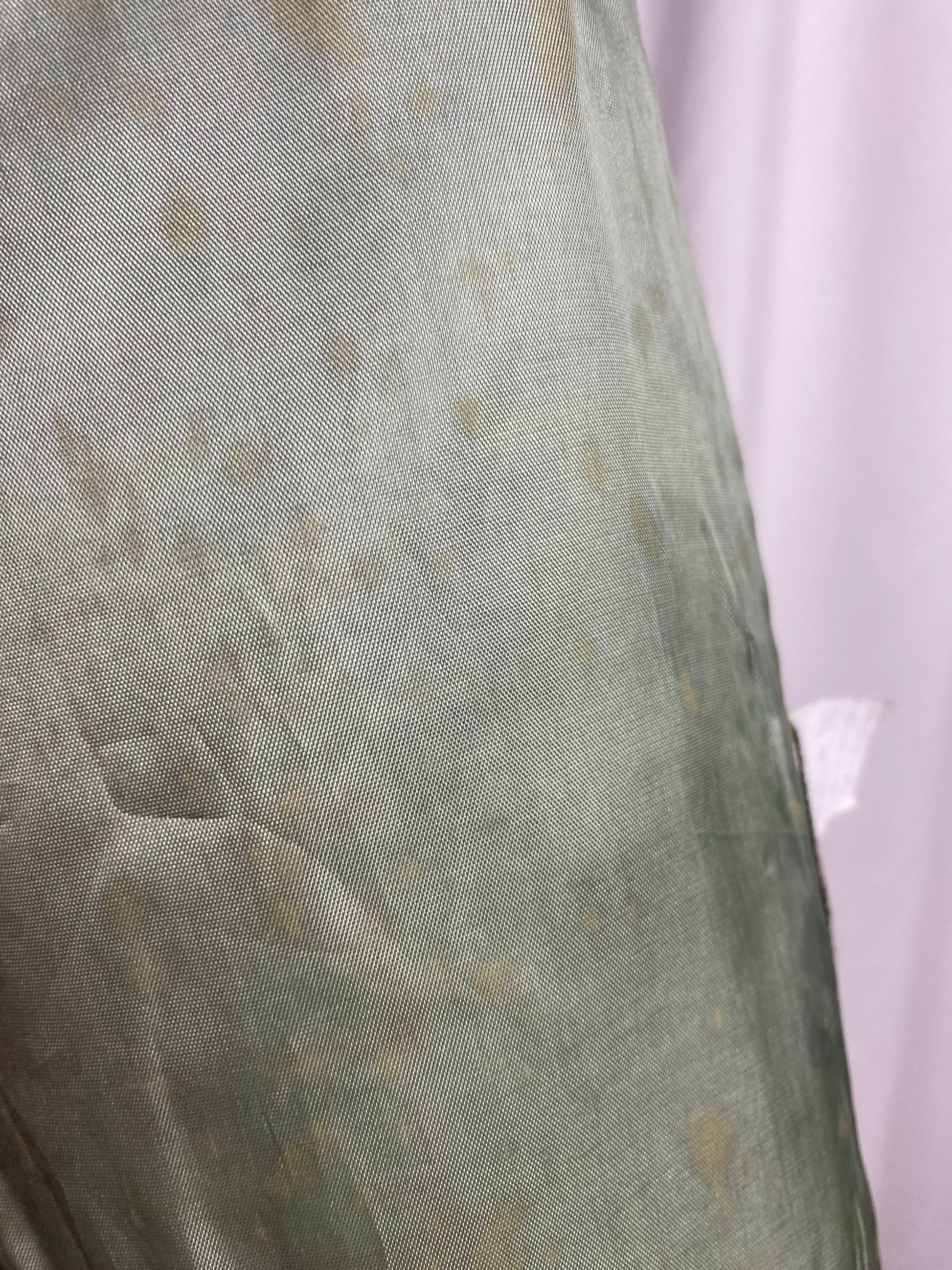 La giacca è stata sottoposta a lavaggio a secco ed è pulita, ma la fodera interna presenta aloni che non sono scomparsi. Il prezzo tiene conto di questo dettaglio.