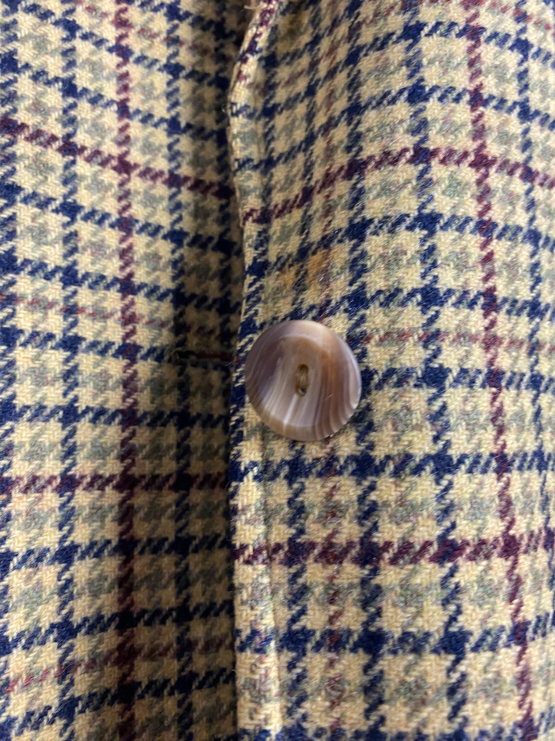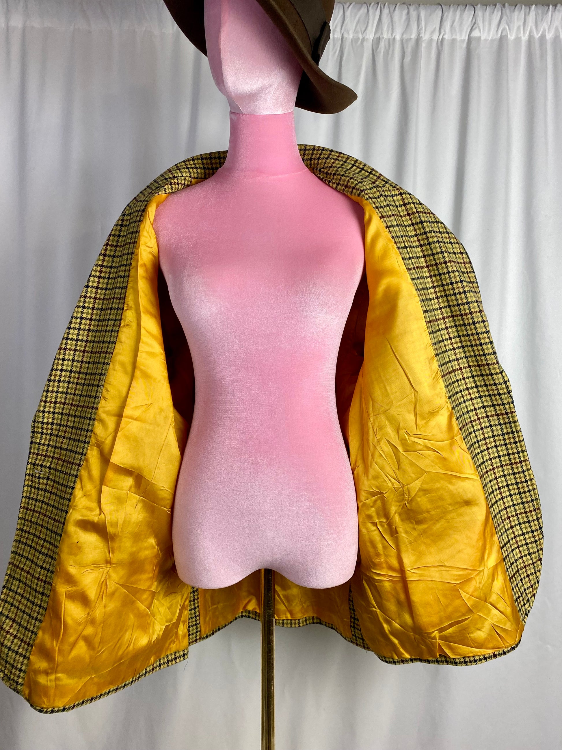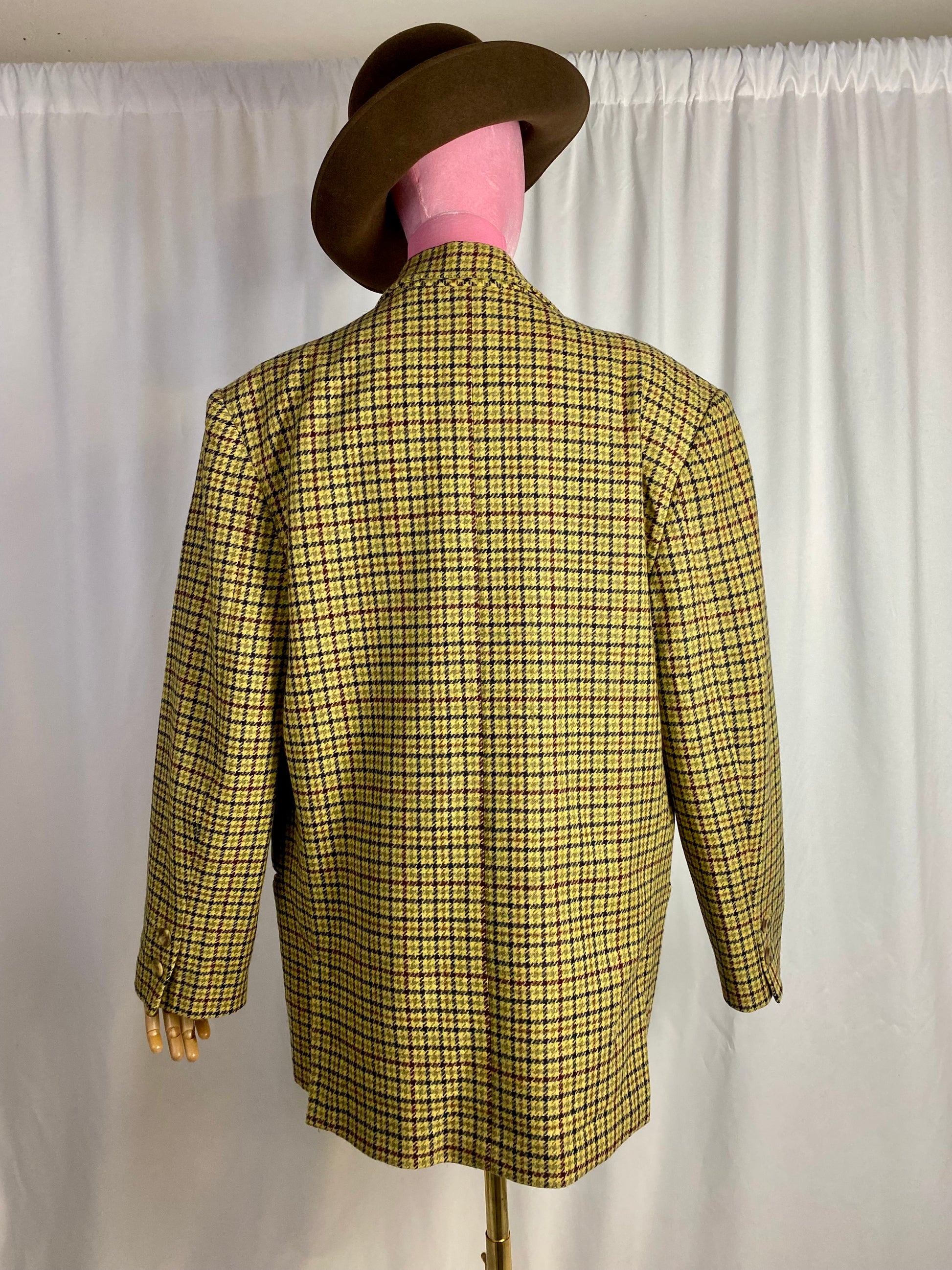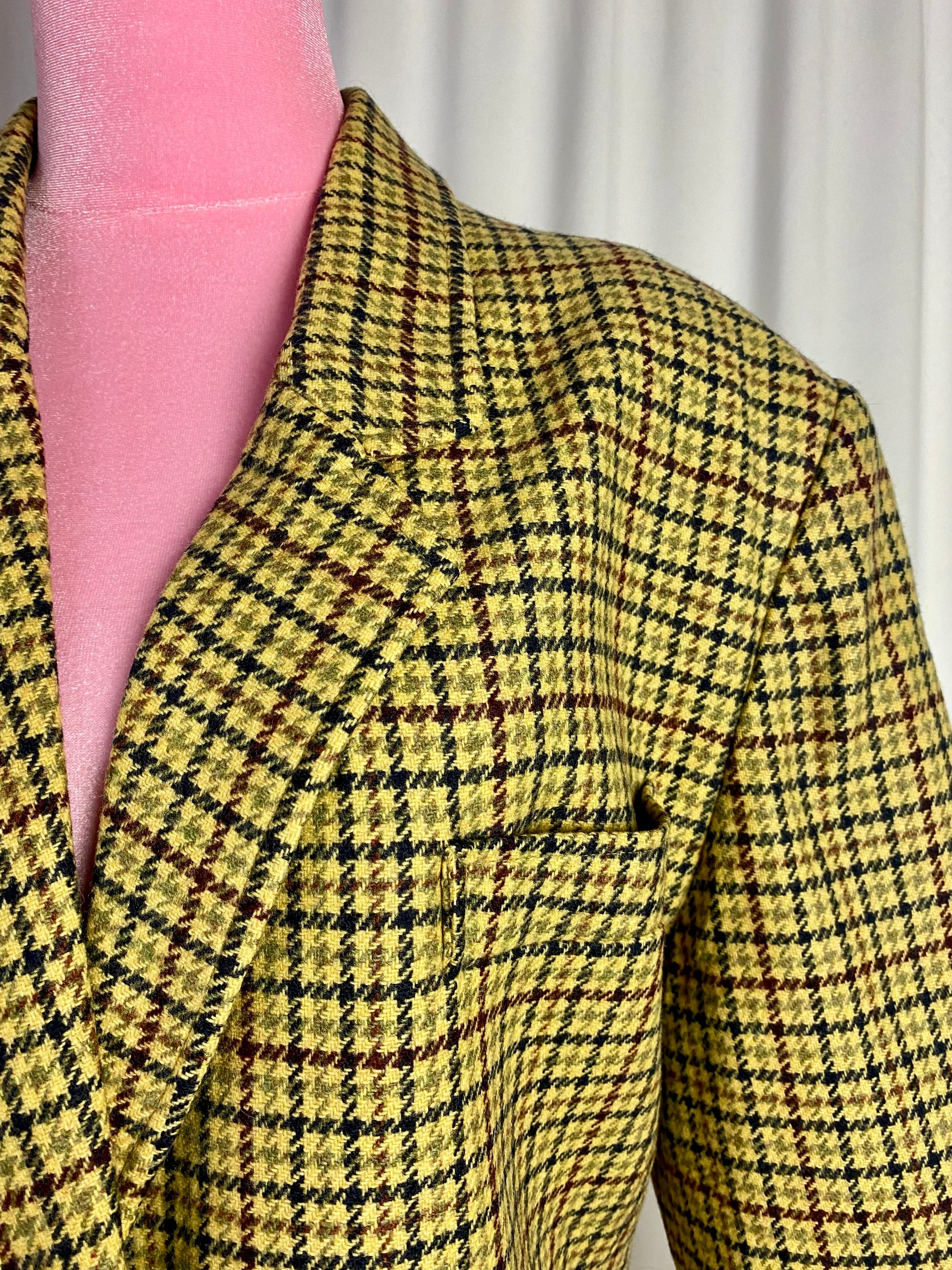 Giacca oversize anni '80 firmata Nixmar by Lancetti, realizzata in pura lana con un raffinato motivo check nei toni del senape, marrone e nero.