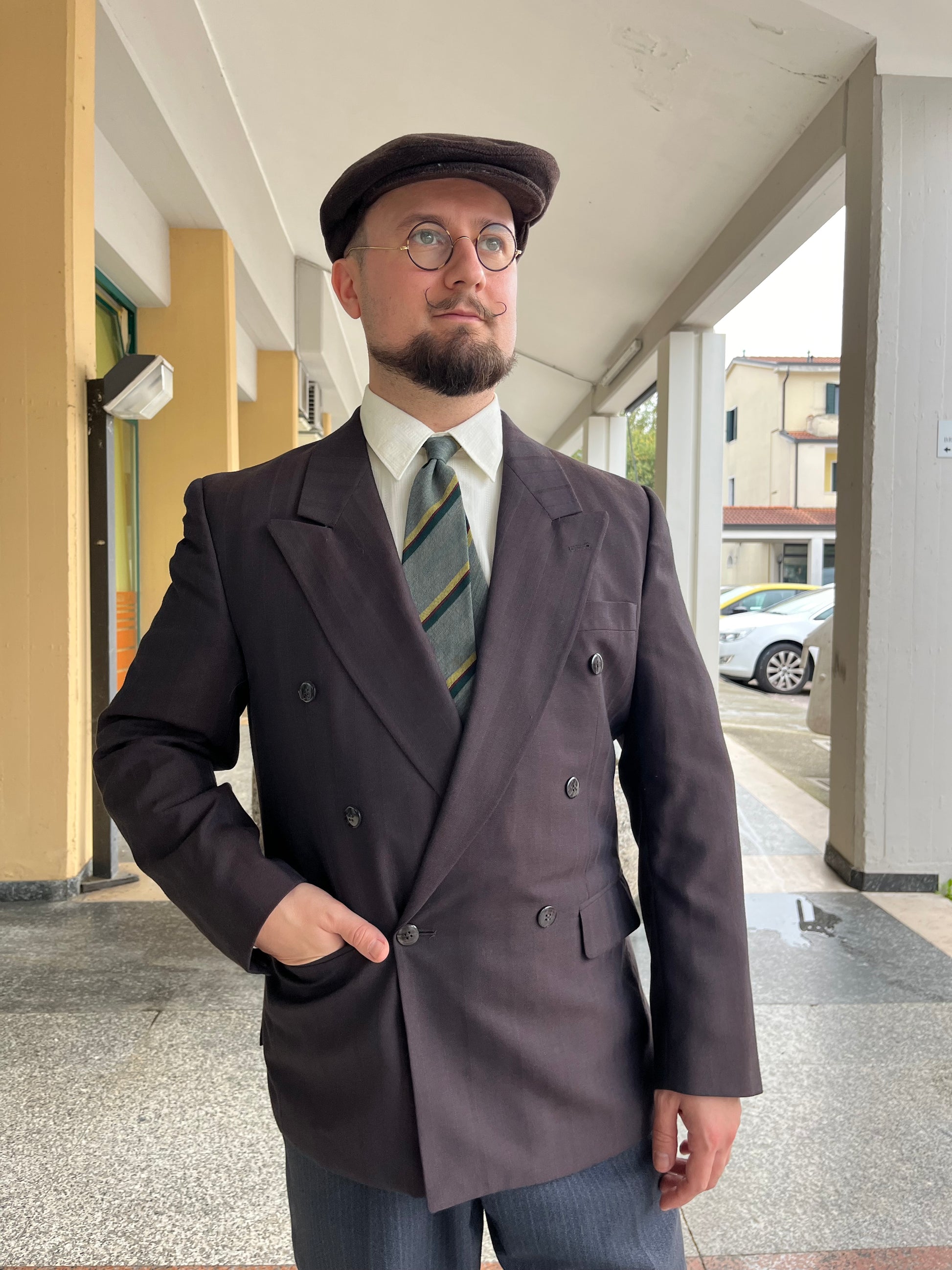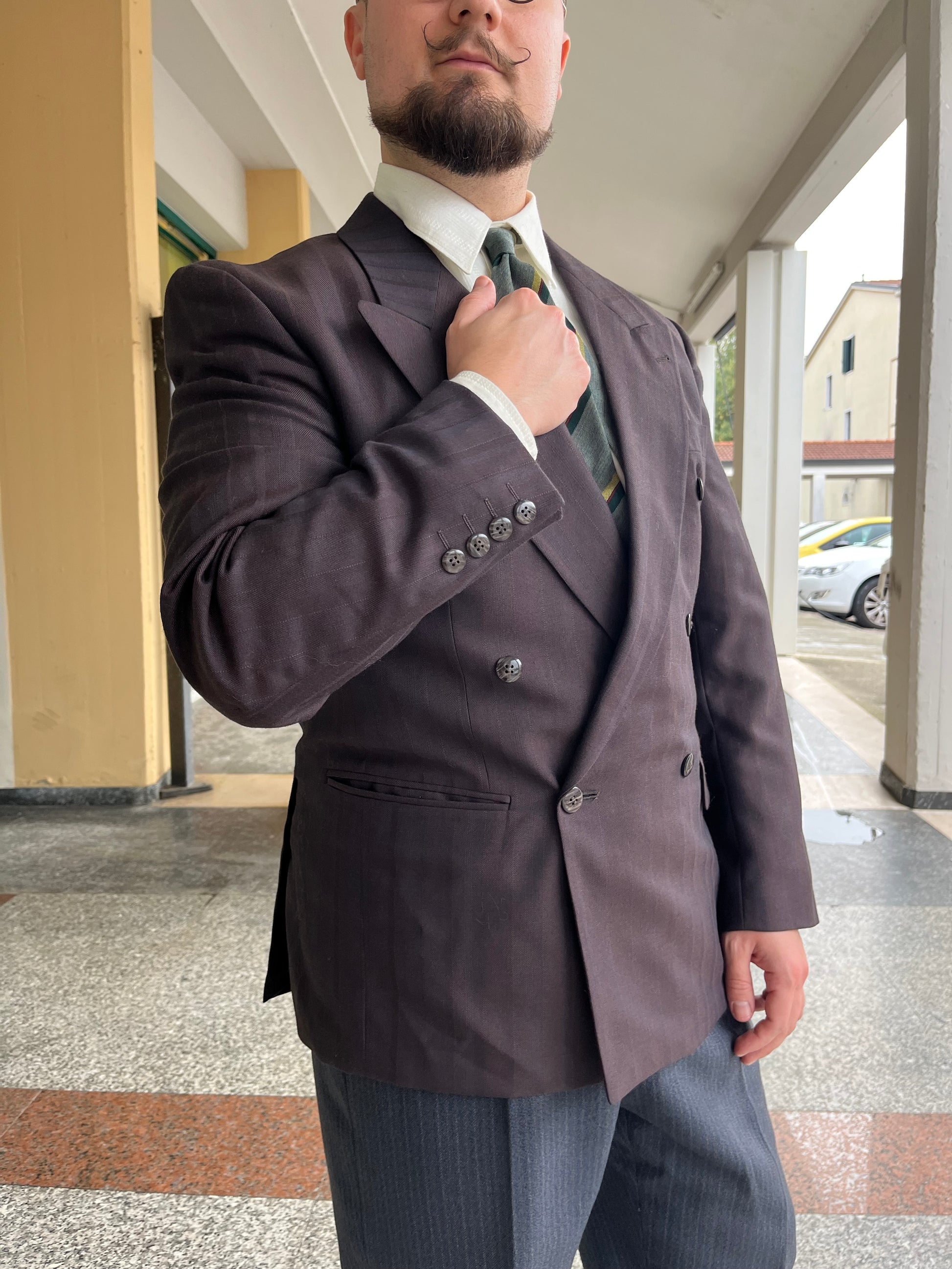 Giacca anni ‘90 in 100% pura lana, doppiopetto color vinaccia.