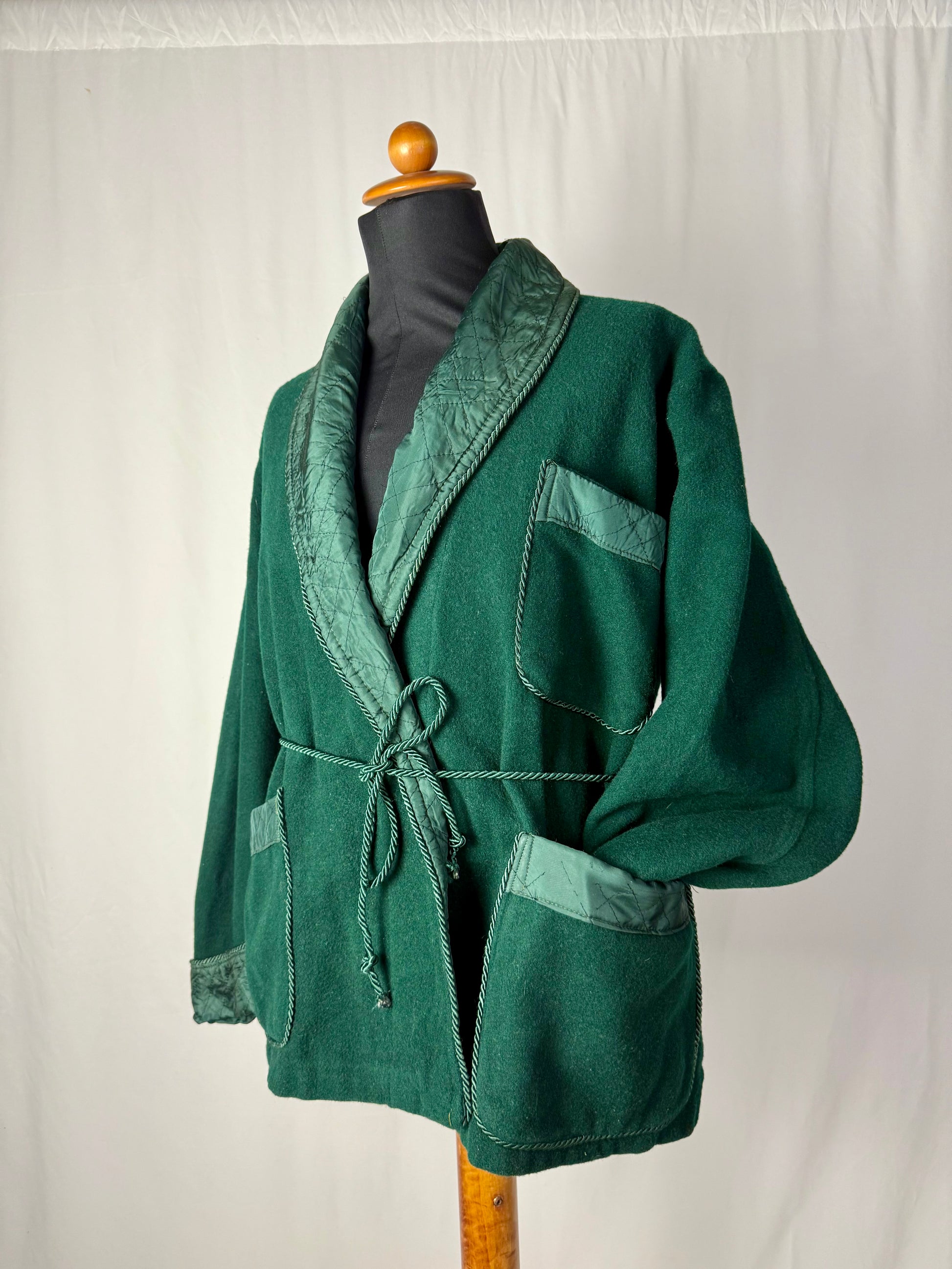 Perfetta per chi ama un’estetica tradizionale. Presenta collo sciallato, inserti a contrasto su collo, polsini e tasche ed un cordino intrecciato. Creando una silhouette avvolgente e confortevole, ideale per i momenti di relax.