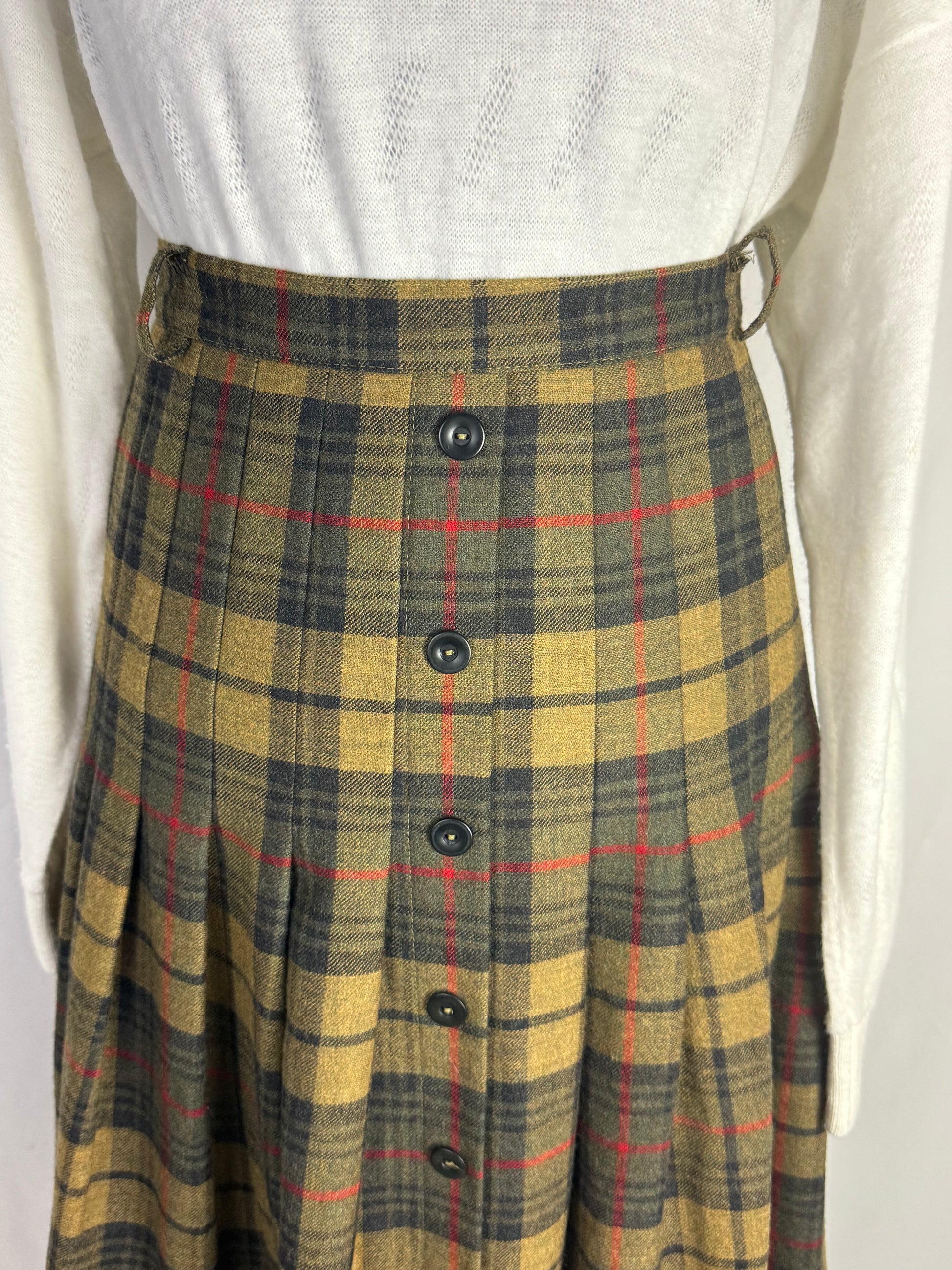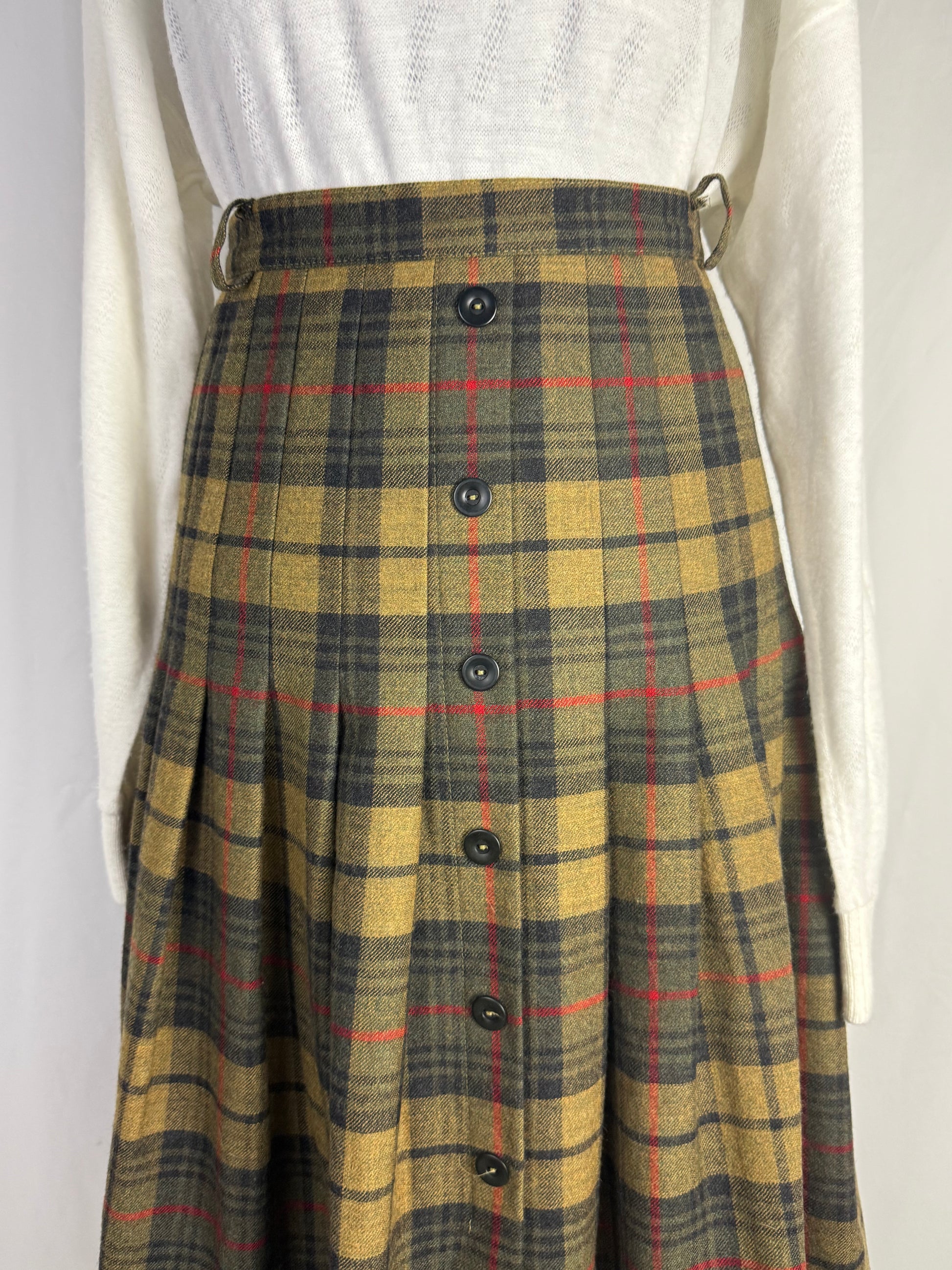 Gonna Scozzese in Lana con Pieghe e Abbottonatura Frontale - TG. 46/48
