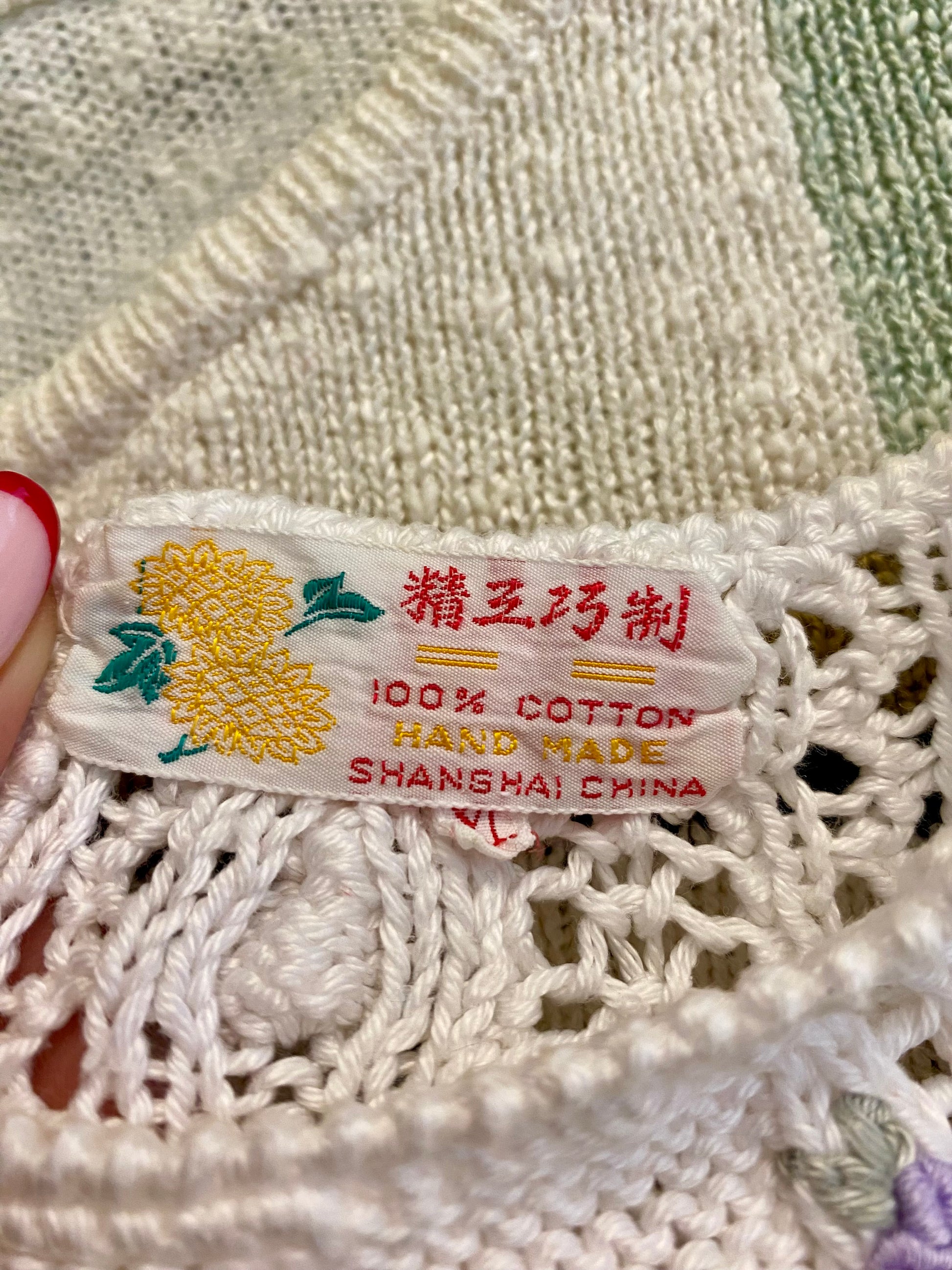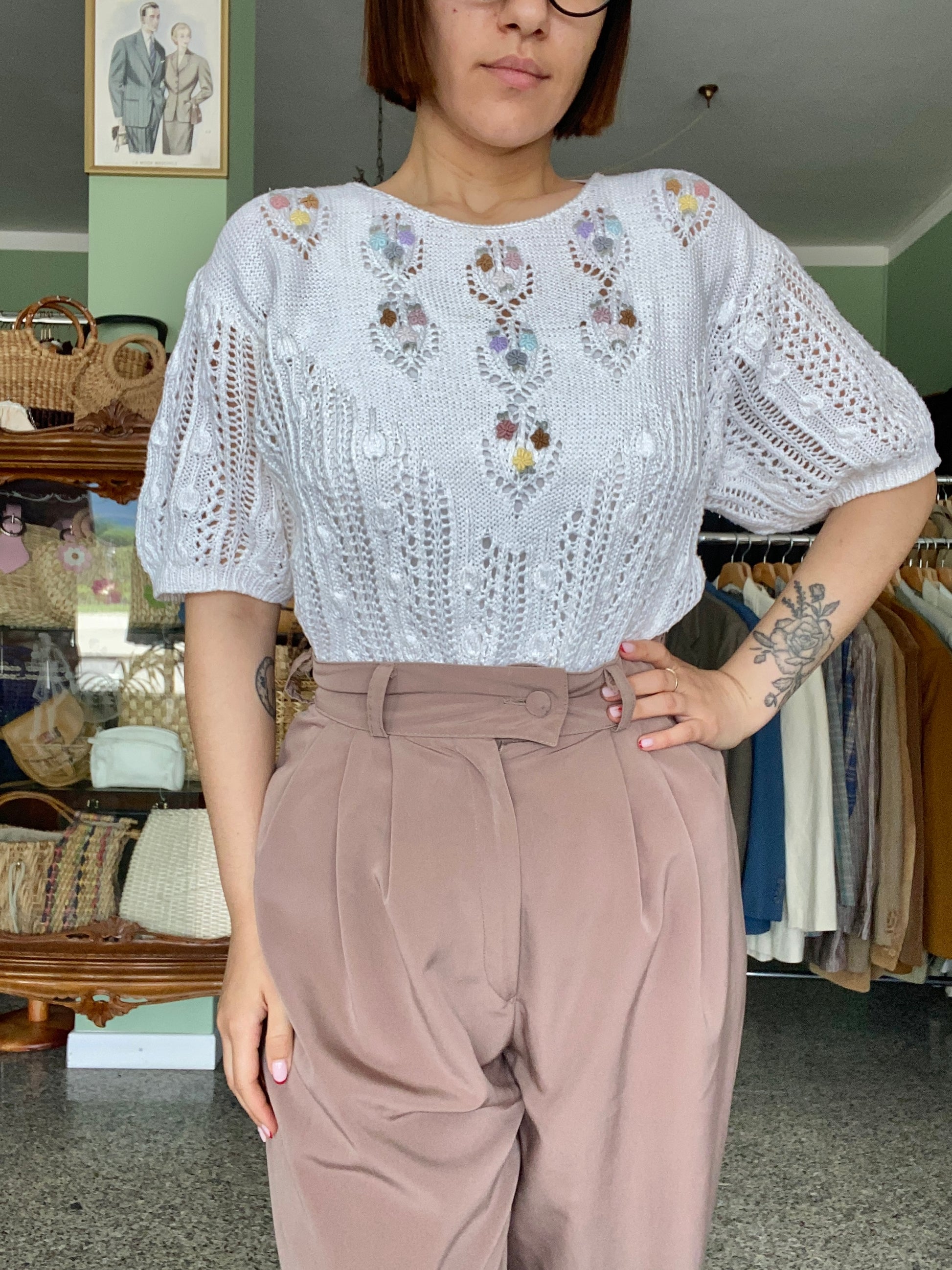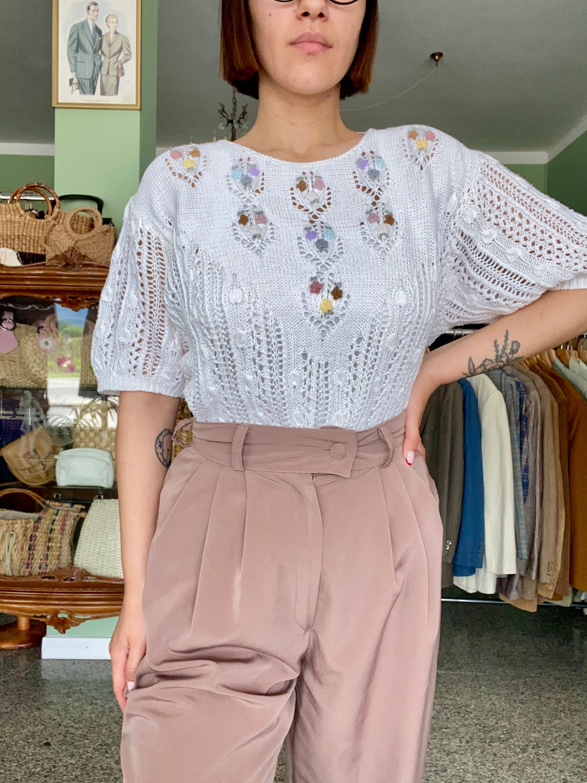 Maglia traforata anni '80 in puro cotone ricamato a mano – made in Shanghai - TG. 46/48 circa