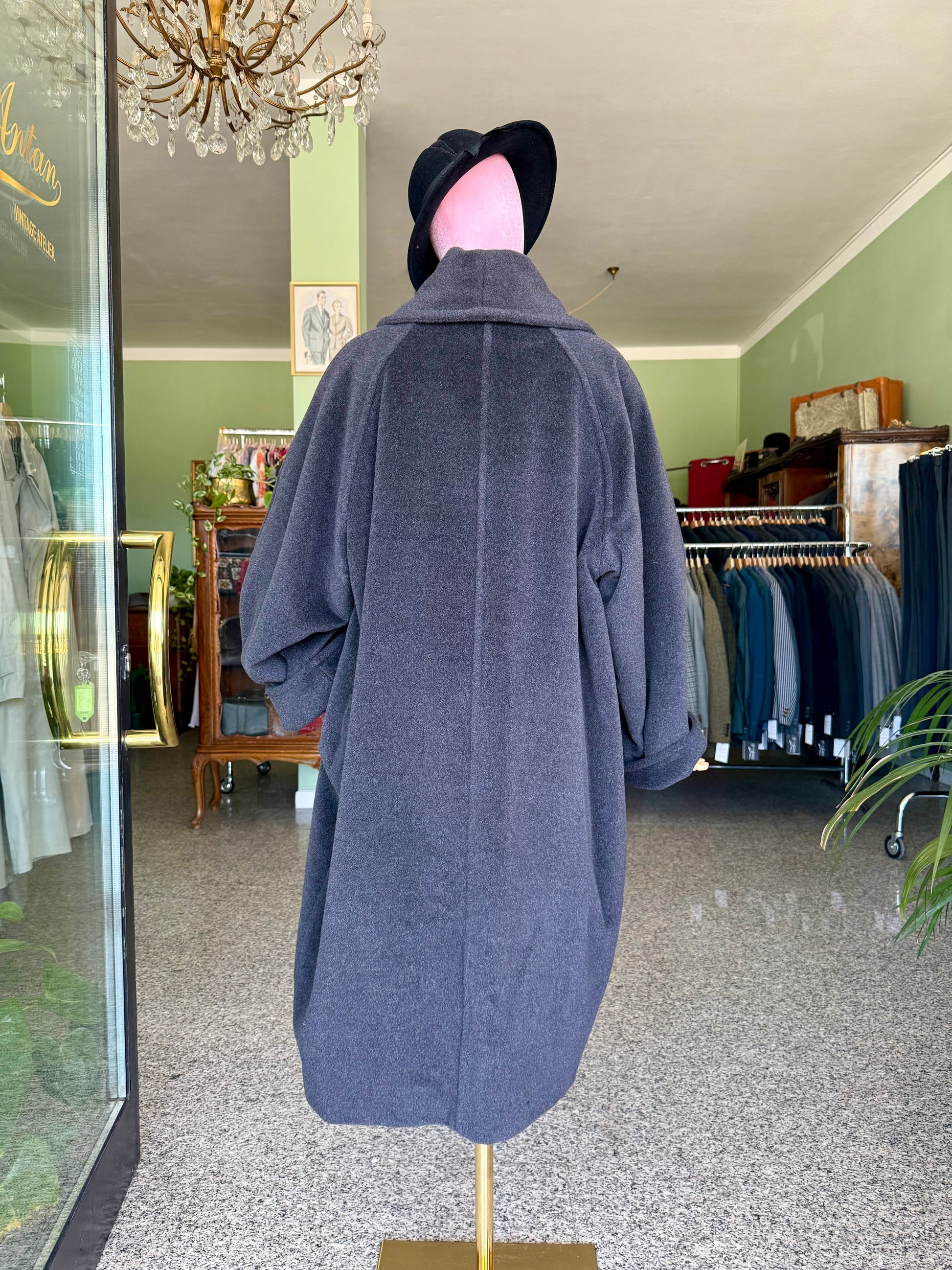 Un cappotto in lana grigio scuro dalle proporzioni volutamente abbondanti, con spalle scese e taglio maschile. È la quintessenza dell’estetica anni ’80 e ‘90, resa celebre da Max Mara e dalla sua idea di “power dressing” femminile. La silhouette avvolgente e il volume generoso tornano oggi nelle passerelle contemporanee di brand come Balenciaga e ovviamente nelle stesse collezioni Max Mara, che ripropone ciclicamente questa sua cifra stilistica.