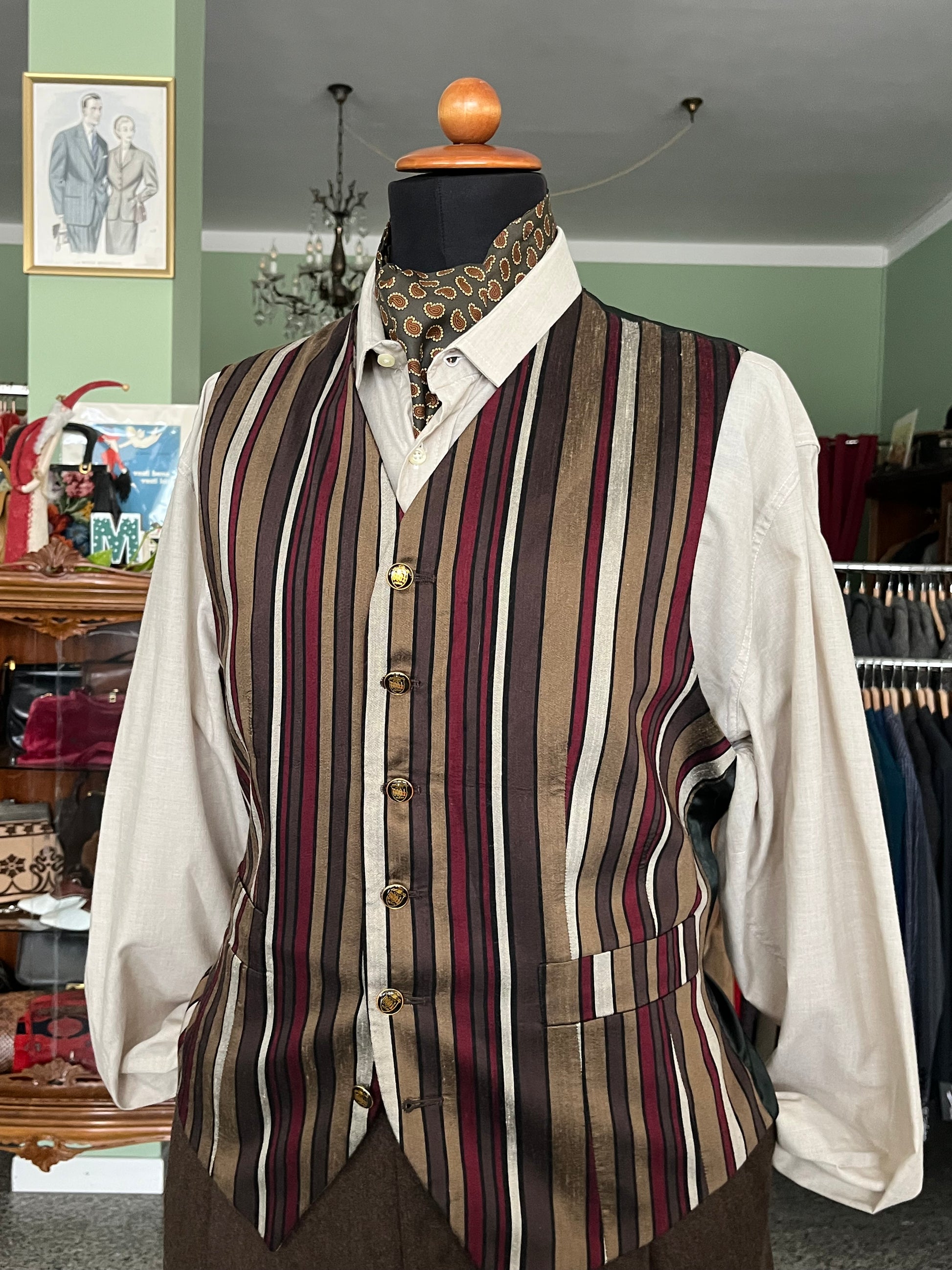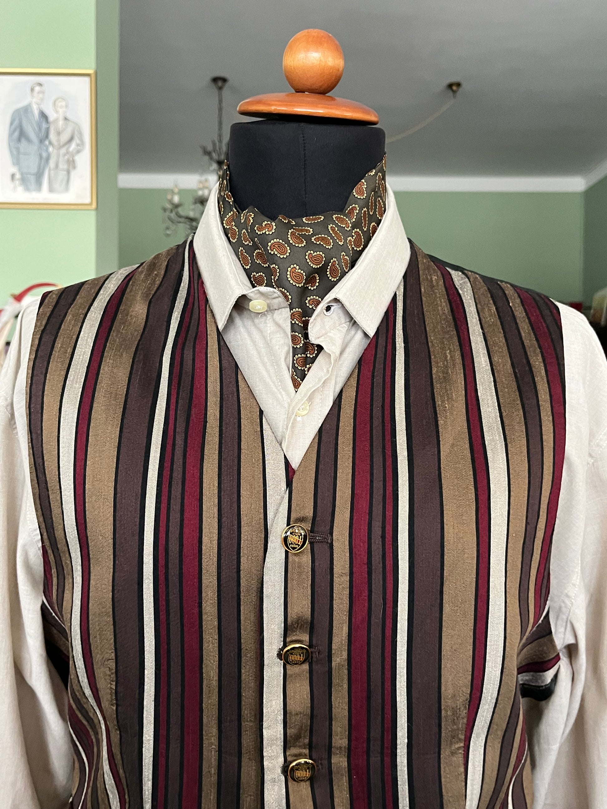 Panciotto anni ‘80 in 100% pura seta, a righe.