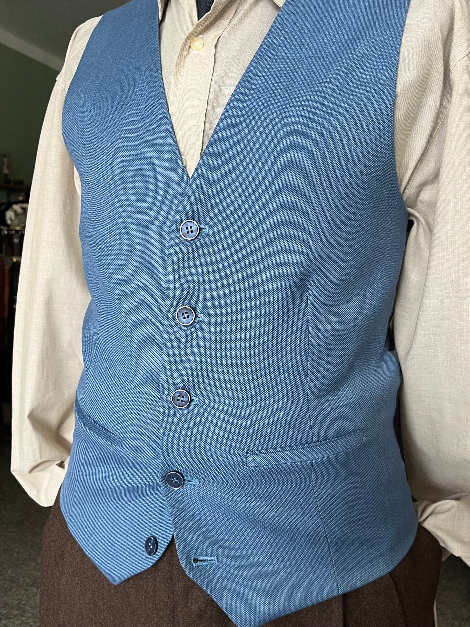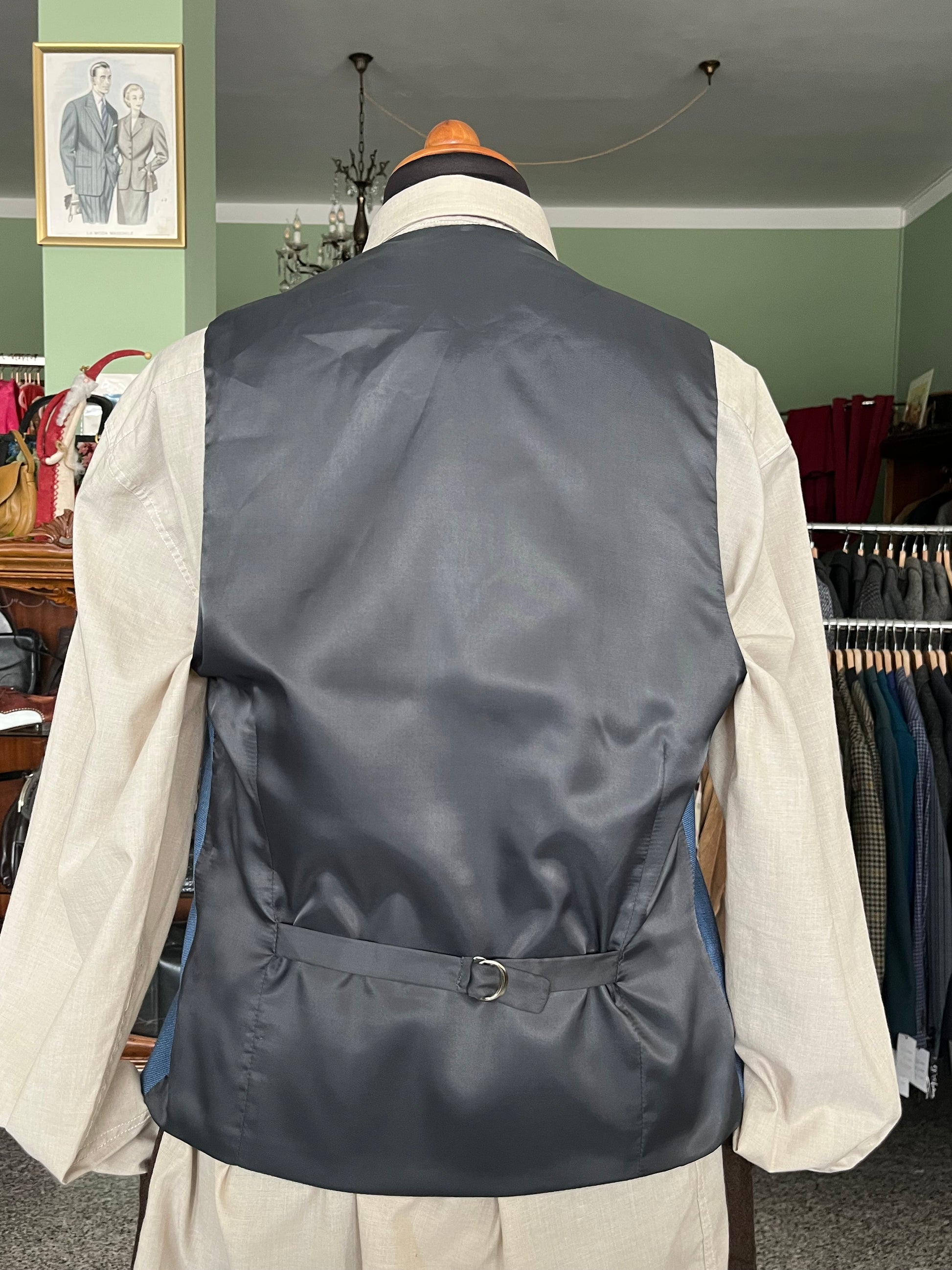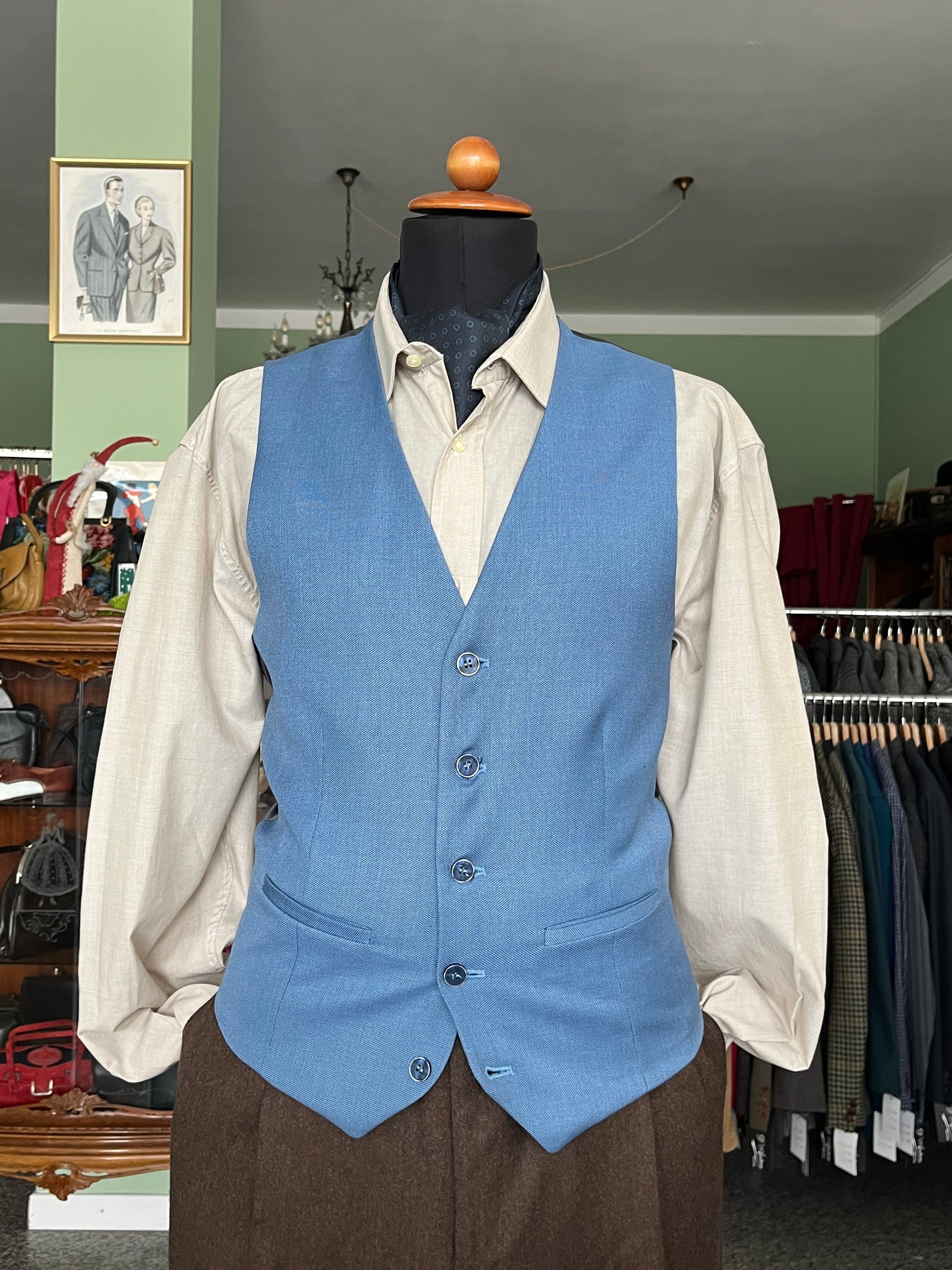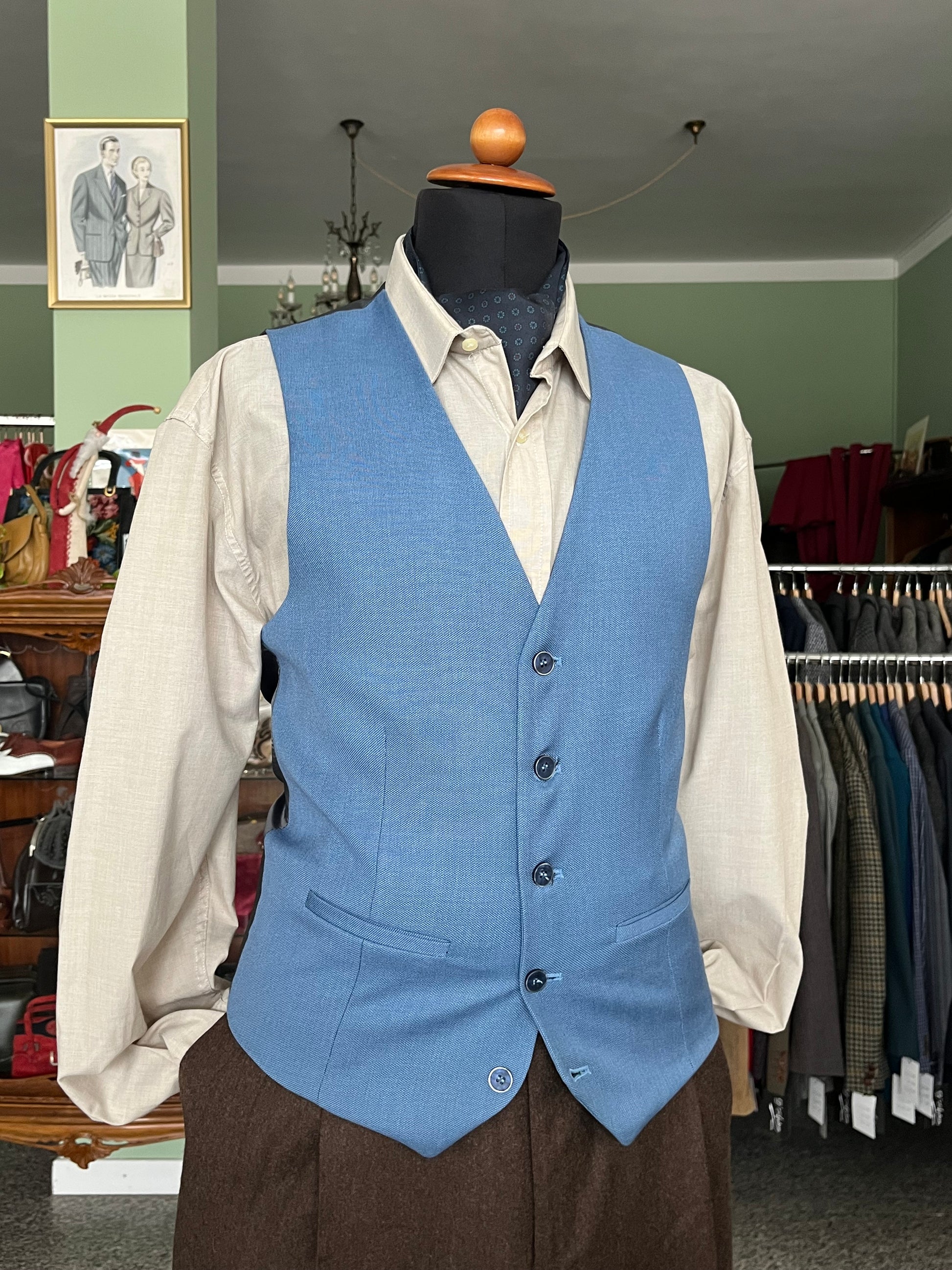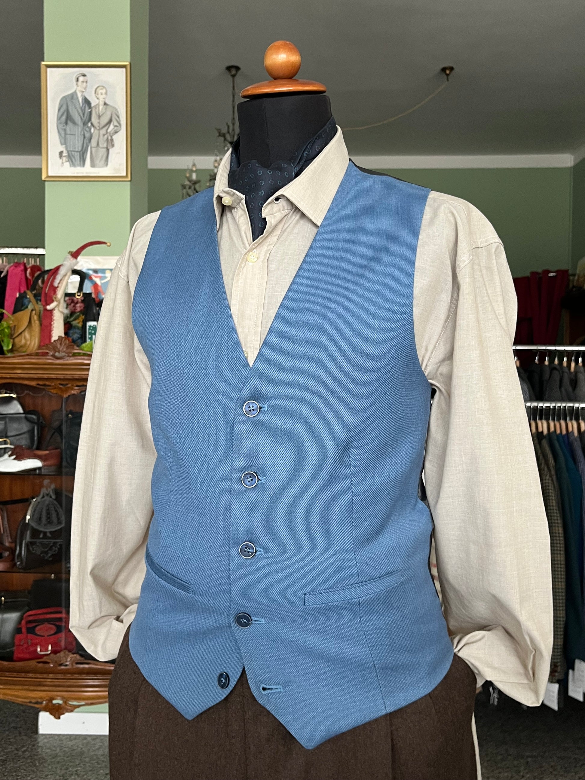 Panciotto anni ‘90 in fresco di lana, color celeste.