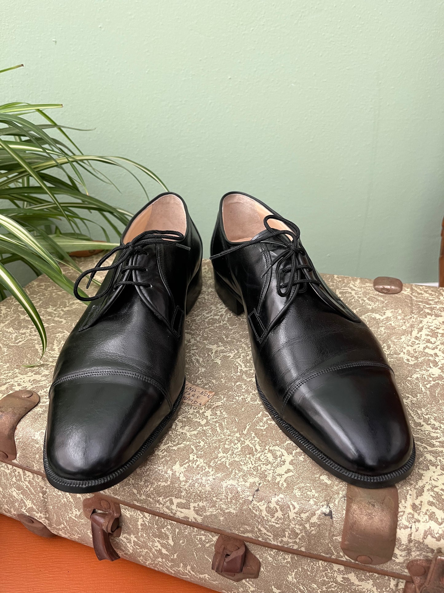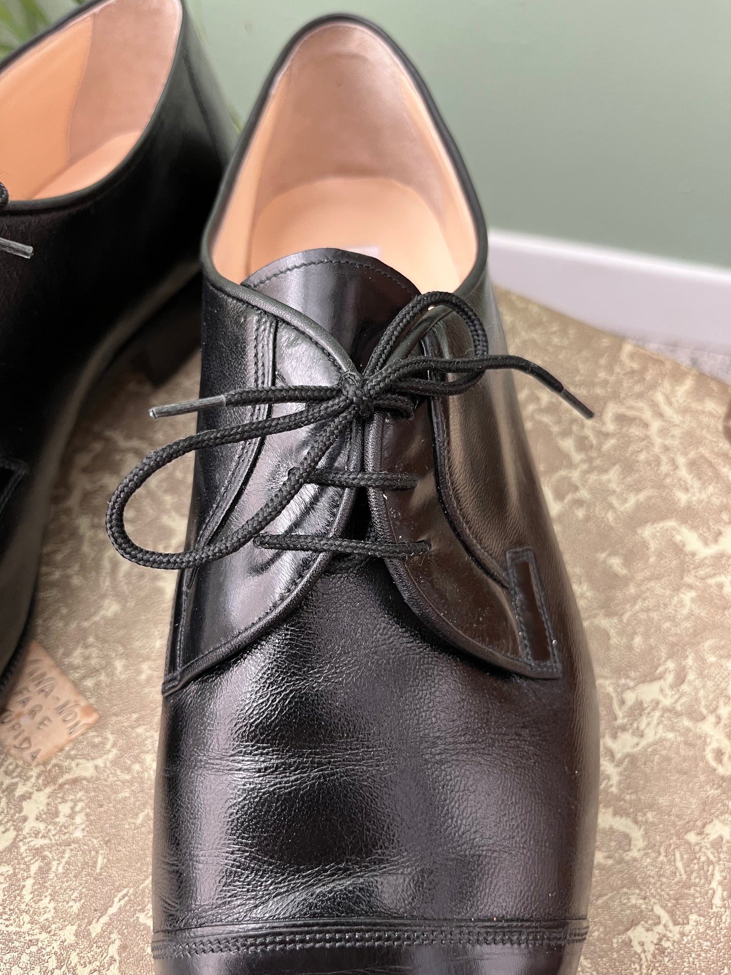 Scarpe derby in pelle nera, fondo di magazzino quindi mai utilizzate.