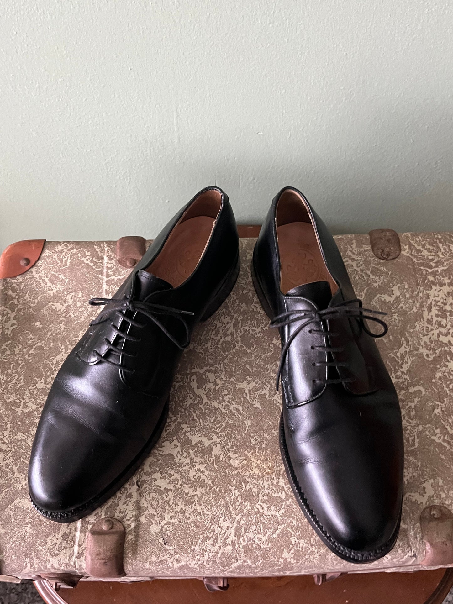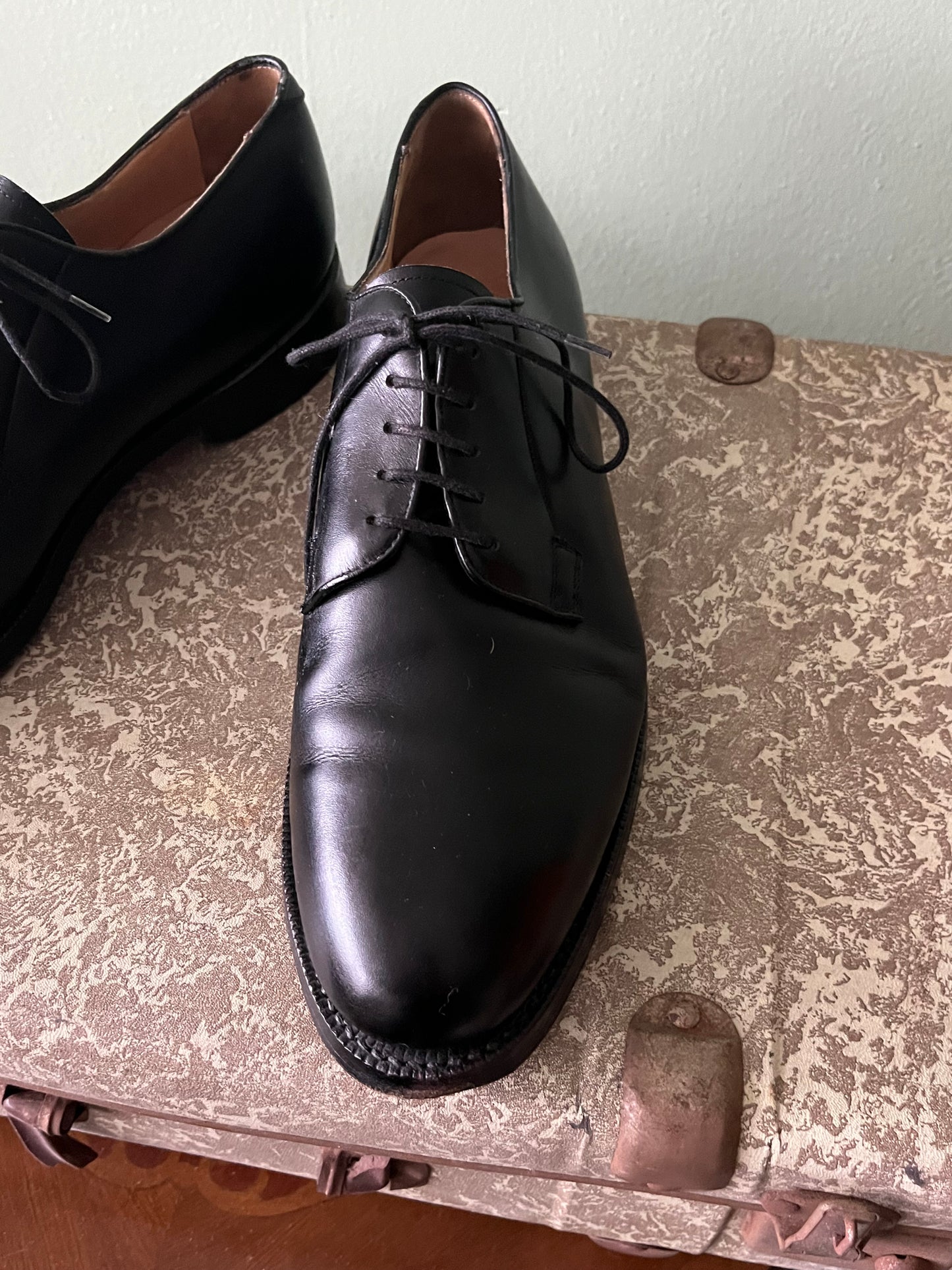 Le scarpe sono delle derby, presentano una forma arrotondata e affusolata e tacco antiscivolo.