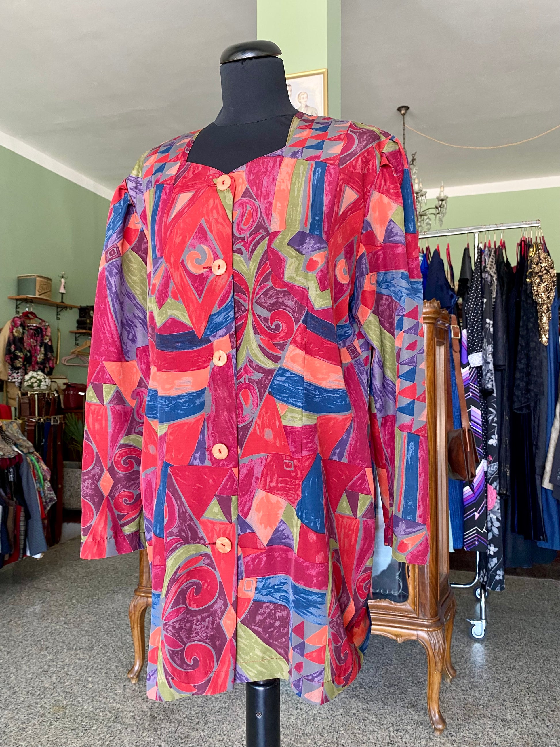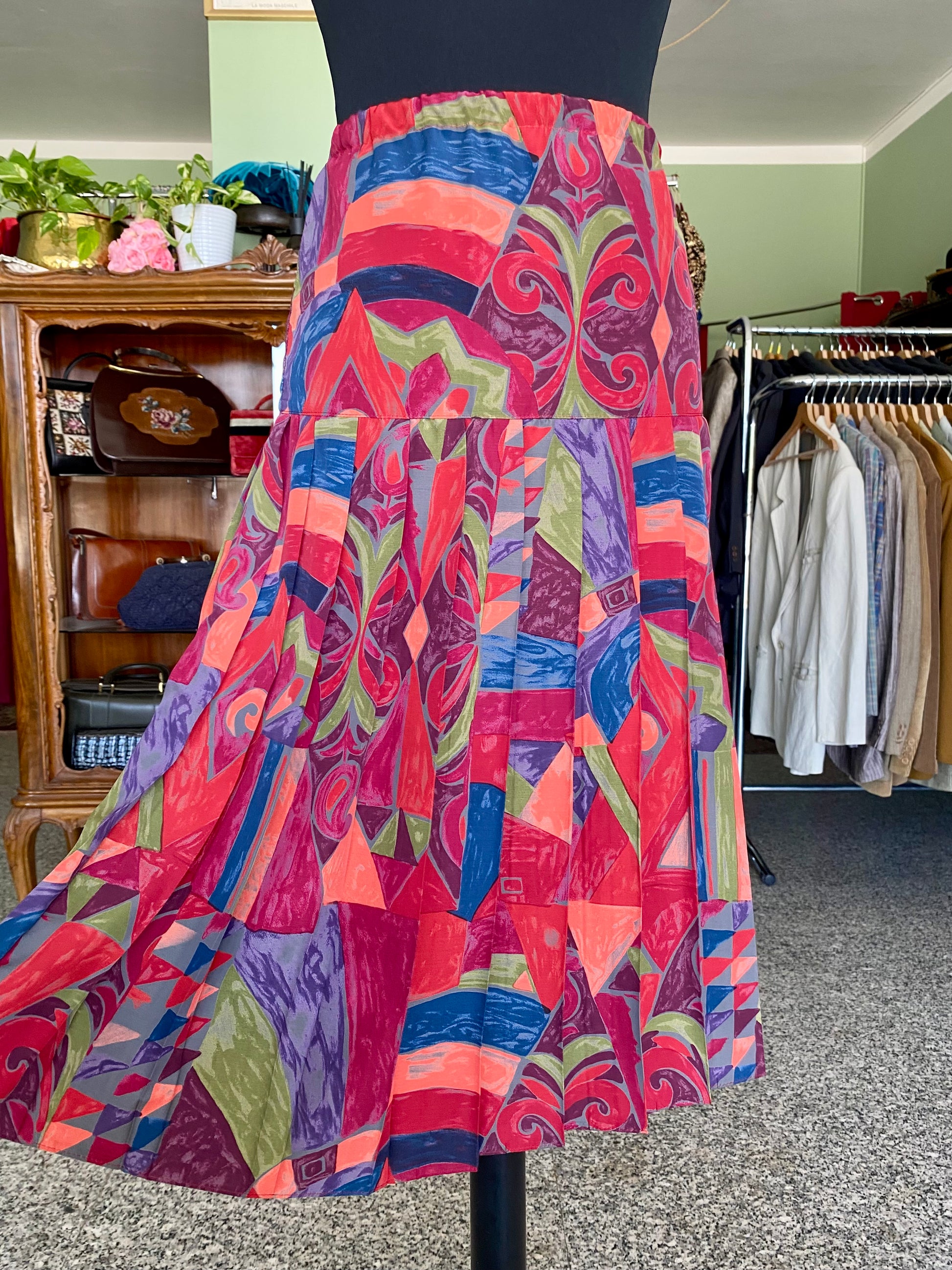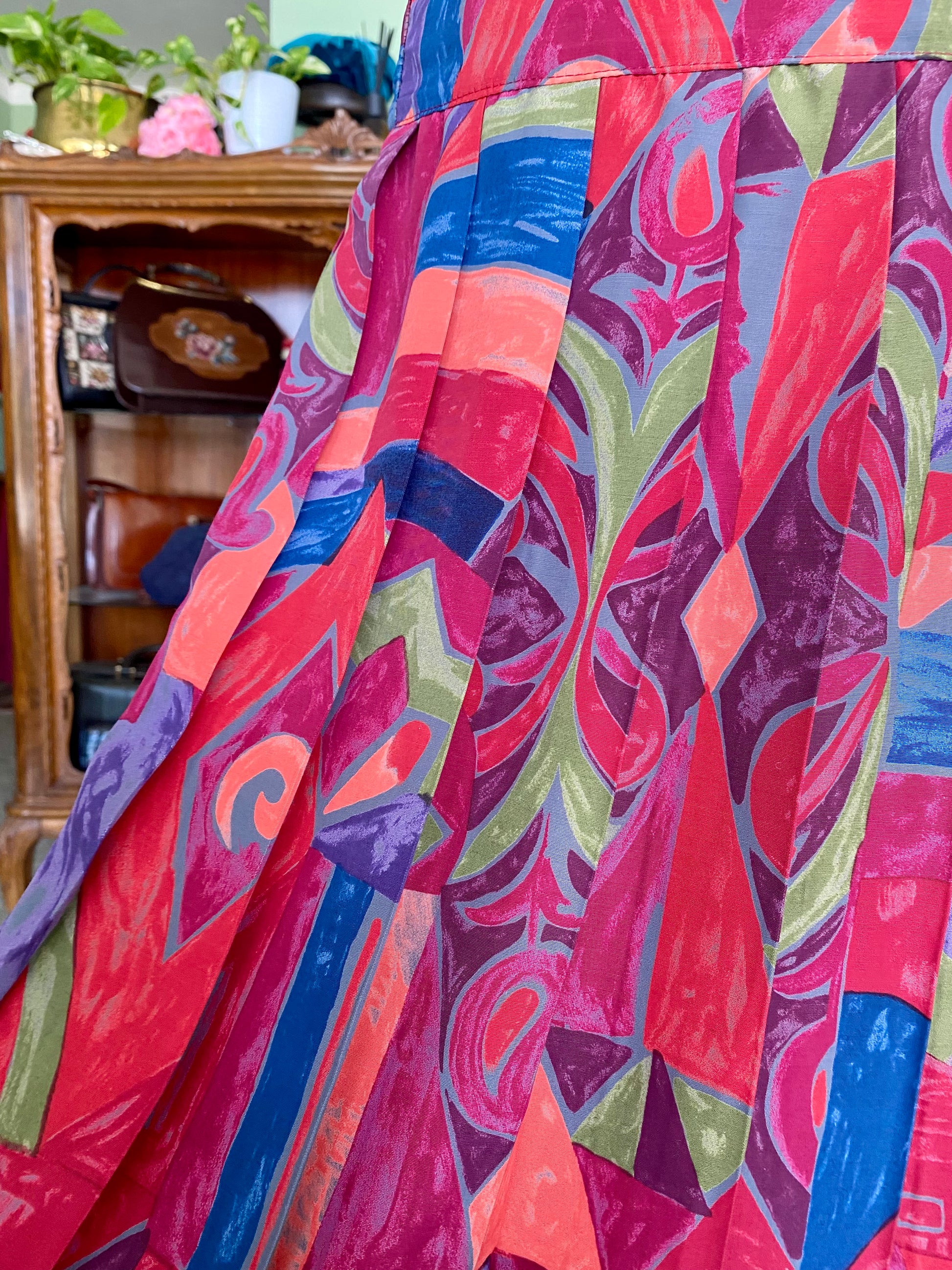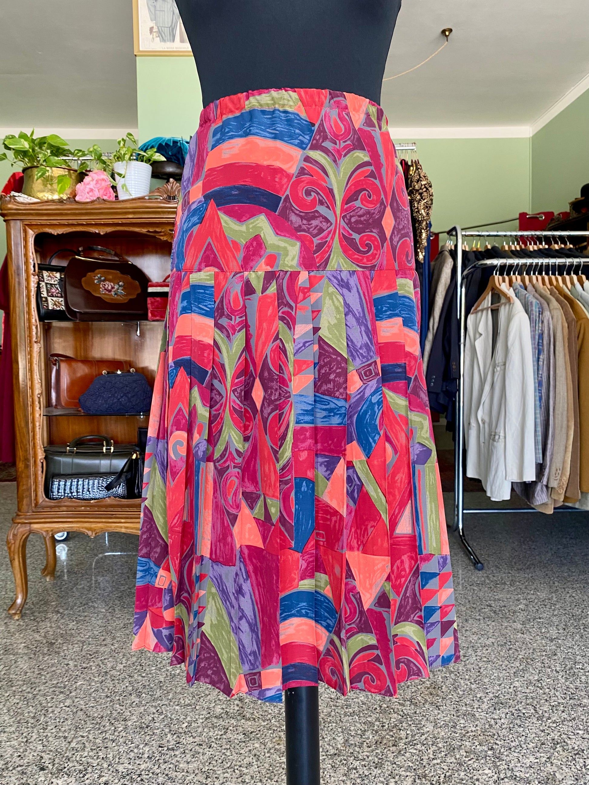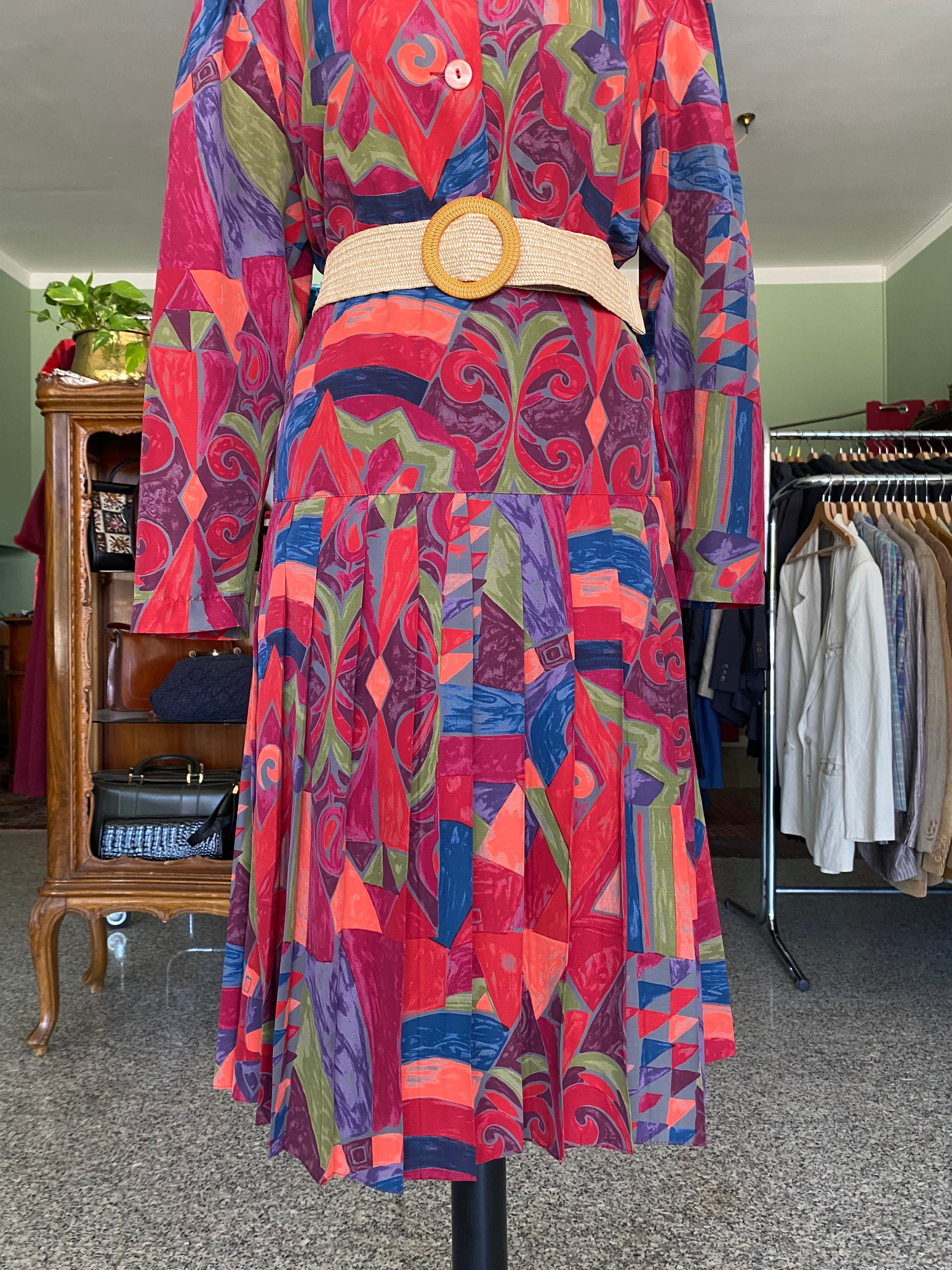 Completo vintage anni ’80 — camicia e gonna in stampa geometrico-tribale multicolor - TG. 46
