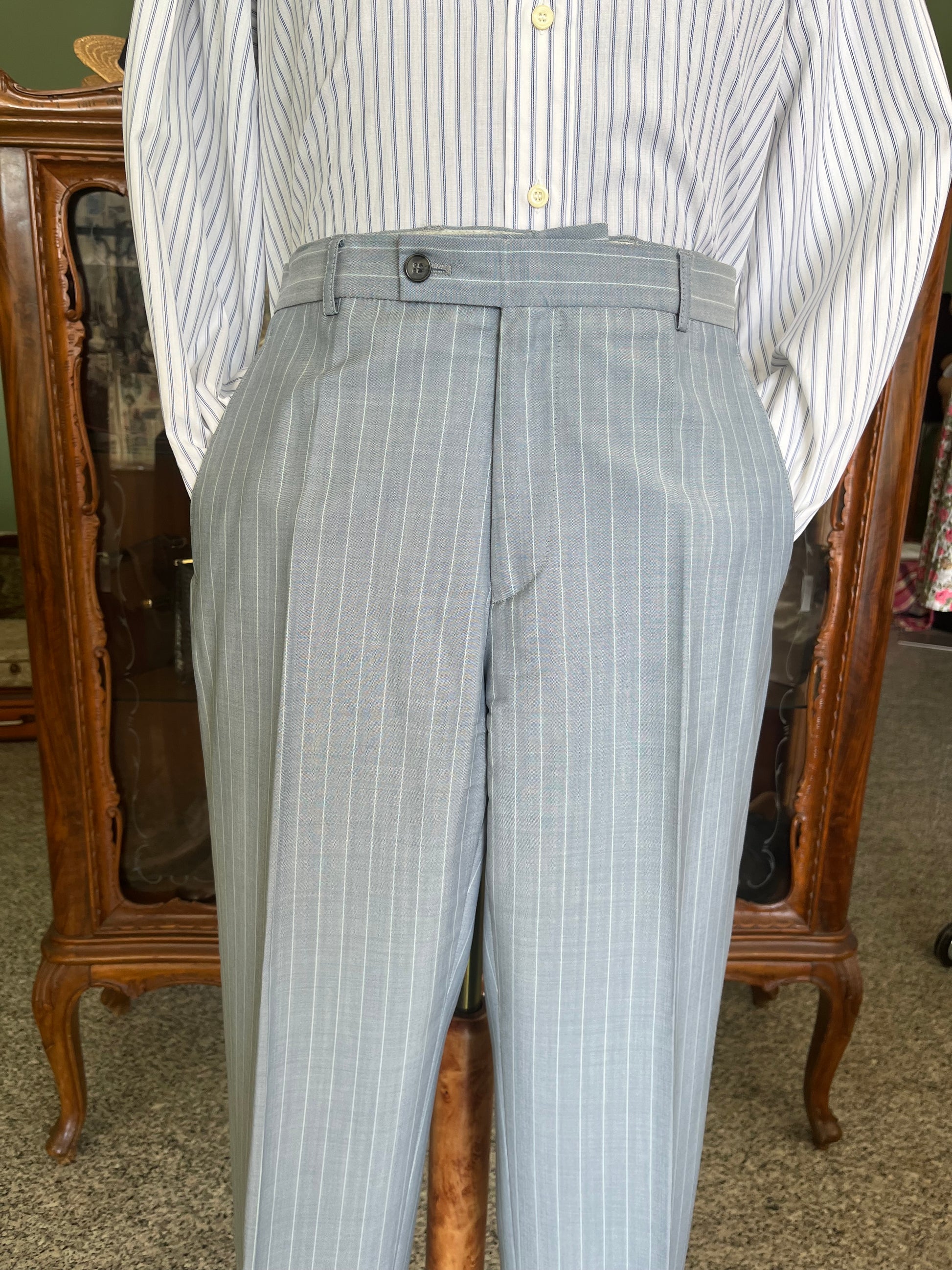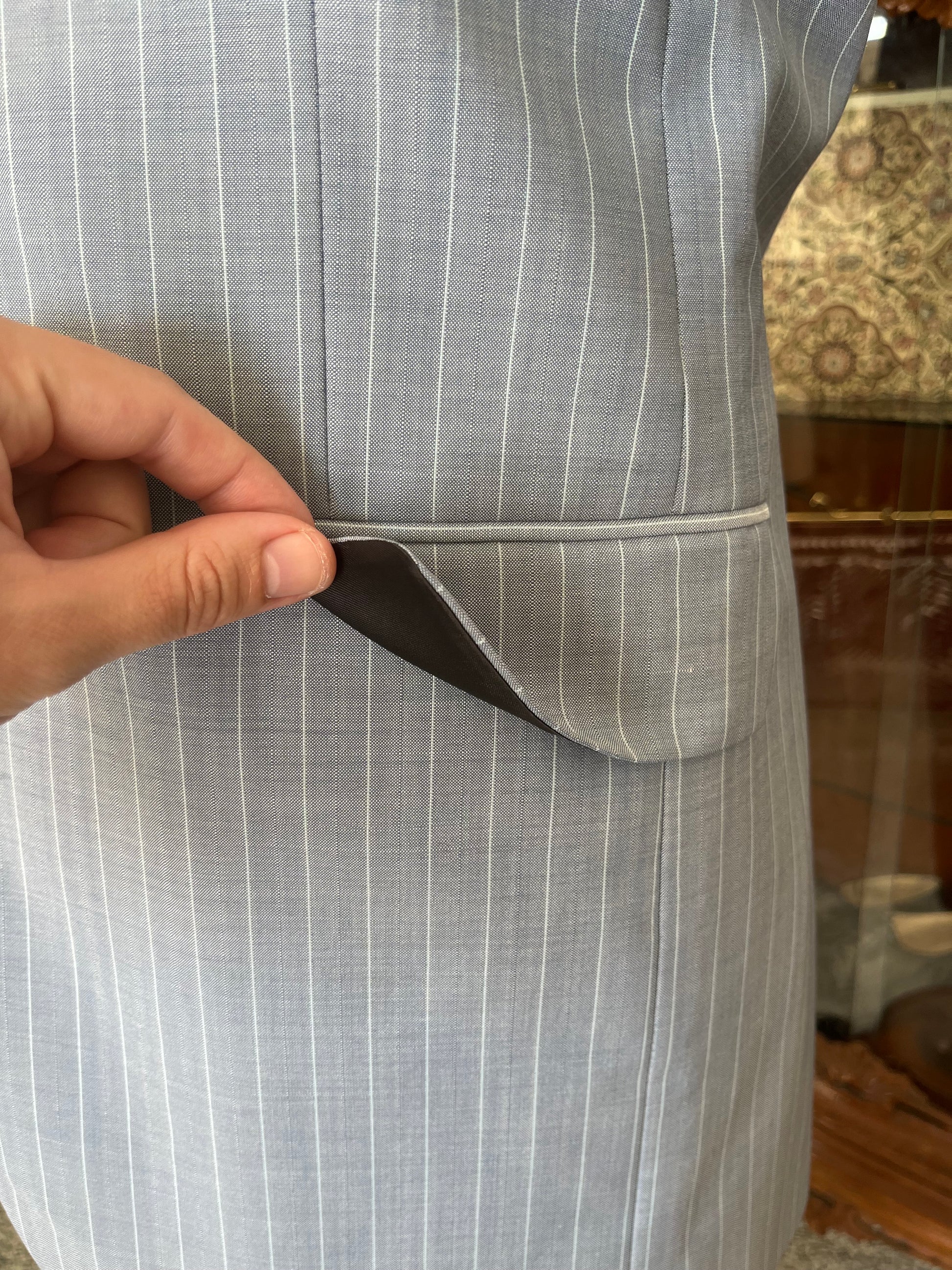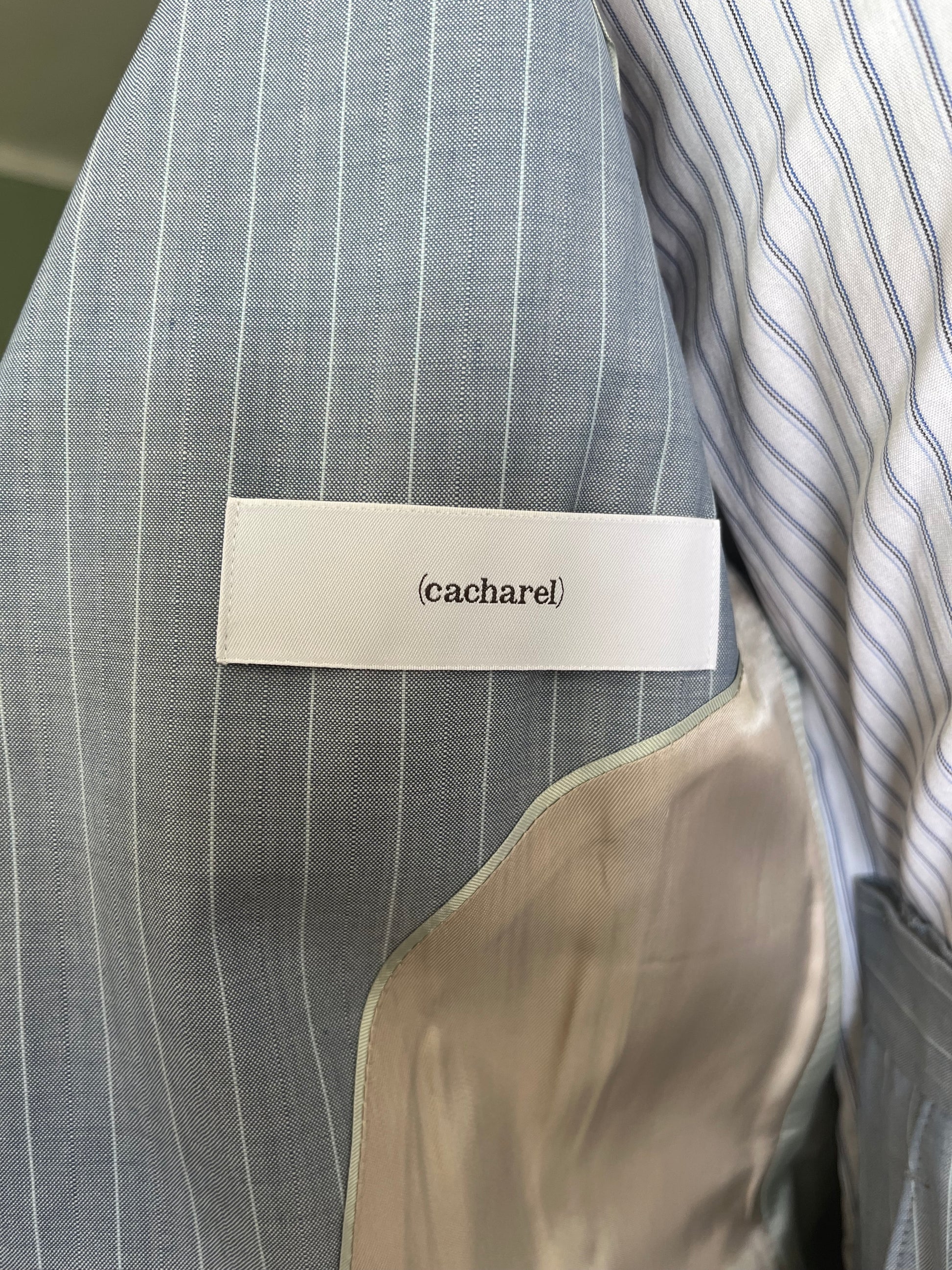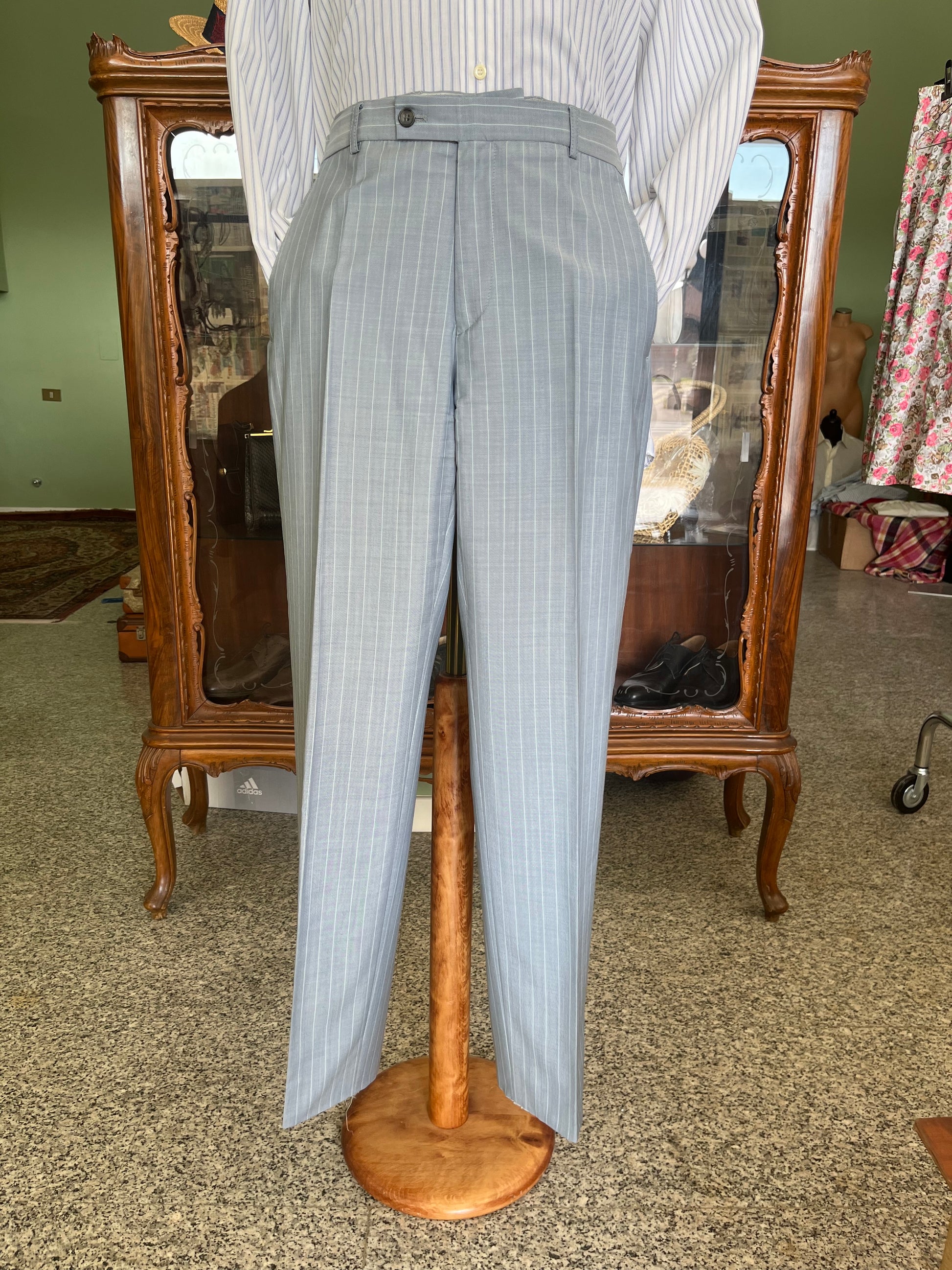 Completo Cacharel anni '90 in 100% puro fresco di lana, color carta da zucchero gessato.