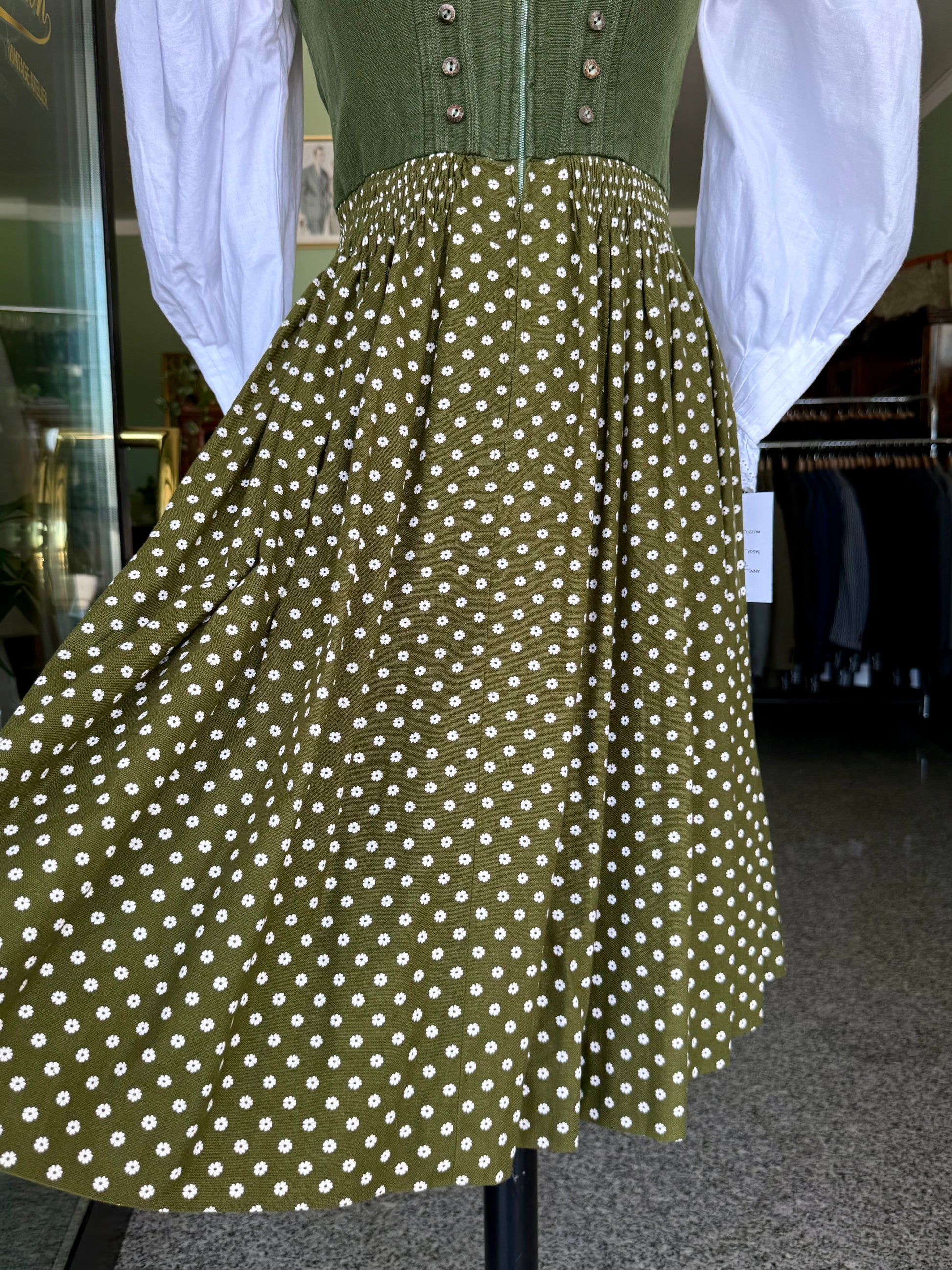 Dirndl verde con fiorellini bianchi - TG. 38